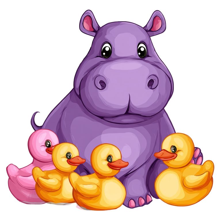 Purple Hippopotamus with Yellow and Pink Ducks Clipart The image features a purple hippopotamus … Read more