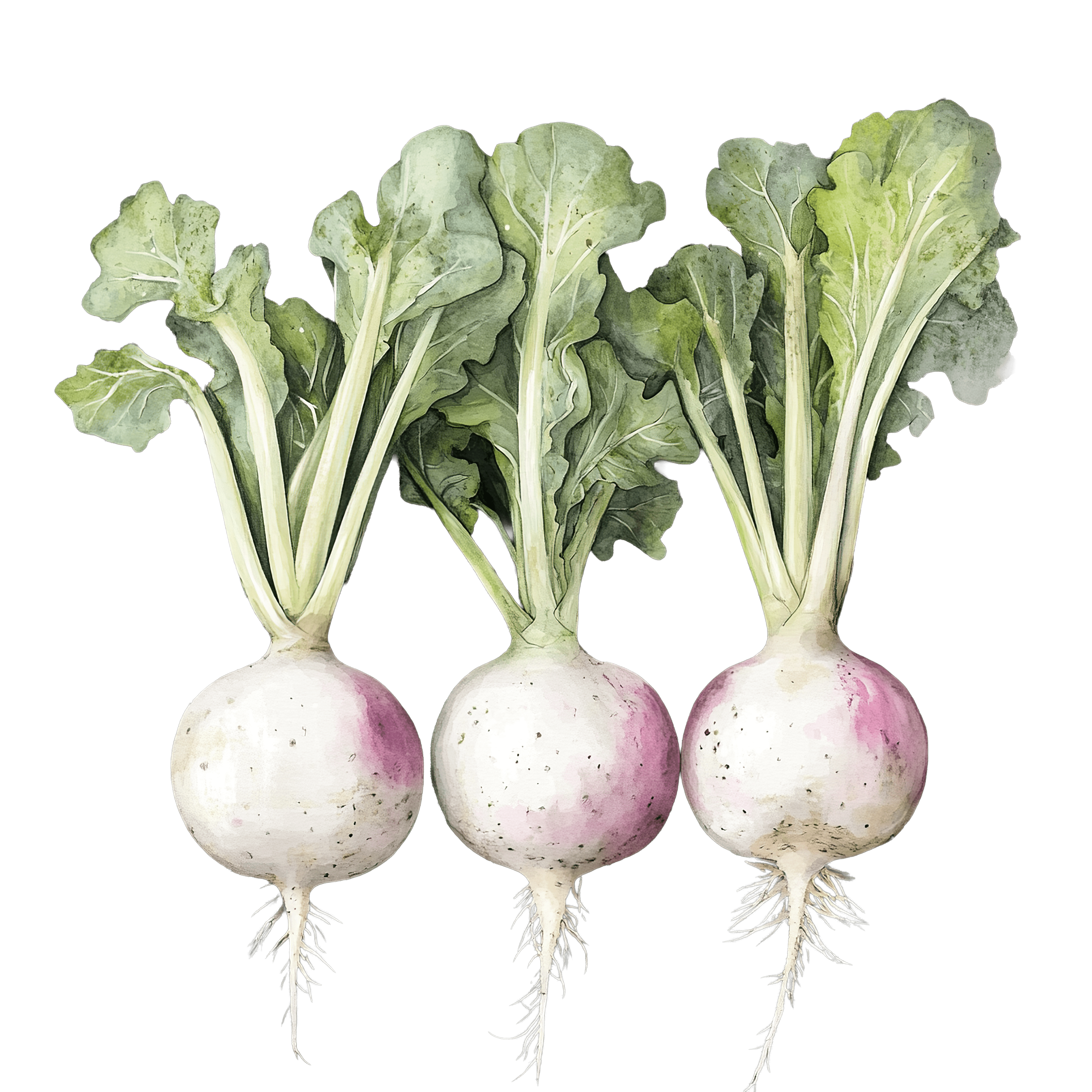 Three Fresh Turnips with Green Leaves in Watercolor Style Three turnips with leafy tops depicted in watercolor styleDownload PNG ▼Download JPG ▼Related posts:Botanical Art of Celeriac Root and LeavesWatercolor Purple Potatoes with Sliced Sections sweet food vegetable clipart vector artRefreshing Iced Coffee in a Glass with StrawPortrait of Young Girl with Poinsettias in Her HairAssorted Colorful Berries with Leaves in Detailed ClipartGreen Cartoon Monster with Big Eyes and TentaclesSanta Claus Illustration Wearing Red Suit with Snow AccentsRed Watercolor Bells with Ribbon Bow on Black BackgroundHalved Coconut with Brown Husk and White FleshMeerkat standing upright in pencil styleMulticolor Gradient Heart Shape Composed of Small Particle DotsPurple Heart with Silver Vintage Key in Watercolor Style