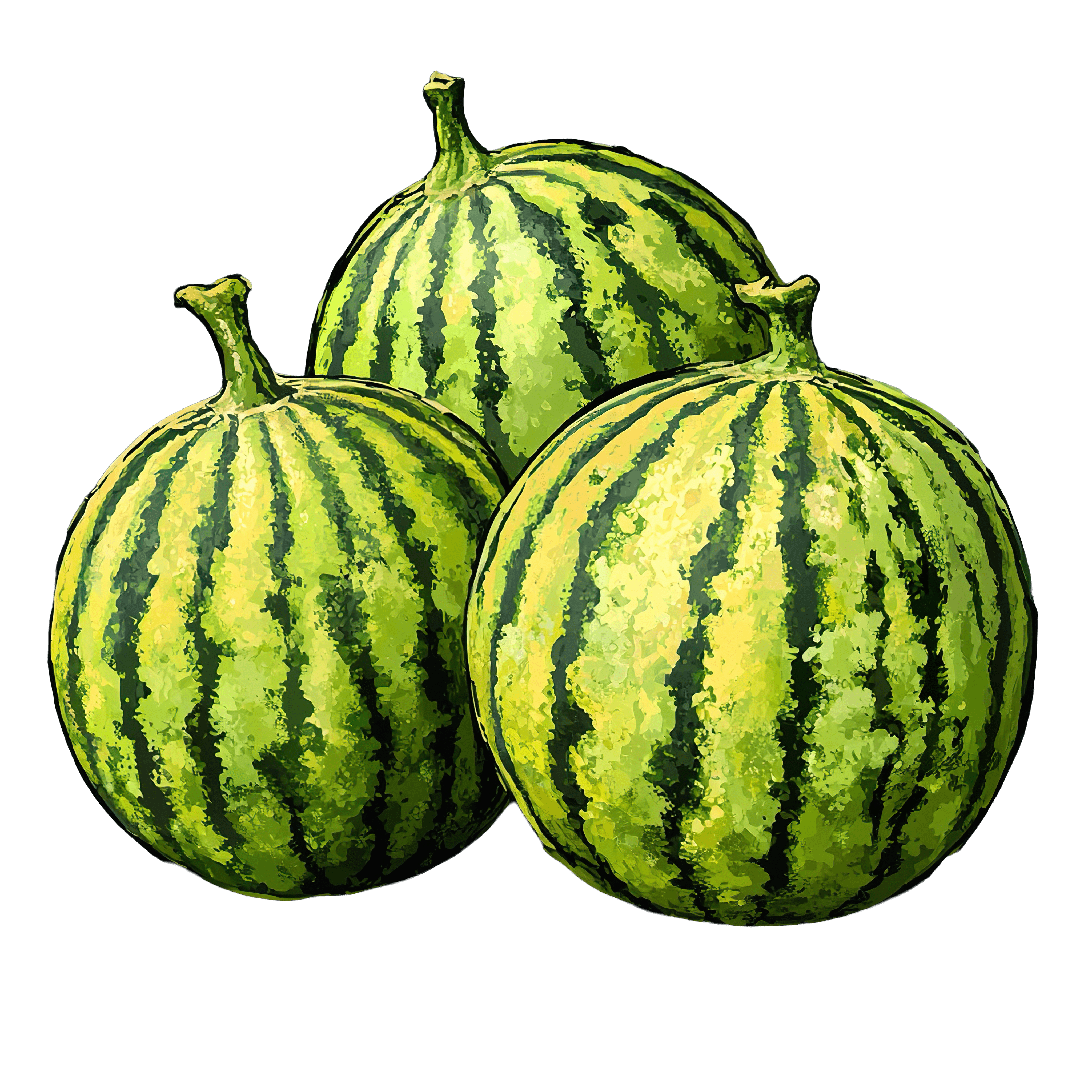 Three Green Watermelons with Striped Patterns watermelon fruit clipart vector art printable Three green watermelons with distinctive striped patternsDownload PNG ▼Download JPG ▼Related posts:Pecan Pie with Decorative Nut Topping on CrustBlue Butterfly With Detailed Wing Patterns And MarkingsPink Frosted Donut with Glossy Glaze frosting glazed food dessert pastry sweetWatercolor Orange Slices with Detailed TexturePurple Plum and Green Leaf DesignTwo Fresh Fennel Bulbs with Green Stalks and LeavesRed Christmas Ornament with White Floral Pattern and GreeneryIced Tea with Lime and Mint Garnish beverage drink refreshment cold glassSix Varied Green and Colorful Leaves on DisplayDetailed Illustration Of A Butterfly With Sparkling WingsHand-Painted Blueberries with Lush Green LeavesRefreshing Lemonade Glass with Mint and Lemon Slices