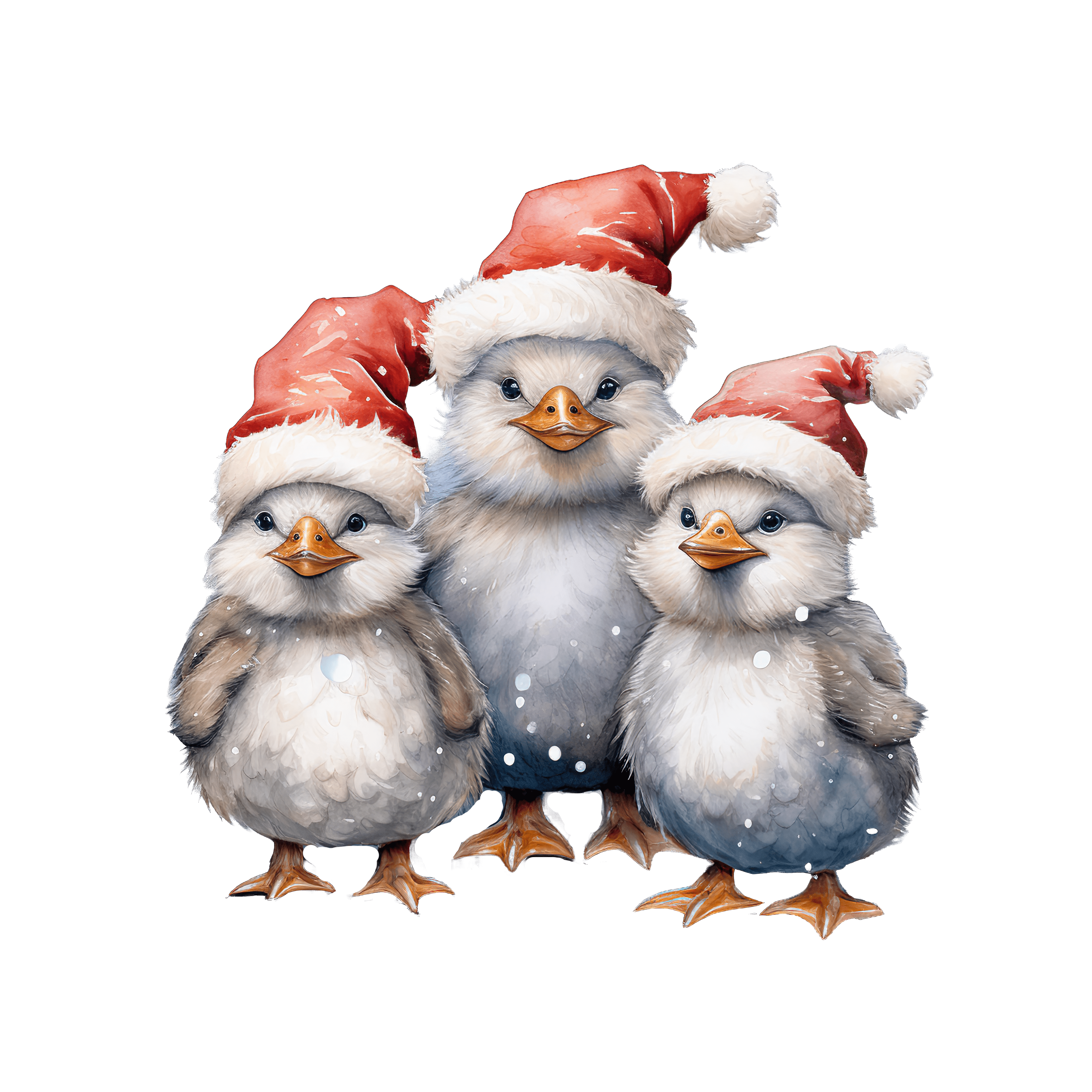 Three Penguins Wearing Santa Hats on a Black Background Three penguins wearing Santa hats stand together on a black background.Download PNG ▼Download JPG ▼Related posts:Red and White Swirled Lollipop with Spiral DesignCartoon Illustration of a Young Brown GoatGreen Grapes Bunch in Watercolor Style Clipart fruit vector art printable foodWatercolor art of Whole and Sliced Guava with LeavesStack of Colorful Books in Watercolor Style IllustrationTraditional Wooden Nutcracker Soldier Ornament in Red UniformPear Almond Tart with Glossy Finish ClipartStained Glass Heart Design with Mosaic Pattern and Warm ColorsCherry-topped cupcake with pink frosting and sprinkles cherry dessert sweet food bakeryColorful Butterflies and Flowers Clipart DesignFestive Caravan Decorated with Christmas Wreaths and Red RibbonsTwo Whole Durians with Spiky Green Shells durian fruit tropical clipart vector