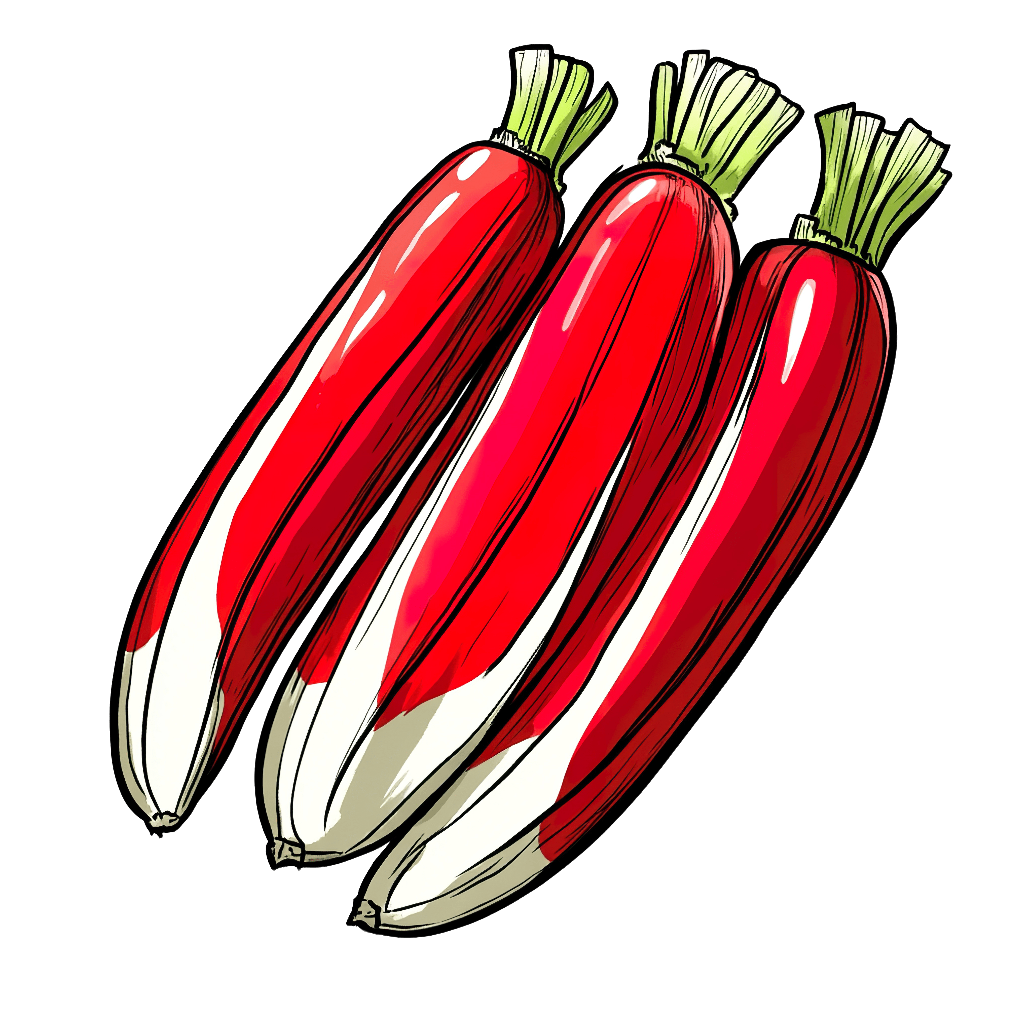 Three Red Radishes with Green Tops in Vector Art Three red radishes with green tops depicted in vector style.Download PNG ▼Download JPG ▼Related posts:Vibrant Butterfly Artwork Showcasing Intricate Wing PatternsVibrant Watercolor Citrus with Leaves and Slice ClipartVibrant Green Collard Leaf Featuring Intricate Vein PatternsBlue Cup of Coffee with Heart-Shaped Latte ArtWatercolor art of Whole and Sliced Guava with LeavesStack of Colorful Books in Watercolor Style IllustrationAnime Style Face with Crown and Surprised ExpressionBright Yellow Daffodil Illustration with Black BackgroundBlack and White Panda Clipart IllustrationPassionfruit Cheesecake Slice with Blueberries ClipartPurple Butterfly With Detailed Wings And Vibrant ColorsCreamy White Squash with Green Stem Clipart