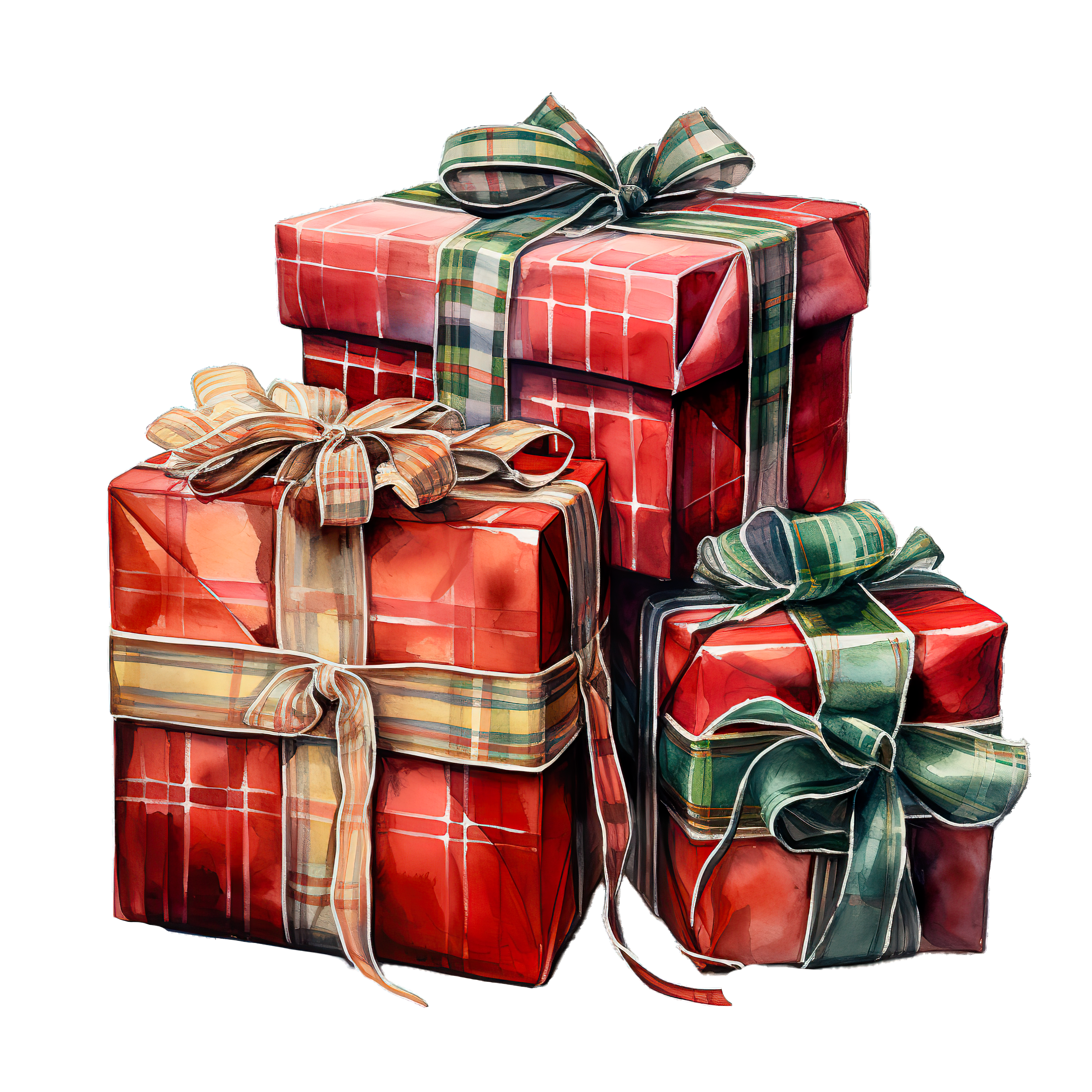 Three Stacked Red Gift Boxes with Plaid Ribbons Illustration Three red gift boxes with plaid ribbons stacked in a decorative arrangement.Download PNG ▼Download JPG ▼Related posts:Pink Sleigh Loaded with Brightly Colored Wrapped Gift BoxesIce Cream Cone with Orange Slice and Mint LeavesWatercolor Style Whole and Sliced Lemon Clipart yellow fruit vector art citrusWatercolor Raspberries and Green Leaf DesignYoung girl holding a gift wrapped with red ribbonWatercolor Slice of Carrot Cake with Cream ToppingChocolate Glazed Éclair with Cream Filling Clipart pastry dessert food vector artDetailed illustration of a pink lotus flower with layered petalsPink Trumpet Flower with Green Leaves ClipartCartoon parrot with green hat clipart vectorVibrant Green and Blue Succulent Illustration on Black BackgroundColorful Gradient Cartoon Llama Clipart