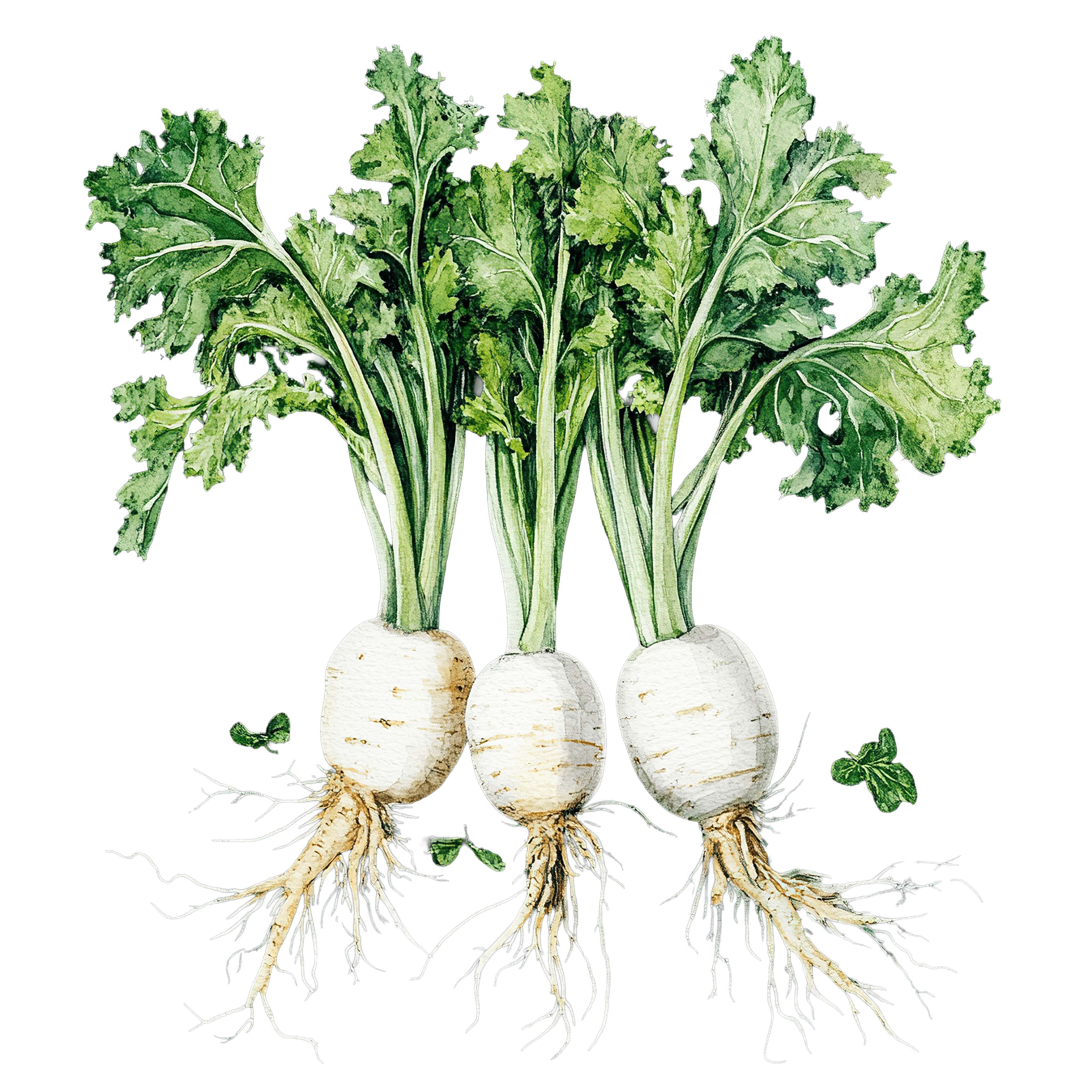 Three White Radishes with Green Leaves and Roots Three white radishes with leafy tops and detailed root systems.Download PNG ▼Download JPG ▼Related posts:Tropical Soursop Fruit on Lush Green BranchVibrant Blue And Green Butterfly With Yellow AccentsWatercolor Illustration of a White Calla Lily on Black BackgroundRed Chili Peppers with Seeds and Stems food spicy vegetable clipart vectorTwo Slices of Dried Lemon in Watercolor StyleChocolate Cake with Strawberries on a White PlateVibrant Butterfly With Orange And Pink Wings IllustrationElegant White Crocus Flowers with Green Leaves on BlackOrange Bird with Wings and Legs ClipartPink Milkshake with Cherries and Whipped Cream ToppingWatercolor Banana with Green and Yellow Hues fruit clipart vector art printableFurry otter clipart in grassy setting