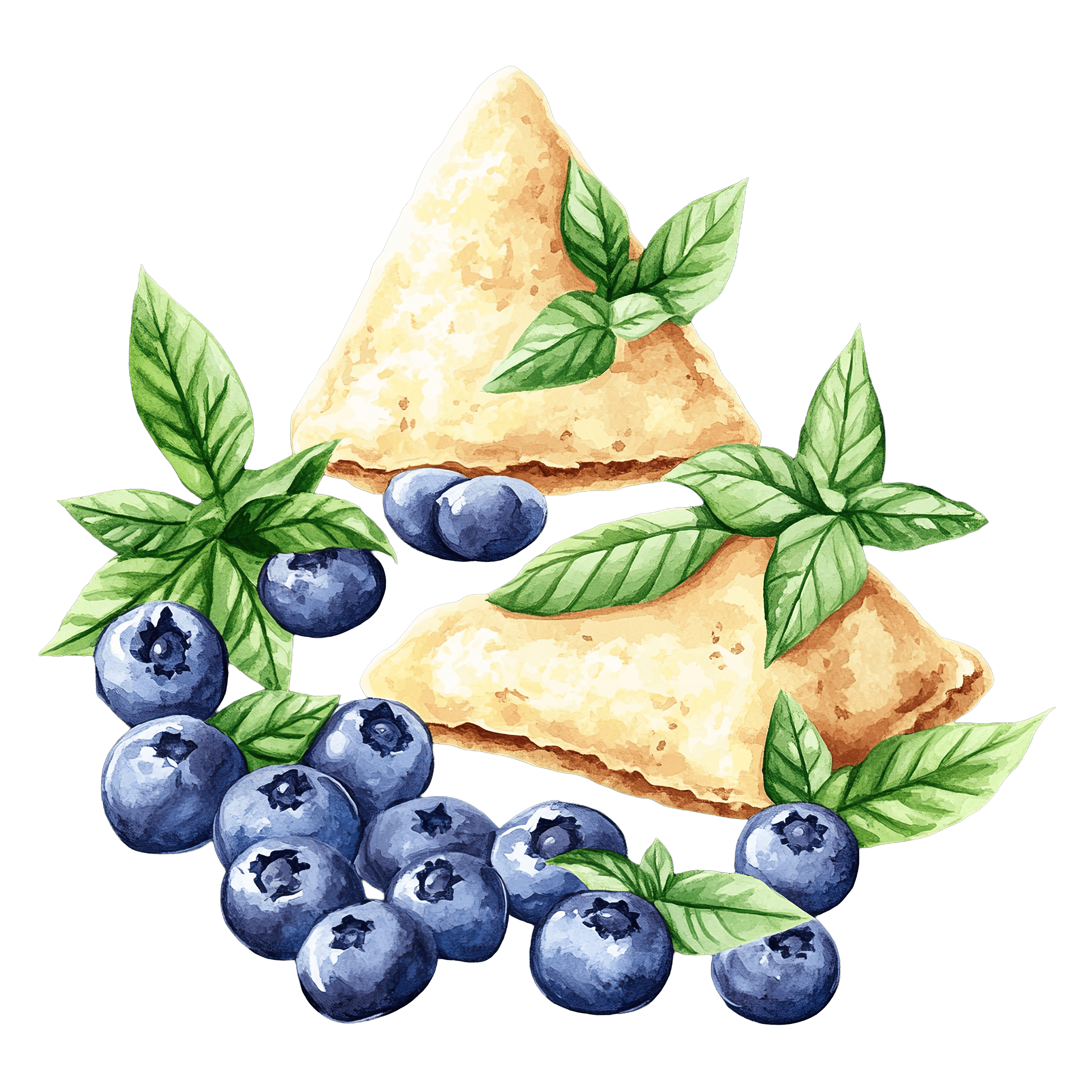 Triangular Pastries with Blueberries and Mint Leaves food dessert triangle watercolor clipart Triangular pastries paired with fresh blueberries and mint leaves.Download PNG ▼Download JPG ▼Related posts:Colorful Kayak in Detailed Illustration with Black BackgroundWatercolor Garlic Bulb with Detailed Texture and ShadowChocolate Hazelnut Tart with Rich Filling and ToppingVibrant Watercolor Glass of Fresh Orange JuiceGlass of Apple Juice with Fresh Fruits and LeavesVibrant Orange Crocus Flowers with Green Leaves IllustrationSitting raccoon with fluffy fur in vector artPurple And Pink Butterfly With Starry Wing PatternGreen Cartoon Monster with Big Eyes and TentaclesWitch Flying on Broomstick with Black Hat and DressChocolate Glazed Éclair with Cream Filling Clipart pastry dessert food vector artPink Pig Illustration with Simple Black Details