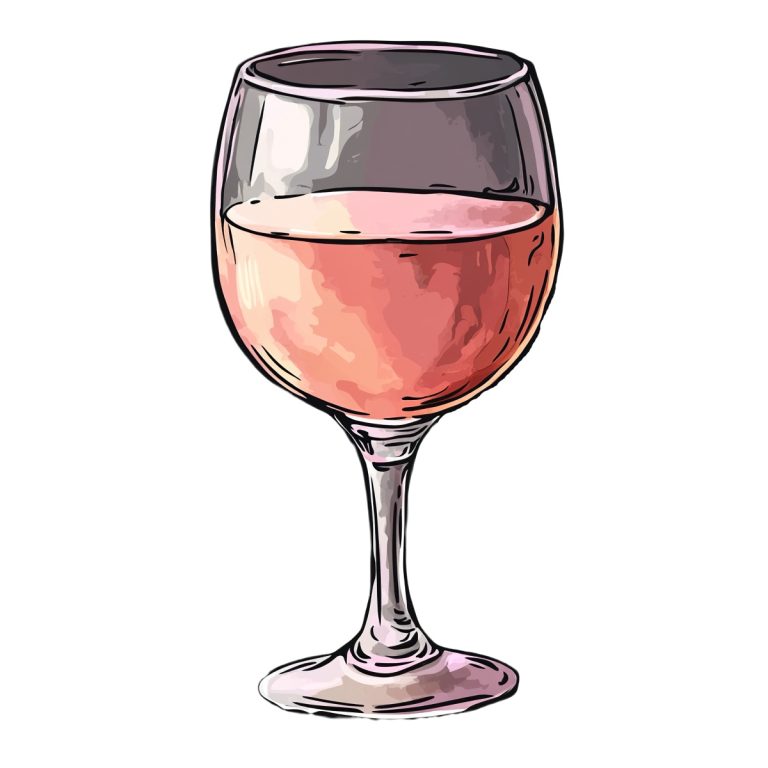 Glass Rose Wine Detailed Shading Drink Beverage Alcohol Clipart Vector