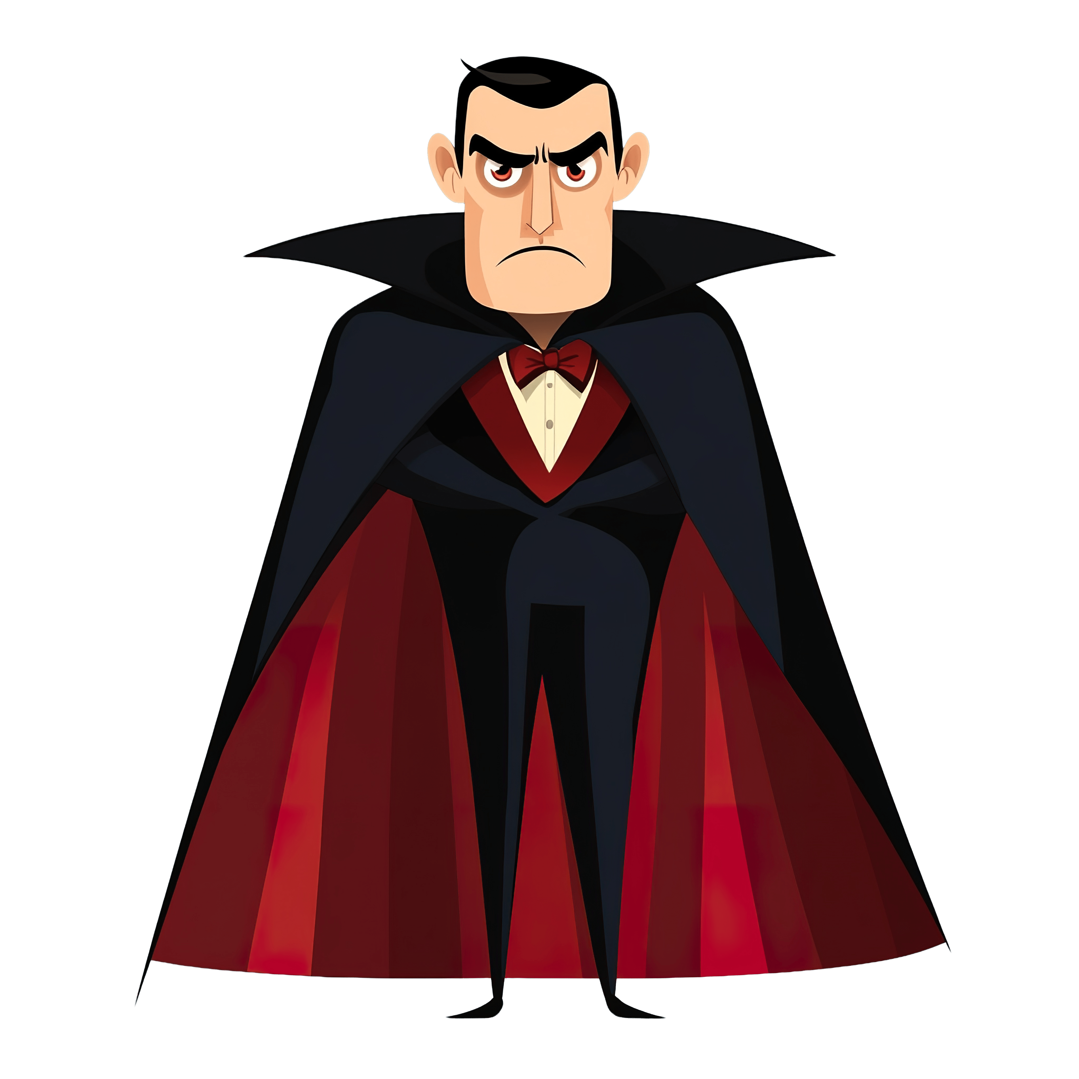 Vampire Character in Classic Black and Red Cape Vampire character wearing a black and red cape with a stern expression.Download PNG ▼Download JPG ▼Related posts:Watercolor Painting of Whole and Half FigsDetailed Watercolor Illustration of a Purple Orchid FlowerCartoon Donkey with Antlers on Black BackgroundWhole and Halved Purple Figs DisplayChocolate Cake Slices with Nut Pieces dessert food sweet brown clipart vectorArtistic Strawberry with Green Leaves Clipart in Watercolor StyleDetailed Illustration of a Magnolia Blossom on Black BackgroundChristmas Stockings with Bows and Holly on BlackHot Mulled Wine with Cinnamon Sticks and Orange SliceVintage Red Lantern with Candle and Christmas Holly DecorationsIce Skates Decorated with Holly and Berries for Festive SeasonGlass of Apple Juice with Whole and Sliced Apples