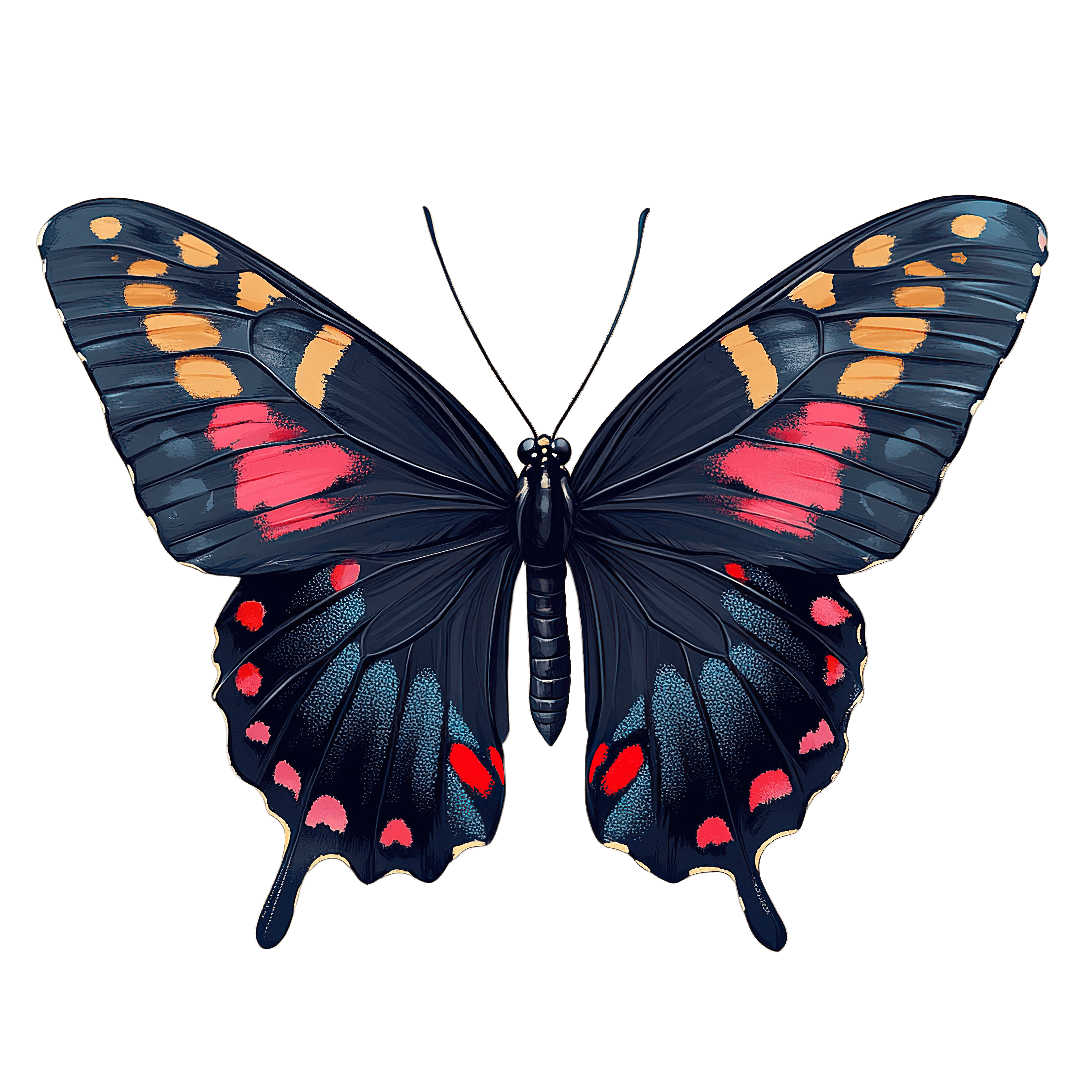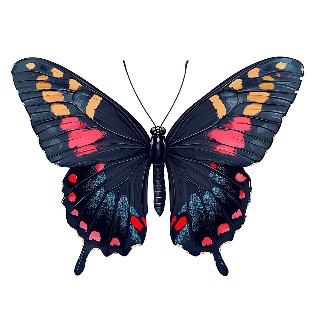 Vibrant Butterfly Art Featuring Intricate Wing Patterns And Butterfly with vibrant patterns on its wings, showcasing intricate details.Download PNG ▼Download JPG ▼Related posts:Cartoon Chef Holding Spoon in White Uniform and HatQuokka wearing Santa hat and red sweaterWoman with Festive Headscarf and Earrings in Holiday ThemeDog wearing a pumpkin hat, black and white furShimmering Golden Butterfly With Glittery WingsVibrant Blue And Yellow Butterfly With Detailed WingsChristmas Tree with Pine Cones and Wrapped Gifts UnderneathChocolate Brownie with Swirled Topping Clipart dessert food vector art sweet snackMatcha Green Tea Roll Cake Clipart with Swirl DesignIntricate Christmas Ornament with Green and Red DesignCartoon bird with Santa hat clipartPink And Purple Butterfly With Detailed Wing Patterns