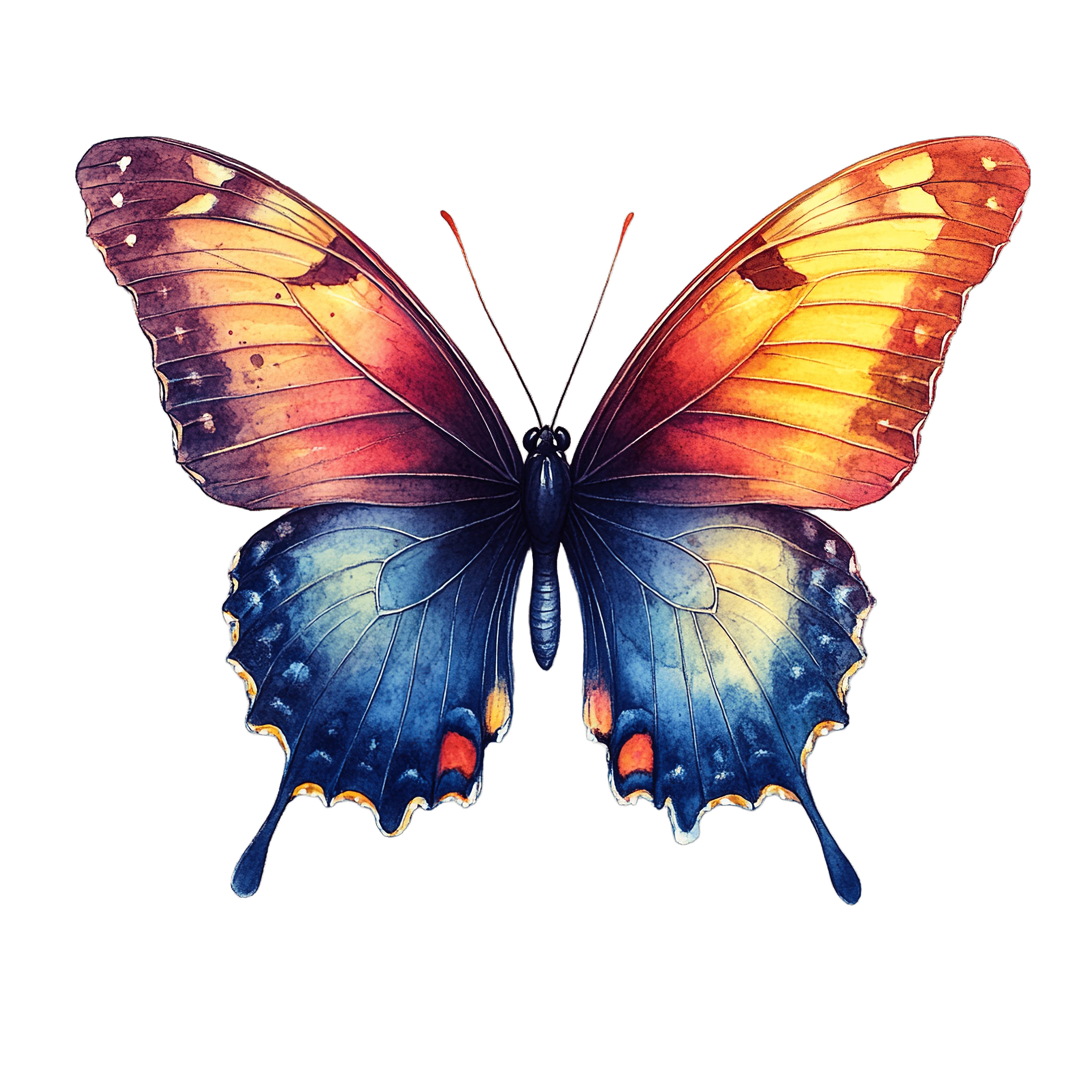 Vibrant Butterfly Showcasing Radiant Multicolored Wings Butterfly features striking orange and blue wings with detailed patterns.Download PNG ▼Download JPG ▼Related posts:Cartoon animal in orange onesieRed and Green Poinsettia with Dewdrops on Leaves IllustrationLion cub wearing a Santa hat clipartWoman in Vintage Style Outfit with Green Hat and Red FeatherChild Surrounded by Festive Poinsettia and Holly LeavesGreen Smoothie in Glass with Fresh Basil LeavesWatercolor Mango with Leaves on Branch Clipart fruit vector art printable foodDetailed Illustration Of An Orange And Black ButterflySilhouettes of Birds Flying Across an Orange Sky at SunsetBlue Seahorse Clipart with Scaled BodyWatercolor Illustration of a White Daisy Flower with Yellow CenterWatermelon Slice with Juicy Red Interior and Green Rind