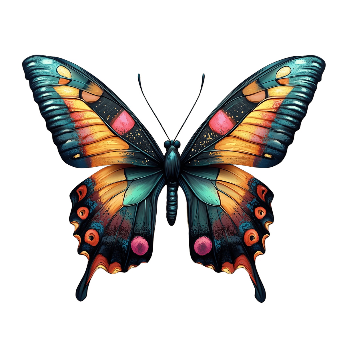 Vibrant Butterfly With Multicolored Wings In Flight Butterfly illustration featuring detailed, colorful wings against black.Download PNG ▼Download JPG ▼Related posts:Pineapple with Unique Purple and Green Leaves fruit tropical clipart vector artHeart-shaped Forest Scene with Snowy Trees and Starry SkyPortrait of a Girl with Poinsettia and Holly Wreath ArtworkColorful Gift Box With Starry Pattern and Yellow RibbonPink Azalea Flowers with Green Leaves on Black BackgroundDetailed Wing Patterns On A Striking Red AndCheesecake Slice with Chocolate and Raspberry Topping dessert food sweet clipart vectorCinnamon Roll with Purple Icing Drizzle on TopSide View of a Classic Red Convertible Vintage Car ClipartWhite Ceramic Mug Filled with Black Coffee ClipartRed and White Swirled Lollipop with Spiral DesignFresh Spinach Leaves in a Detailed Clipart Design