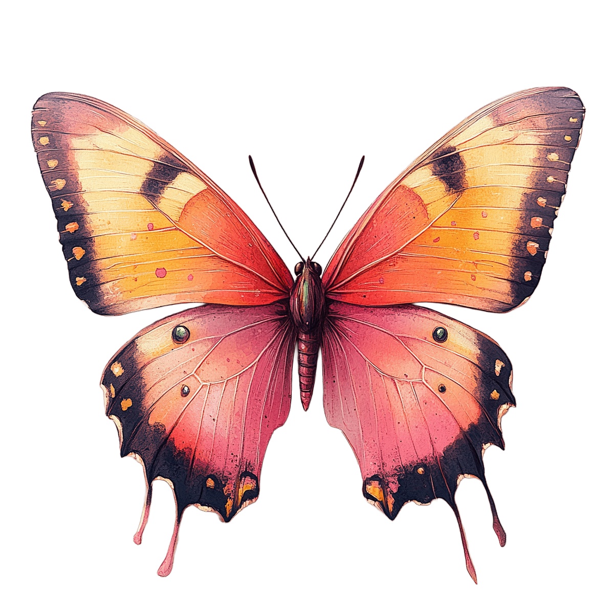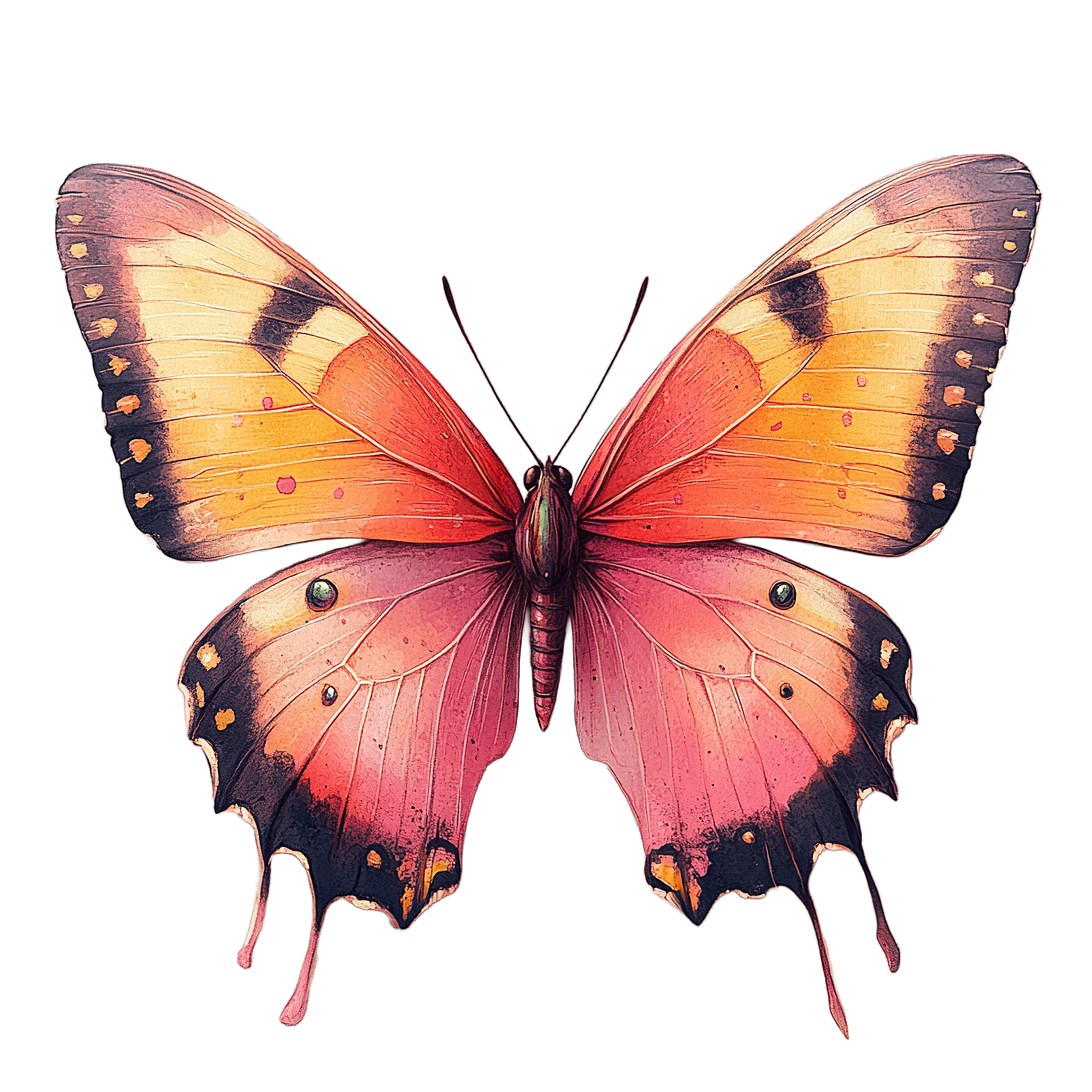 Vibrant Butterfly With Orange And Pink Wings Illustration Butterfly with detailed orange and pink wings on a black background.Download PNG ▼Download JPG ▼Related posts:Sliced Almond Biscotti with Whole AlmondsSeries of Stone Stepping Stones in a Curved FormationWatercolor Kale Bunch with Detailed Green Leaves vegetable food clipart vector artDetailed Durian Fruit with Leaves Clipart Design green vector art printable tropicalFresh Orange Fruit with StemPuppy in Red Santa Hat with Christmas OrnamentGlass of Iced Apple Tea with Fresh Mint and ApplesColorful Butterfly With Intricate Multicolored Wing Design IllustrationChocolate Layer Cake Slice with Raspberries and HazelnutsStack of Colorful Books in Watercolor Style IllustrationGreen Okra Vegetable Clipart with Detailed TextureDelicious Stack of Chocolate Brownies