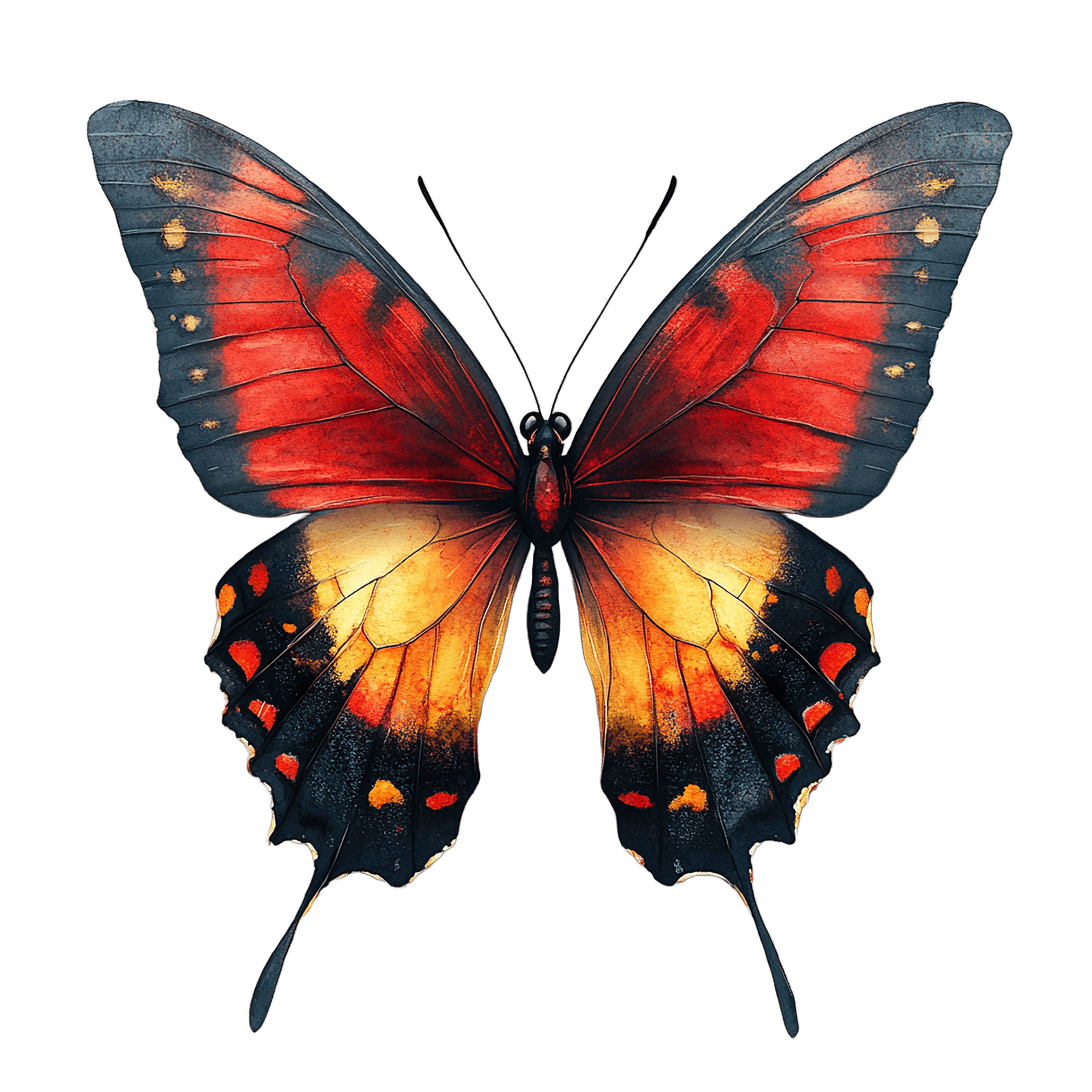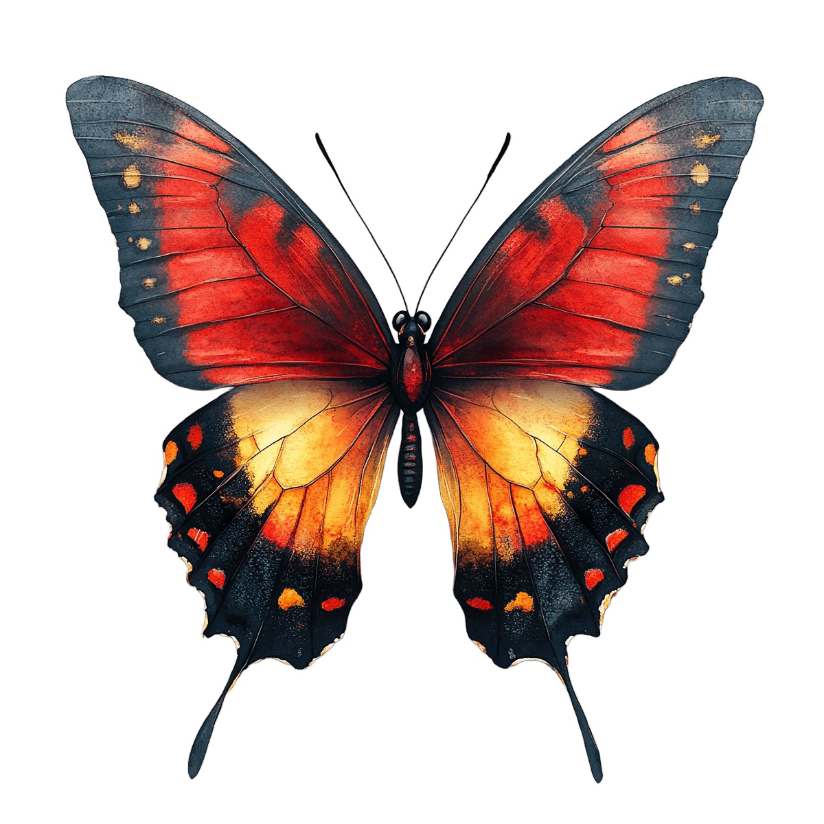 Vibrant Butterfly With Red And Orange Wings In Butterfly with striking red and orange wings displayed on black.Download PNG ▼Download JPG ▼Related posts:Watercolor Illustration of Delicate Cherry Blossom Branch on BlackVibrant Butterfly With Purple And Orange Wings OnCartoon Crab with Striped Pattern Clipart IllustrationChocolate Drip Cake with Cherries and Whipped Cream ToppingWatercolor Illustration of a White Daisy Flower with Yellow CenterFresh White Asparagus Spears in a Bunch vegetable food clipart vector artSnowman and Evergreen Trees Inside Festive Christmas Snow GlobeTwo White and Yellow Daffodil Flowers on Black BackgroundCupcake with Cream Frosting and Cherry on TopWatercolor Lemon Slice with Detailed Texture yellow fruit clipart vector art printableShiny Red Christmas Ornament with Gold Decorative PatternsCherry-topped cupcake with pink frosting and sprinkles cherry dessert sweet food bakery