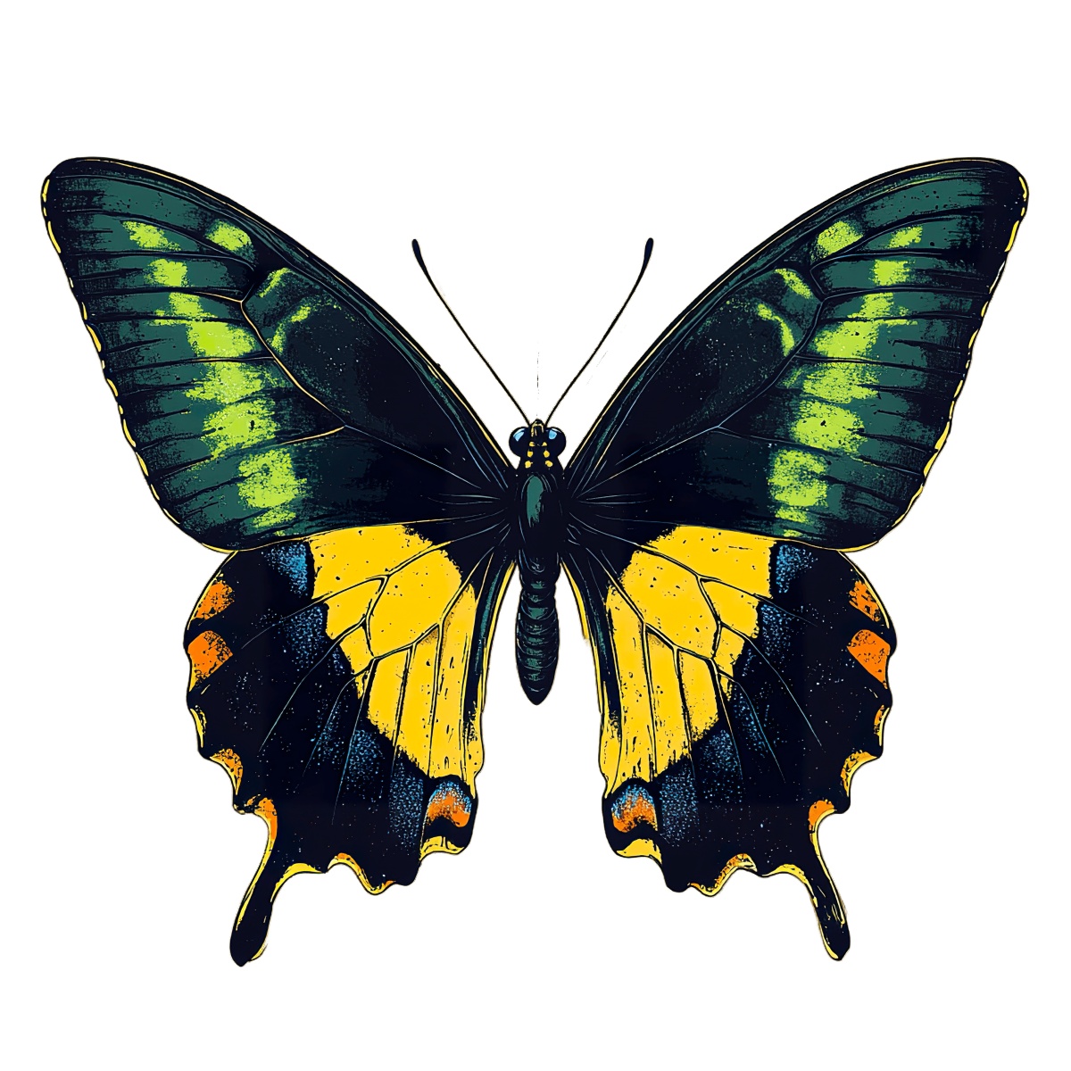 Vibrant Butterfly With Yellow And Green Wings Illustration Butterfly with detailed yellow and green wings on a black background.Download PNG ▼Download JPG ▼Related posts:Holly Branch with Red Berries and Green Leaves IllustrationGreen Bubble Tea with Black Tapioca Pearls and StrawRed Robot with Heart Design on Chest holiday clipart vector art iconWatercolor Peach with Leaf and Slice Detail fruit clipart vector art printableToucan on a Wooden Swing ClipartCinnamon Roll Clipart with Swirled Pastry Design golden-brown food dessert bakery vectorCute Cartoon Otter with Santa Hat Clipart IllustrationRealistic turmeric root art with detailed texture spice yellow food drink clipartRed-haired woman with tied scarf and vintage plaid blouseRaspberry Meringue Dessert with Whipped Cream Topping sweet food clipart vector artWatercolor Pears and Leaves with Sliced ViewPassionfruit Drink with Ice and Fresh Mint Leaves