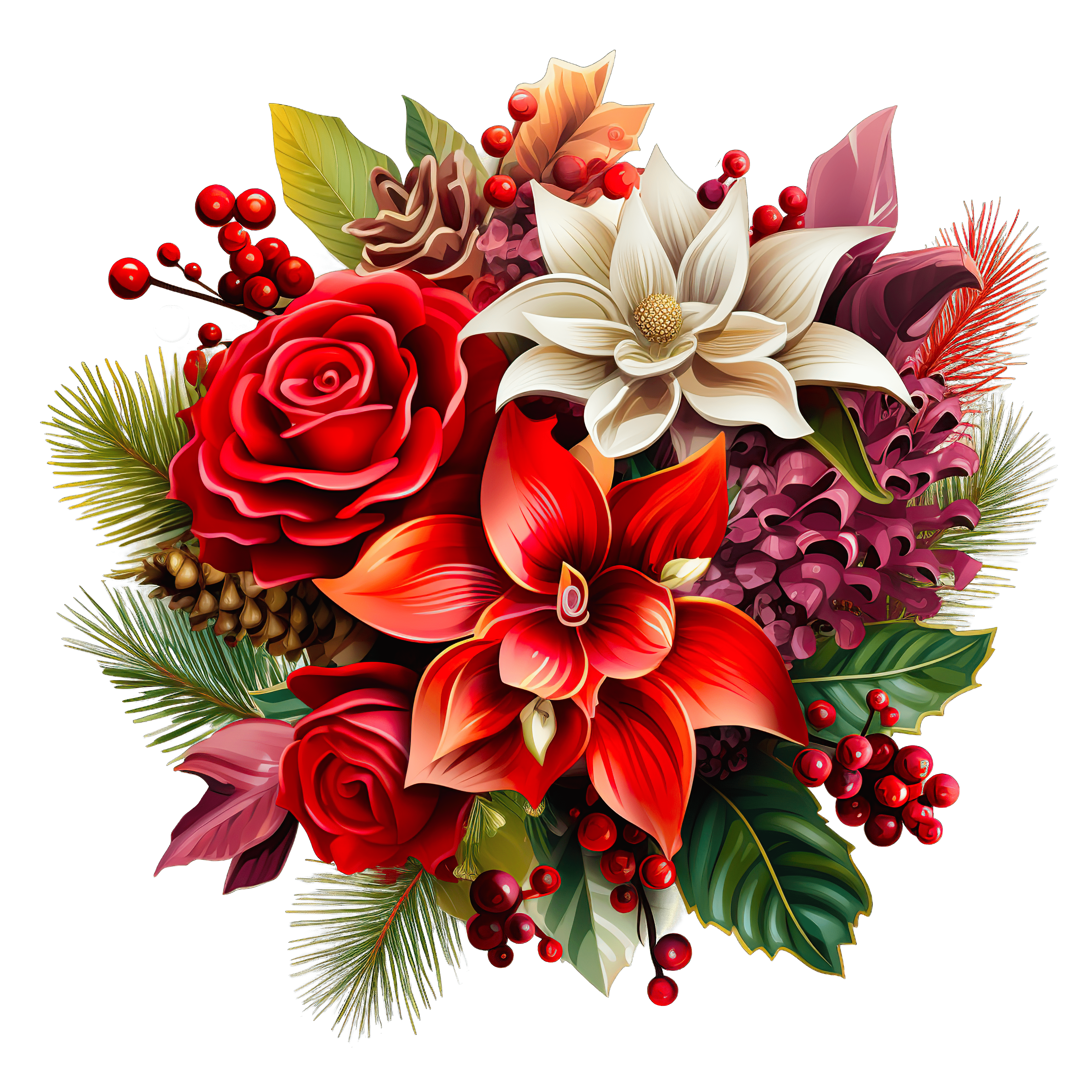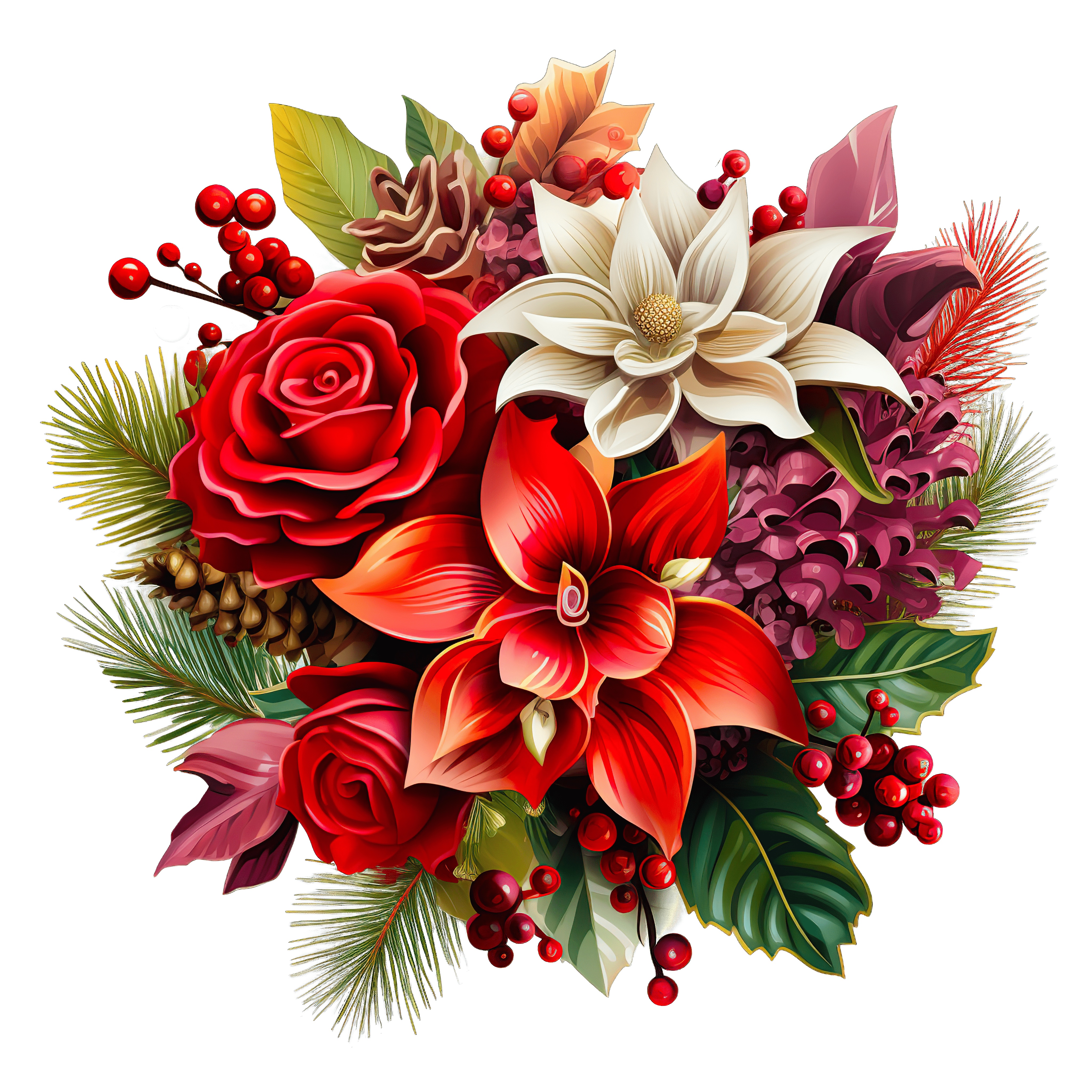 Vibrant Floral Arrangement with Pinecones and Red Berries Illustration Vibrant floral arrangement featuring roses, lilies, pinecones, and red berries.Download PNG ▼Download JPG ▼Related posts:Intricate Red and Blue Mandala with Floral PatternsMatcha Swiss Roll Cake with Green Exterior and FillingStriped tiger cub clipart with distinct blue eyesWatercolor Christmas Tree with Wrapped Gifts BelowWatercolor Cocoa Pods with Green Leaves vibrant clipart vector art printable foodRed Velvet Cupcake with Swirled Frosting Design dessert baked good sweet treatShimmering Blue Butterfly With Radiant Wings DisplaySlice of Key Lime Pie with Lime GarnishThree Clusters of White Currants with Green LeavesWatercolor Cupcake with Swirled Orange Frosting dessert sweet treat baked good clipartThree watercolor bell peppers in yellow, red, and greenPair of Red Cherries with Green Leaves