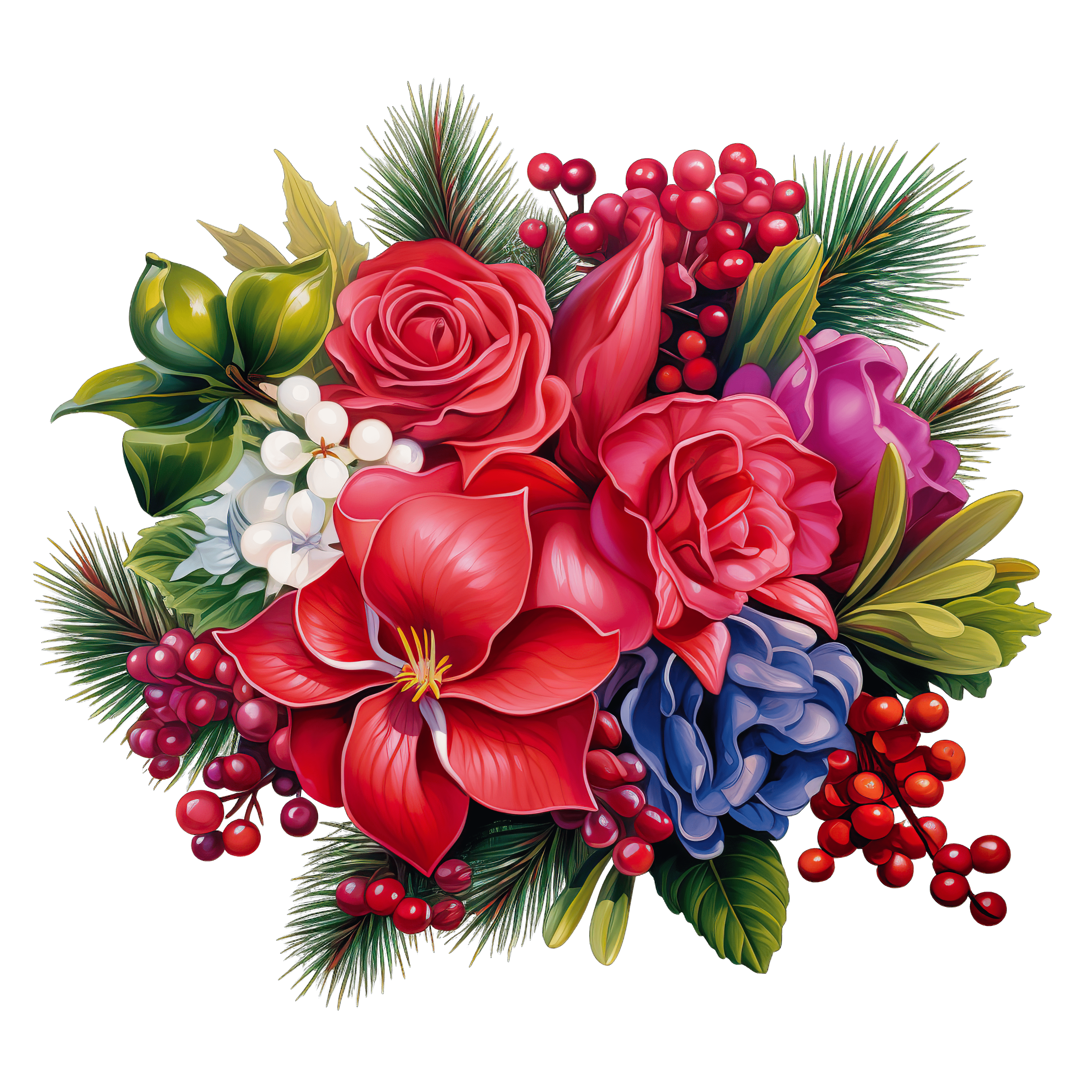 Vibrant Floral Arrangement with Red Roses and Seasonal Greenery Vibrant bouquet of red roses, amaryllis, berries, and evergreen foliage.Download PNG ▼Download JPG ▼Related posts:Sloth on a Slide ClipartChocolate Cake Slice with Cherries and Chocolate DrizzleChristmas Tree and Presents Inside a Decorative Snow GlobeColorful Christmas Stockings with Ribbons and Greenery DecorationsGecko wearing Santa Claus hat and outfitVibrant Red And Orange Butterfly With Detailed WingsWatercolor oranges with leaves and a sliced sectionChocolate Drip Cake with Cherries on Top dessert food clipart vector artWatercolor Lychee Fruits with Green Leaves fruit clipart vector art printable tropicalWatercolor Yellow Pear Clipart with Realistic DetailsGreen Bok Choy Leaves with Detailed Veins vegetable plant realistic clipart vectorSnowman and Evergreen Trees Inside Festive Christmas Snow Globe