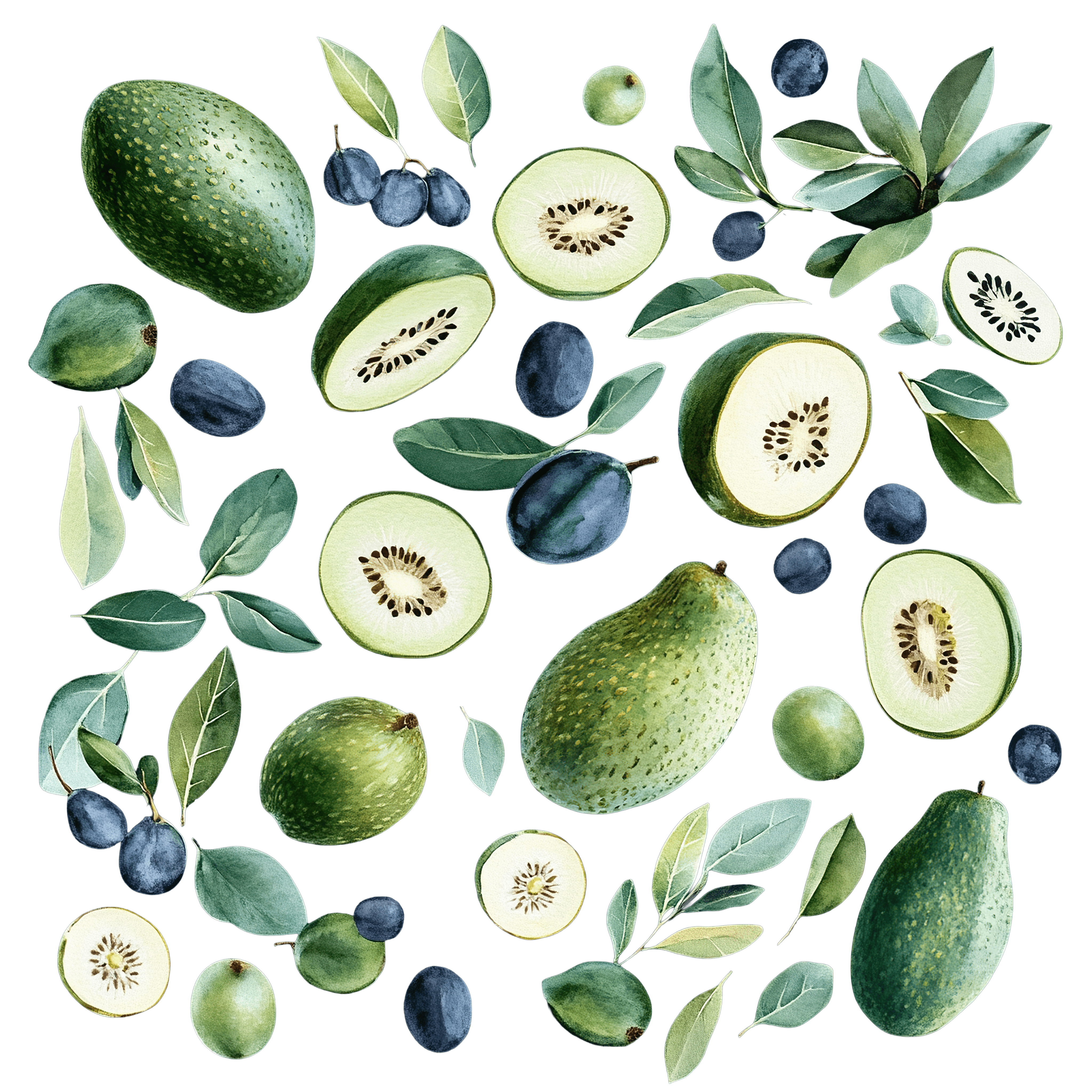 Vibrant Green and Blue Fruits with Leaves Various green and blue fruits with leaves arranged.Download PNG ▼Download JPG ▼Related posts:Glass of Apple Juice with Whole and Sliced ApplesPeanut Butter Cookie with Whole Peanuts ClipartGolden Brown Croissant with Powdered Sugar Topping pastry food breakfast baked clipartDetailed Butterfly Illustration With Blue And Purple WingsHighland Cow Wearing Red Striped Santa Hat IllustrationGreen Chayote Squash with Leaves in Watercolor StylePink Flamingo Standing on One Leg ClipartPassion Fruit Whole and Halved with Detailed TextureVivid Watercolor Half Fig with Intricate SeedsOrange Monkey Clipart with Fluffy FurOkra Plant with Bud and Green Leaves ClipartStack of Gift-Wrapped Books with Holiday Decorations