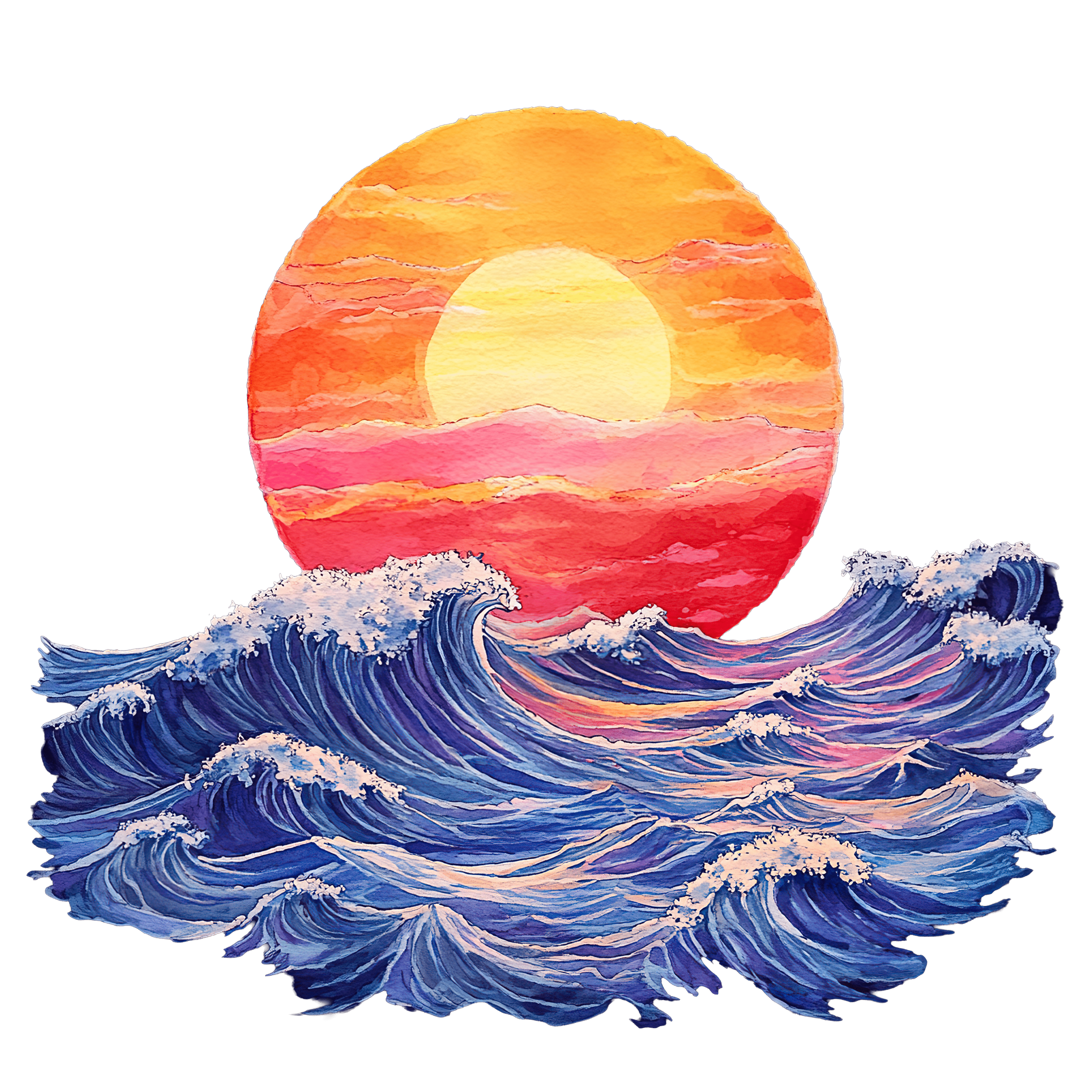 Vibrant Ocean Waves with Sunset and Bright Sun Illustration Ocean waves with vibrant sunset and bright sun in colorful illustration.Download PNG ▼Download JPG ▼Related posts:Ornate Butterfly With Blue And Gold Gemstone AccentsPink Butterfly With Black Spots And Detailed WingsVibrant Watercolor Eggplants with Green StemsColorful Blue And Orange Butterfly With Intricate WingWatercolor Orange Slice with Green Leaf Detail citrus fruit food drink clipartFresh Green Kohlrabi with Leaves in Vector ArtBlackberry Cheesecake Slice with Berry ToppingTwo Ripe Peaches with Soft Gradient ColorsWhite ceramic mug filled with freshly brewed black coffeeBlue Butterfly Illustration With Detailed Wing Patterns InsectRed Hawthorn Berries with Green Leaves on BranchGreen Holly Branch with Red Berries Clipart Illustration