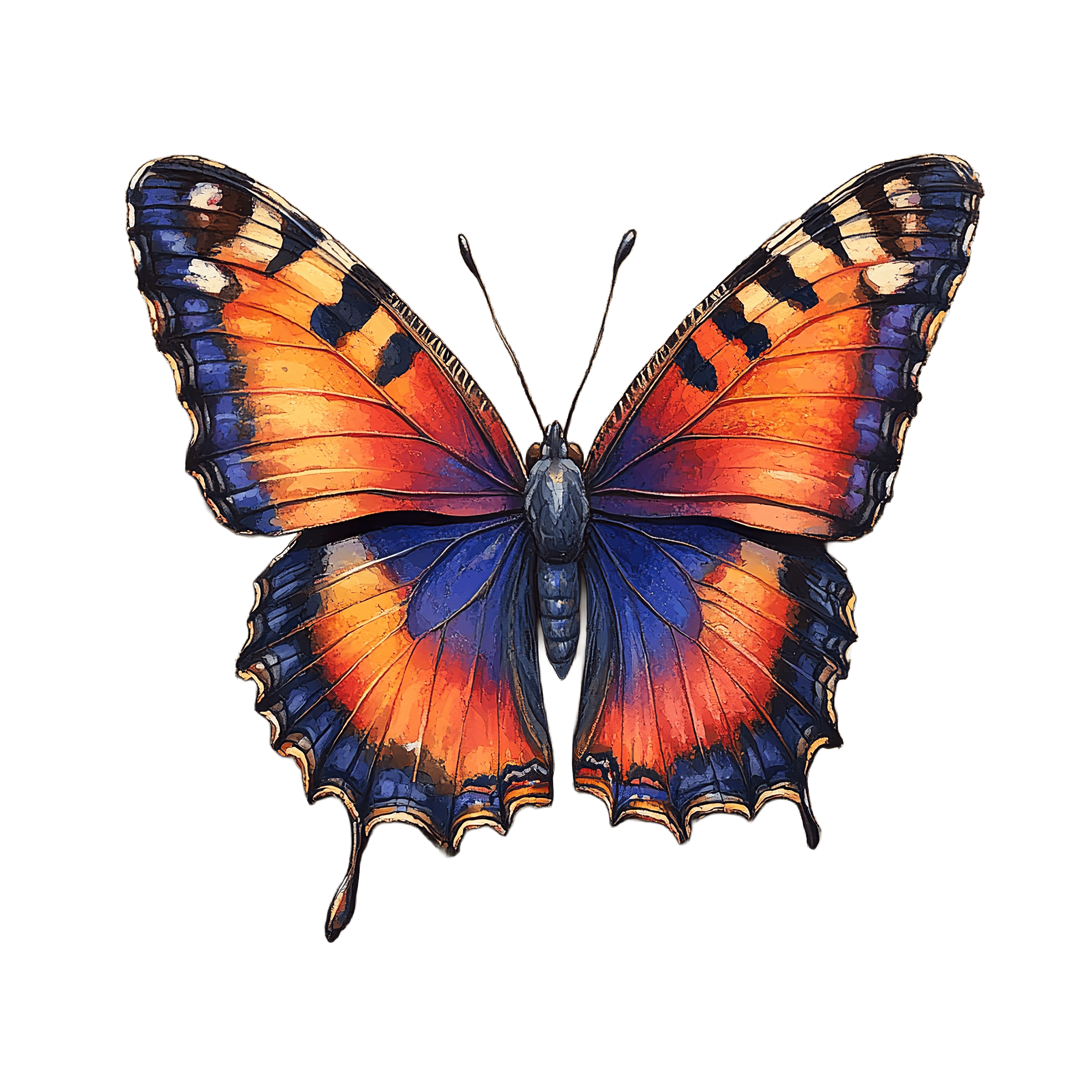 Vibrant Orange And Blue Butterfly With Detailed Wing Butterfly features striking orange and blue colors with intricate patterns.Download PNG ▼Download JPG ▼Related posts:Detailed Kale Leaf with Curly Edges in GreenCartoon owl wearing blue winter hat and scarf in the snowLychee Fruit Branch with Leaves in Detailed ClipartDelicate Pink Cherry Blossoms on a Branch IllustrationOrange Clownfish White Stripes Dark Fins ClipartWatercolor Christmas Snowflake with Green and Red LeavesGlass of Iced Chai with Star Anise and Cinnamon SticksOrange cartoon squirrel wearing a cute hoodieBlue-green succulent plant with rosette shape and pointed leavesGingerbread House Decorated with Candy and Snow for ChristmasBunch of Fresh Green Onions with Roots scallions vegetables tied clipart vectorClear Glass Mug Filled with Hot Chocolate and Marshmallows