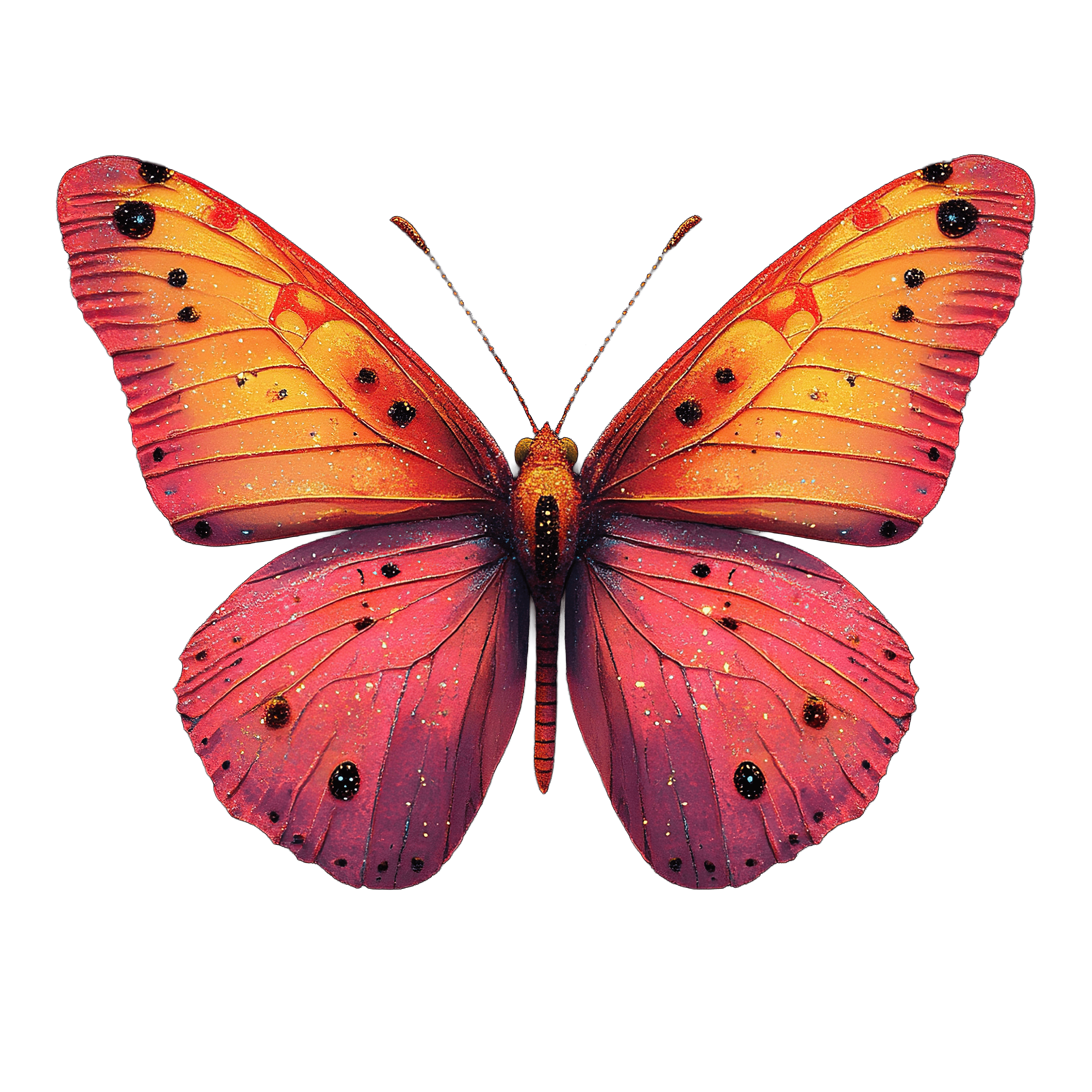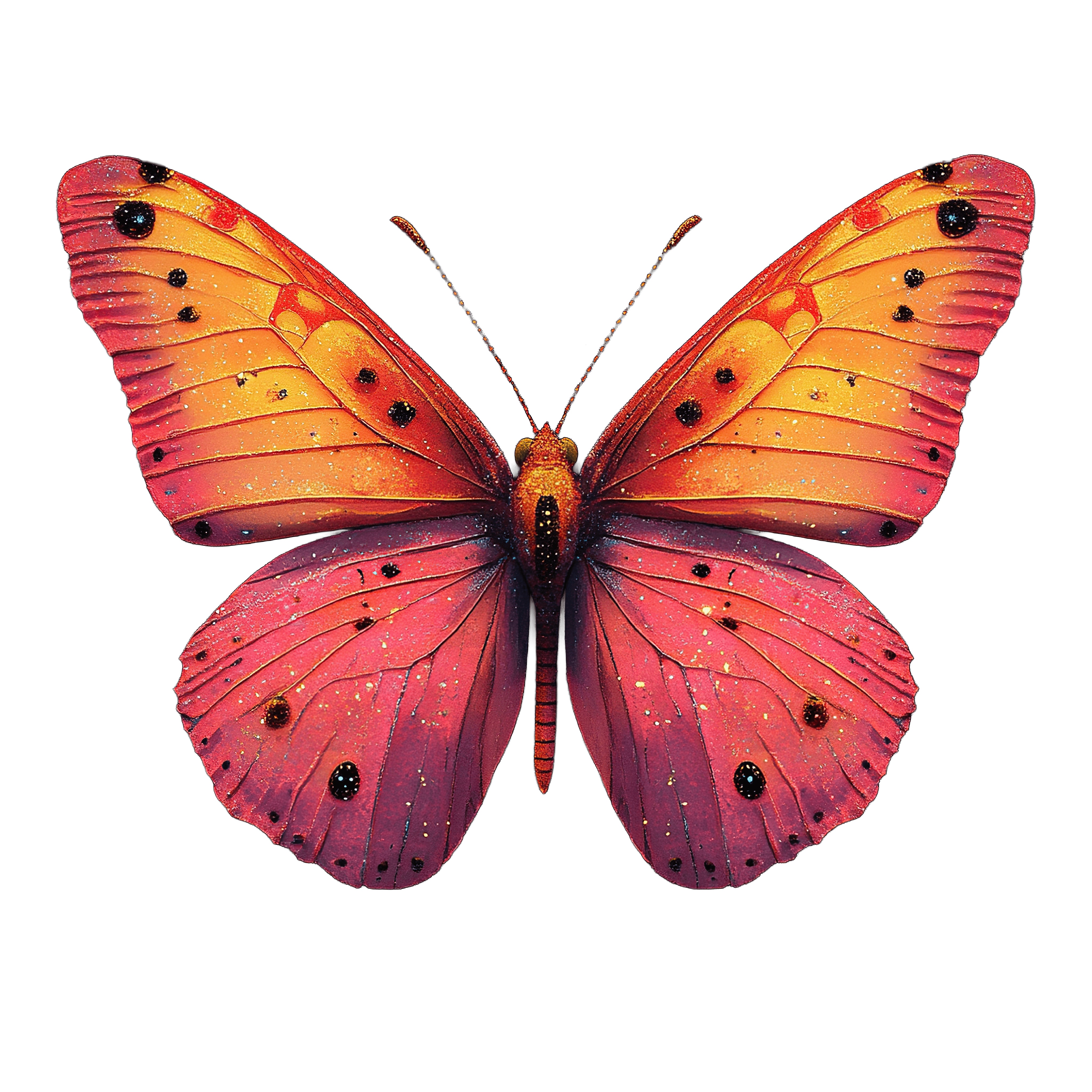Vibrant Orange And Pink Butterfly With Glittering Details Butterfly with orange and pink wings adorned with glittering spots.Download PNG ▼Download JPG ▼Related posts:Pink and White Peony Flowers with Green Leaves on BlackMint Tea in Glass Cup with Fresh LeavesRed and White Swirled Lollipop with Spiral DesignOtter Juggling Colorful Balls ClipartWoman in Red Dress Holding a Festive Gift BoxWatercolor Collard Greens with Detailed Leaf Texture leaves green vegetable plant clipartTextured Orange Fruit Design on Solid SurfaceKoala holding an orange leaf in clipart styleBlackberry Cheesecake Slice with Berry ToppingDecorative Christmas Ornaments with Elegant Gold and Red DesignsSnowman and Evergreen Trees Inside Festive Christmas Snow GlobeWoman in Red Victorian Outfit with Holiday Hat
