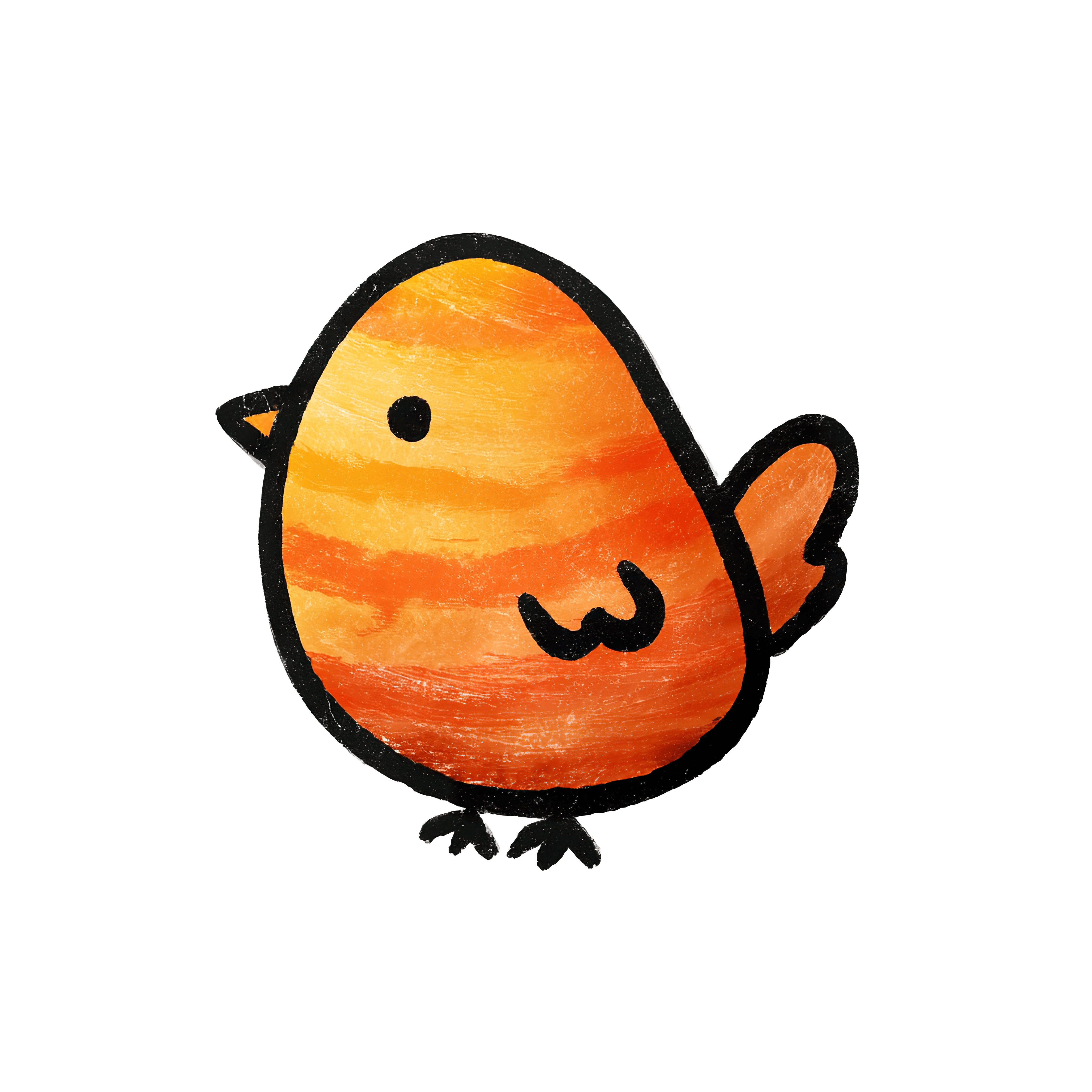 This illustration features a bird depicted in vibrant orange hues. The bird has a simple, rounded shape, outlined in black with visible wing and feet details. Its minimalistic style makes it suitable for various design projects. The use of bright colors and a black outline gives it a handcrafted look. Perfect for adding a touch of nature-themed visuals to your creative work.