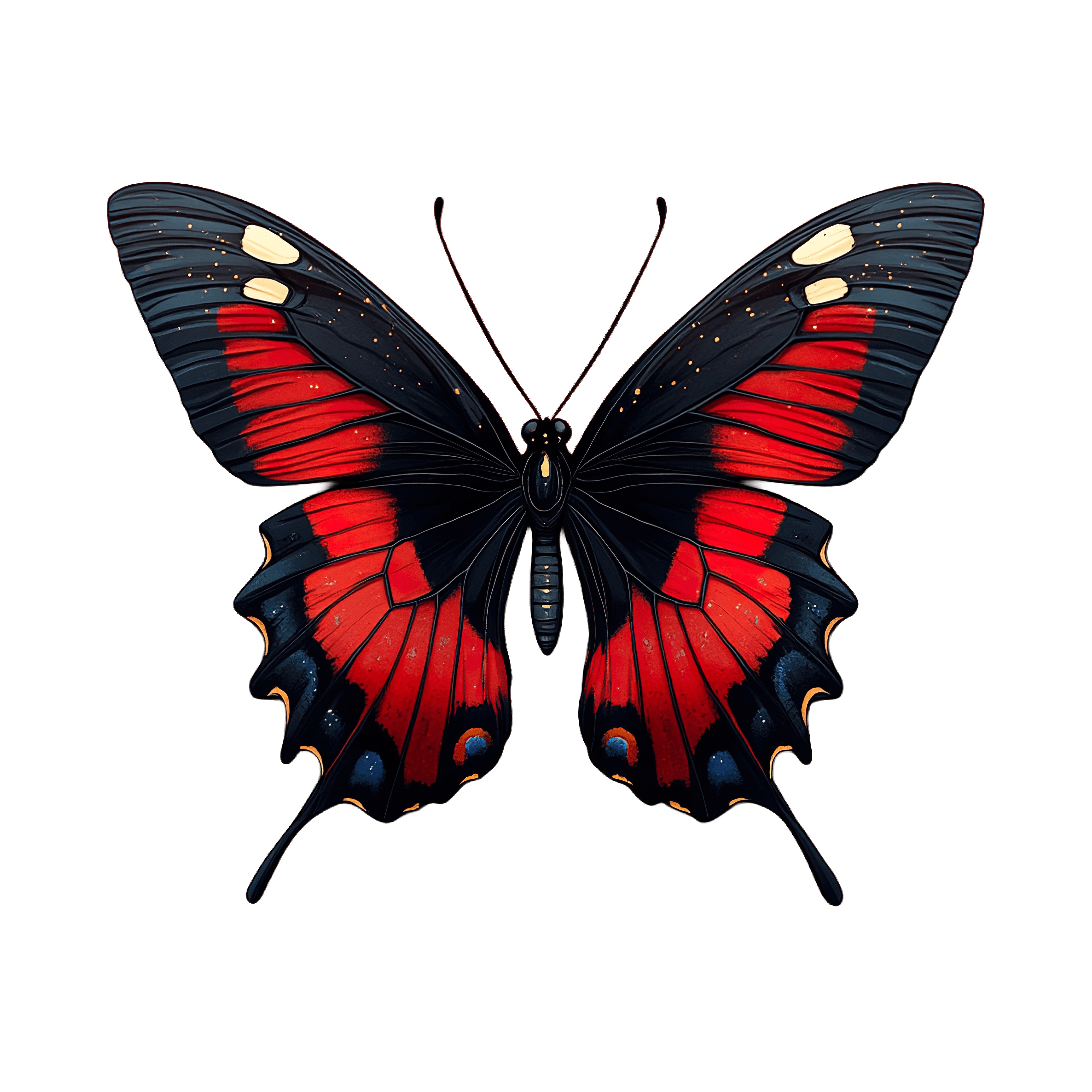 Vibrant Red And Black Butterfly Showcasing Intricate Wing Butterfly features striking red and black wings with intricate patterns.Download PNG ▼Download JPG ▼Related posts:Golden Brown Coconut Macaroons Dessert Sweet Baked Food ClipartTwo Purple Cherries Hanging from a Branch with LeavesPink Bubble Tea with Straw in Plastic CupPurple Mangosteen Fruits with Green Leaves in Vector ArtDetailed Illustration Of A Yellow And Clipart PngWatercolor Passion Fruit with Green Leaves clipart tropical vector art printable foodDetailed Kale Leaf with Curly Edges in Green TonesWatercolor Garlic Bulb with Green Stems clipart vegetable food spice herb vectorSanta Claus Holding Red Gift Boxes in Festive Attire IllustrationRed Cartoon Dragon with Orange Wings and HornsMonkey Climbing Rope in Vector ClipartBranch of Red Berries and Green Leaves