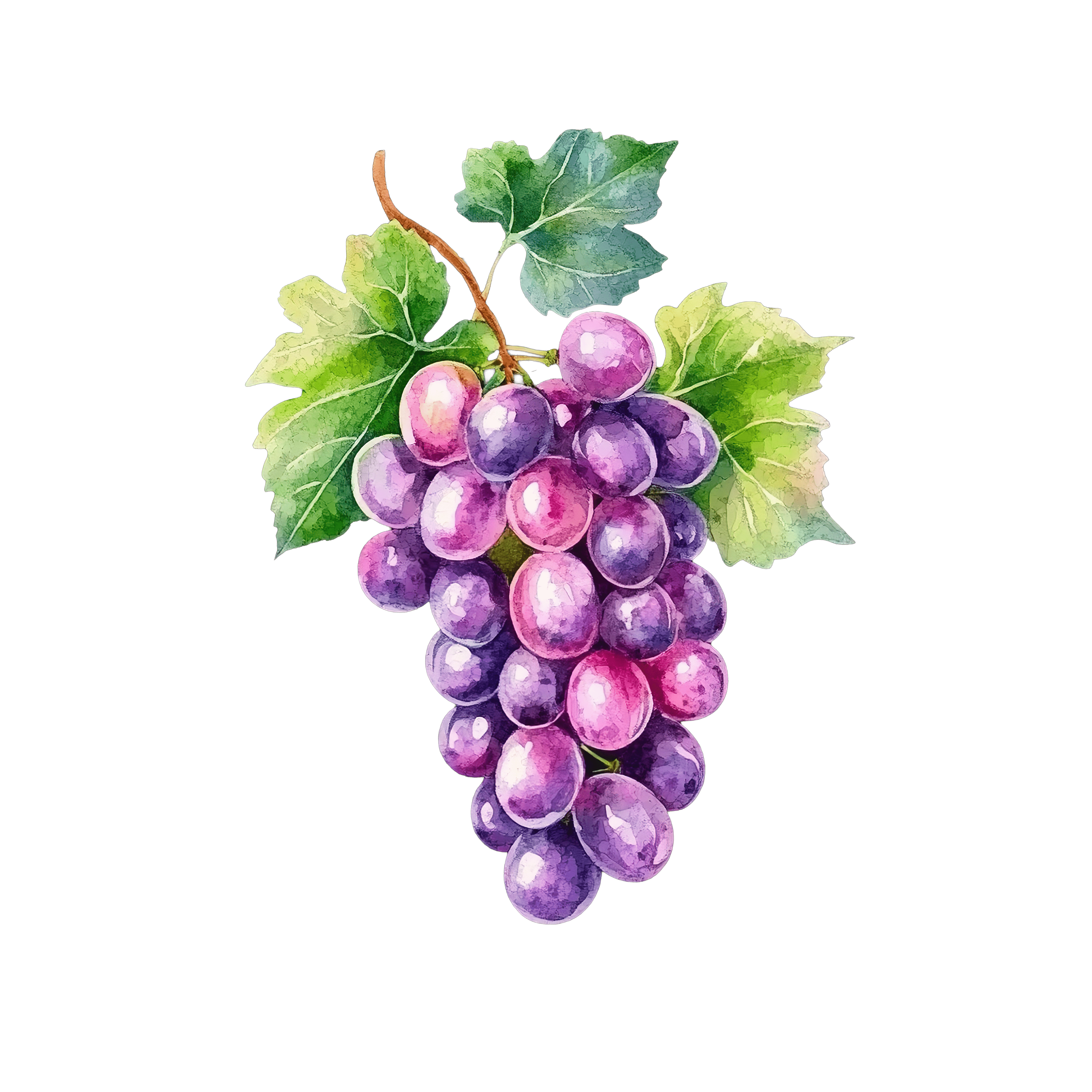 Vibrant Watercolor Grapes and Green Leaves Design Bunch of purple grapes with green leaves in watercolor style.Download PNG ▼Download JPG ▼Related posts:Fresh Fennel Bulb with Vibrant Green StalksWoman in Red Dress and Hat with Festive DecorationsHalved Papayas with Seeds on Dark SurfaceRainbow Heart Watercolor Illustration with Vivid ColorsFestive Owl with Pine and Berry Wreath IllustrationBlue Butterfly Illustration With Detailed Wing Patterns InsectVibrant Seahorse Clipart with Gradient ColorsSanta Claus Holding Wrapped Gifts in Holiday TraditionOrange Lily Flower with Green Leaves on Black BackgroundRed Poinsettia Flower with Green Leaves on Black BackgroundRed and White Christmas Ornament with Striped Design and RibbonWatercolor Brussels Sprouts Trio Green Vegetables Clipart Vector