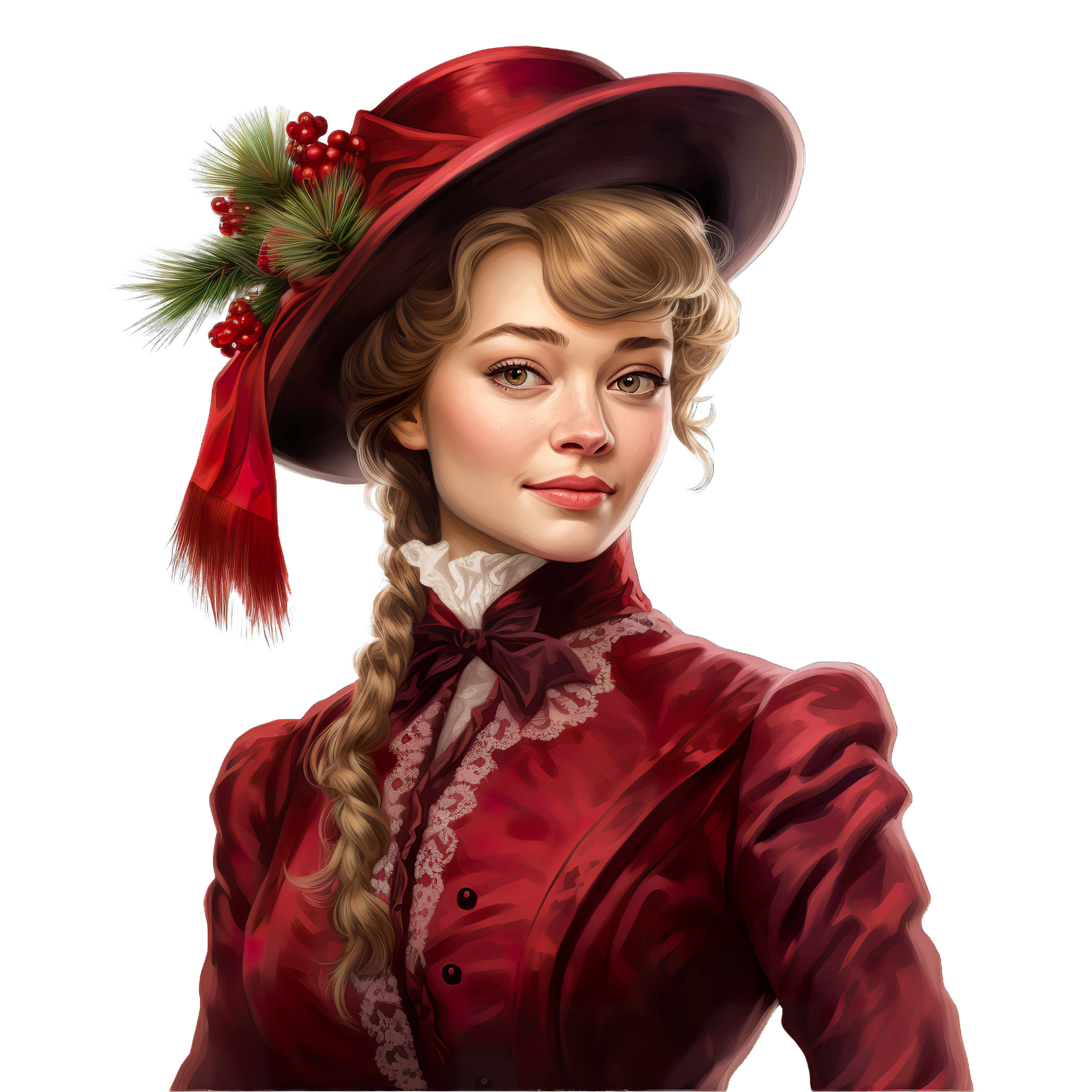 Victorian Woman in Red Christmas Outfit with Festive Hat Victorian woman in red dress and hat adorned with holiday decorations.Download PNG ▼Download JPG ▼Related posts:Fresh Daikon Radish with Leaves ClipartOrange Slice with Leaves in Watercolor StyleStrawberry Cocktail in Elegant Martini Glass drink beverage garnish watercolor clipart vectorTrio of Colorful Bell Peppers in Watercolor StyleTwo Whole Durians with Spiky Green Shells durian fruit tropical clipart vectorClipart of Papaya Halves with Seeds and Green LeavesColorful Carrot Mascot with Fresh Greenery in Vector ArtWatercolor Fennel Bulb with Lush Green FrondsVibrant Orange And Blue Butterfly With Detailed WingStack of Polka Dot Covered Books in Watercolor StyleWatercolor Christmas Tree with Wrapped Gifts BelowFresh Green Spinach Leaves in Watercolor Style vegetable food clipart vector art