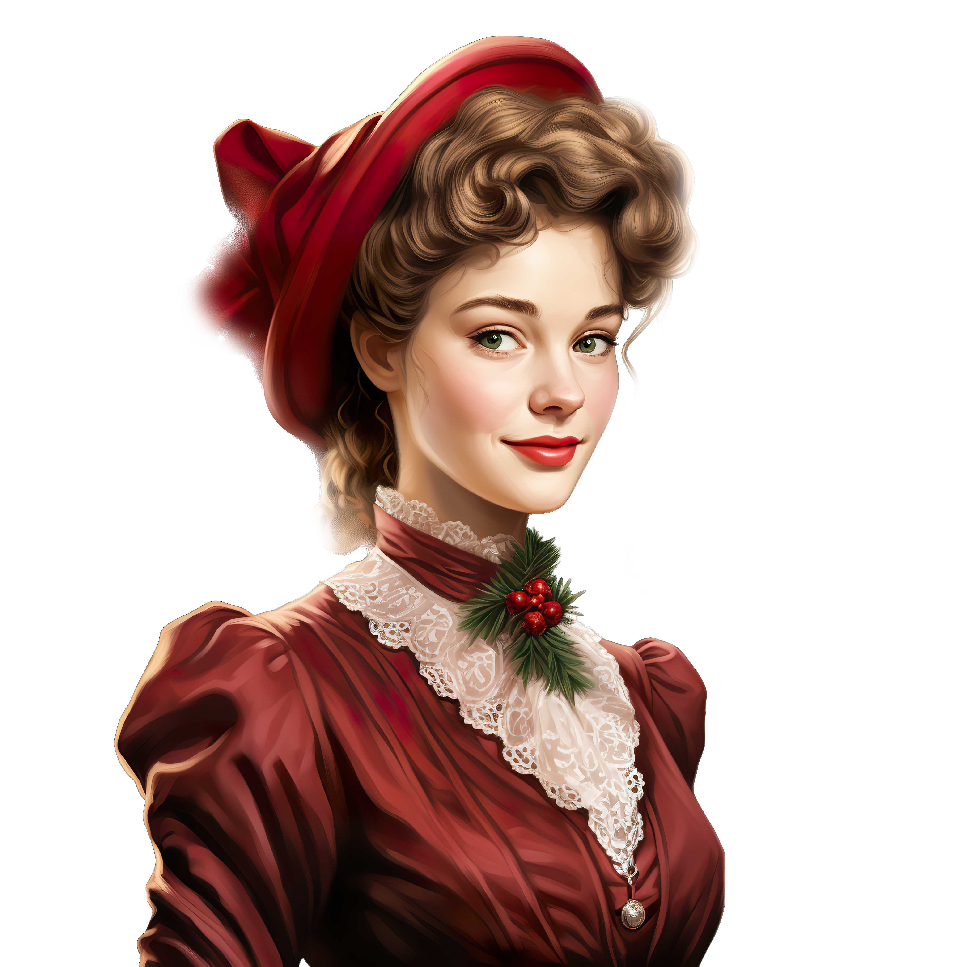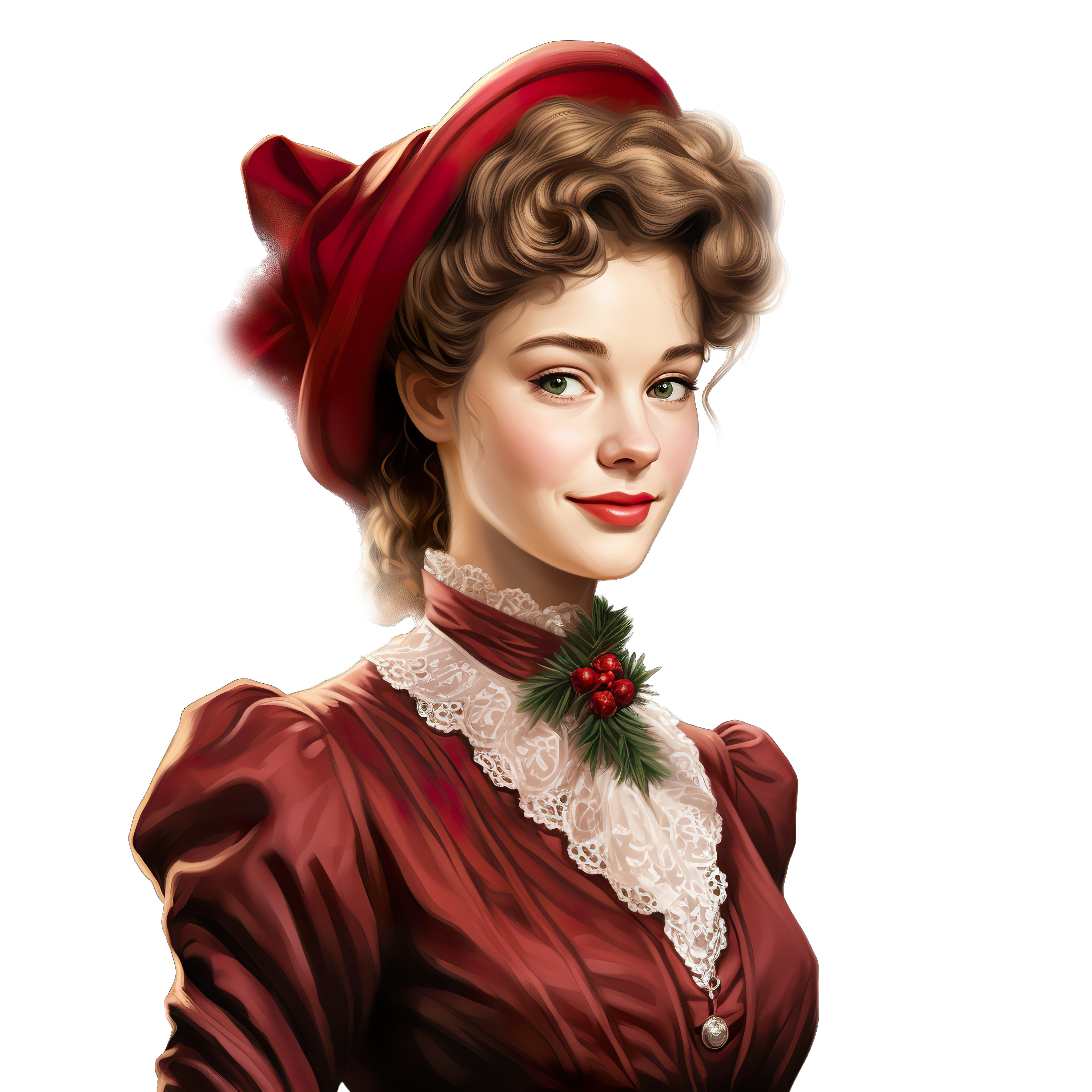 Victorian Woman with Red Hat and Holiday Dress Clipart Victorian woman wearing red hat and holiday dress with lace collar.Download PNG ▼Download JPG ▼Related posts:Glass of Water with Cucumber Slices and Mint LeavesWatercolor Brussels Sprouts Trio Green Vegetables Clipart VectorRed Bell Pepper with Green Stem in Detailed ClipartWatercolor Blueberry Muffin with Striped Paper Liner food dessert baked pastry clipartWatercolor Cranberries and Leaves Clipart Vector ArtChristmas Gingerbread Man with Santa Hat and Gift BoxesWatercolor Radishes with Green Leaves and Roots food vegetables clipart vector artChocolate brownie square topped with pecan nuts dessert food sweet baked treatVibrant Butterfly With Glowing Wings In FlightDog wearing a pumpkin hat, black and white furWatercolor Glass of Red Fruit Smoothie drink beverage clipart vector art printableOrange And Black Butterfly With Detailed Wing Patterns