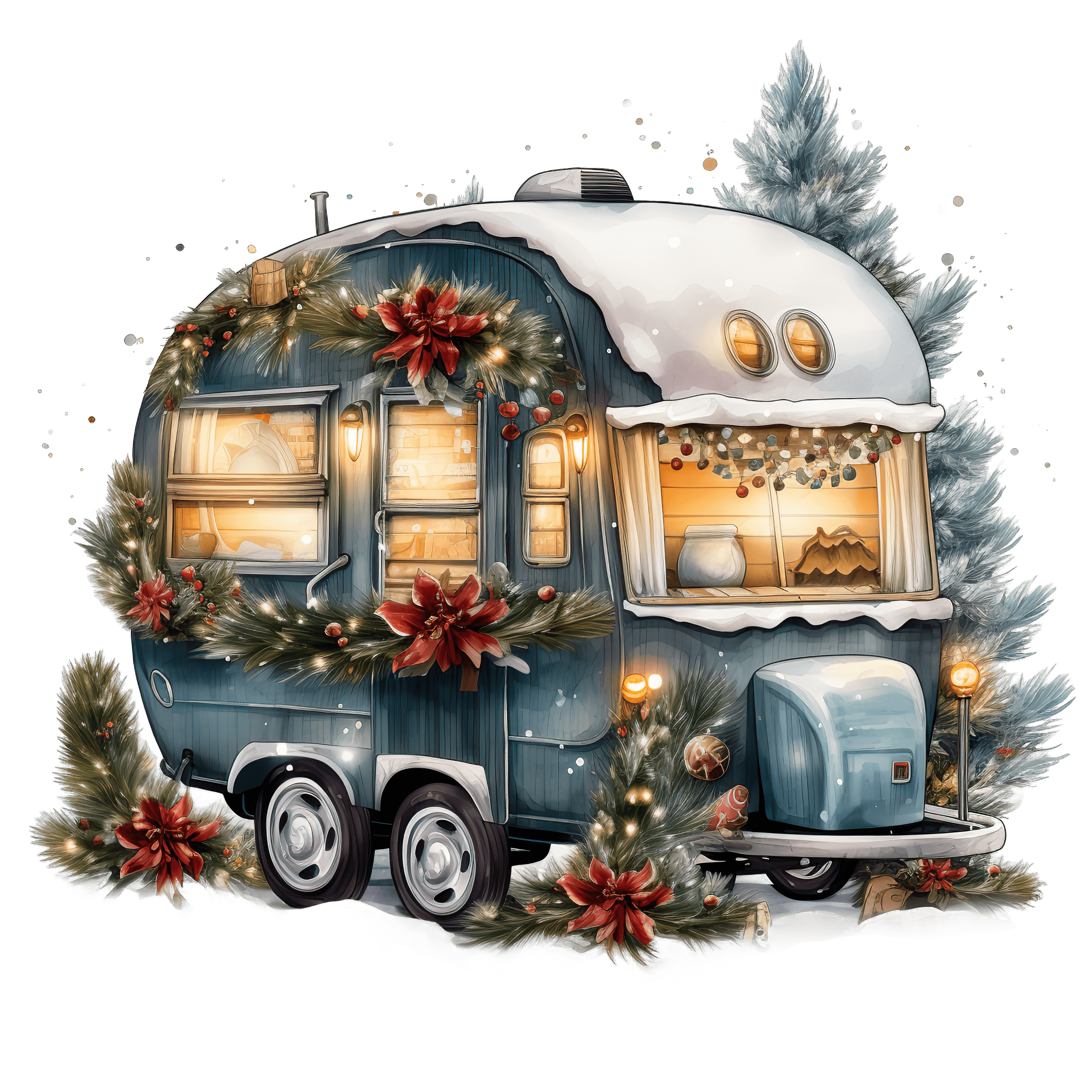 Vintage Camper Decorated with Festive Holiday Wreaths and Snow Vintage blue camper adorned with holiday wreaths, lights, and snow-covered details.Download PNG ▼Download JPG ▼Related posts:Bright Red Scarf with Tassels on Black BackgroundFestive Snow Globe with Winter Cabin and Snowy Pine TreesEspresso Martini Cocktail in a Coupe Glass ClipartVibrant Butterfly Showcasing Multicolored Wings In FlightWatercolor Butterfly With Pink And Purple PngDetailed Clipart of a Whole Brown Root VegetableWatercolor art of sliced ripe papaya with seedsWatercolor Pumpkin with Stem for Autumn Celebrations holiday halloween thanksgiving orange clipartPear Topped Cake on a Blue PlateWatercolor Slice of Juicy Watermelon with Seeds food drink fruit red greenRipe Red Cherries with Green Leaves in Watercolor StyleStack of Colorful Books in Artistic Watercolor Style
