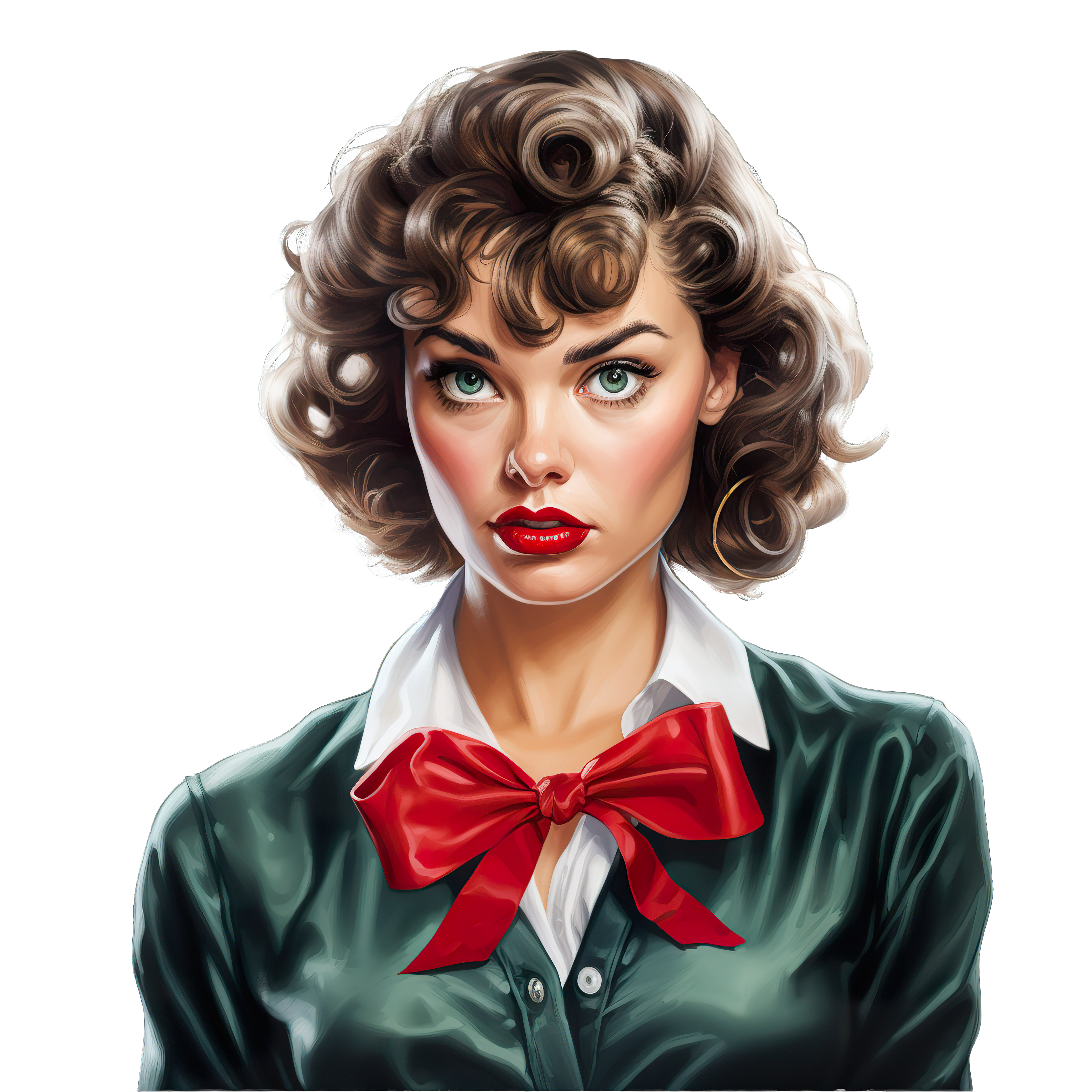 Vintage Styled Woman with Red Bow and Curly Hair Vintage styled woman with curly hair, green blouse, and large red bow.Download PNG ▼Download JPG ▼Related posts:Stack of Three Lemon Bars with Powdered Sugar ToppingVibrant Green Soybean Plant with LeavesOpen Book with Multicolored Watercolor Clouds EmergingCartoon Lamb Peeking Around a CornerBunch of Ripe Mulberries with Green LeavesKoala Holding Leaf in Cartoon StyleStained Glass Style Butterfly With Vibrant Green AndRipe Purple Gooseberries Hanging from a Branch with LeavesColorful Butterfly With Intricate Wing Designs Clipart VectorElegant Couple Dressed in Formal Attire at DanceBlue And Black Butterfly With Detailed Wing PatternsVibrant Illustration of Open Book with Flowers and Butterfly