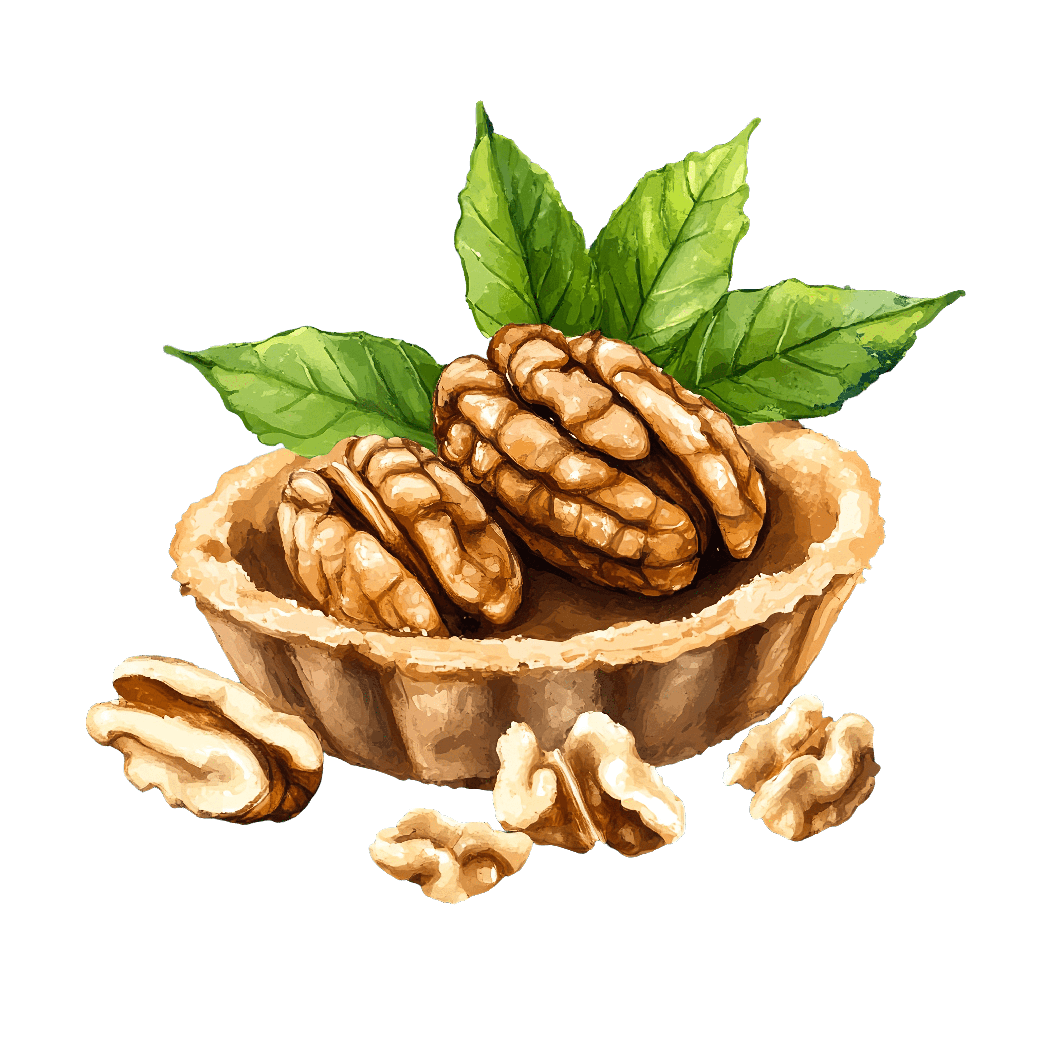Walnut Tart with Whole Walnuts and Green Leaves Walnut tart surrounded by whole walnuts and fresh green leavesDownload PNG ▼Download JPG ▼Related posts:Fresh Green Asparagus Stalks Vector ArtGreen cucumber vegetable clipart with realistic texture food vector art art freshWatercolor art of Fresh Whole and Sliced Turmeric RootWatermelon Slice with Seeds and Green Rind fruit red clipart vector artCartoon Style Green Reptile Balancing on SpringDigital Art of Edible Cauliflower with Lush Green LeavesBlue Feathered Raven ClipartBlue Butterfly With Sparkling Wings In Detailed IllustrationLion cub with butterfly vector illustrationDetailed Butterfly Illustration With Vibrant Multicolored X88Pastel Macaron Delight Vector Art ClipartCapybara Lying on Inflatable Pool Float Clipart