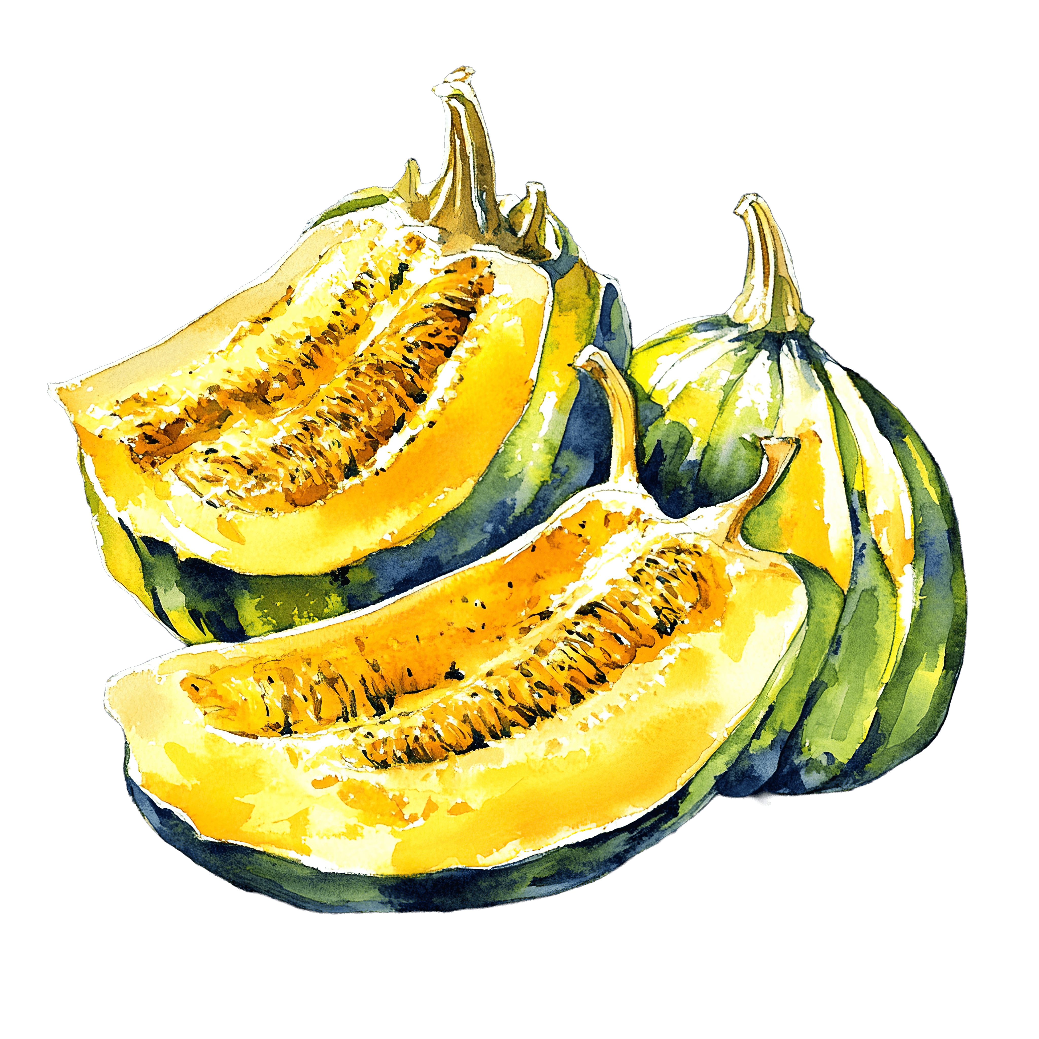 Watercolor Acorn Squash with Halved and Whole Pieces Watercolor depiction of acorn squash with halved and whole piecesDownload PNG ▼Download JPG ▼Related posts:Gingerbread Man Cookie with White Icing and Bow Tie IllustrationFresh Orange Fruit with StemCartoon panther cub reaching for pink butterflyBranch of Blackcurrants with Lush Green LeavesCat in a Pumpkin Costume Clipart IllustrationWoman with Blonde Hair Holding a Wrapped Gift BoxBlue Touring Motorcycle with Saddlebags Vector Clipart IllustrationThree Ears of Corn with Green Husks in Watercolor StyleYellow Banana Fruit with Green Leaf Clipart seeds vector art printable tropicalLeopard in Green Hat and Outfit ClipartStack of Colorful Books with a Red Apple on TopRed Christmas Ornament with White Decorative Floral Design