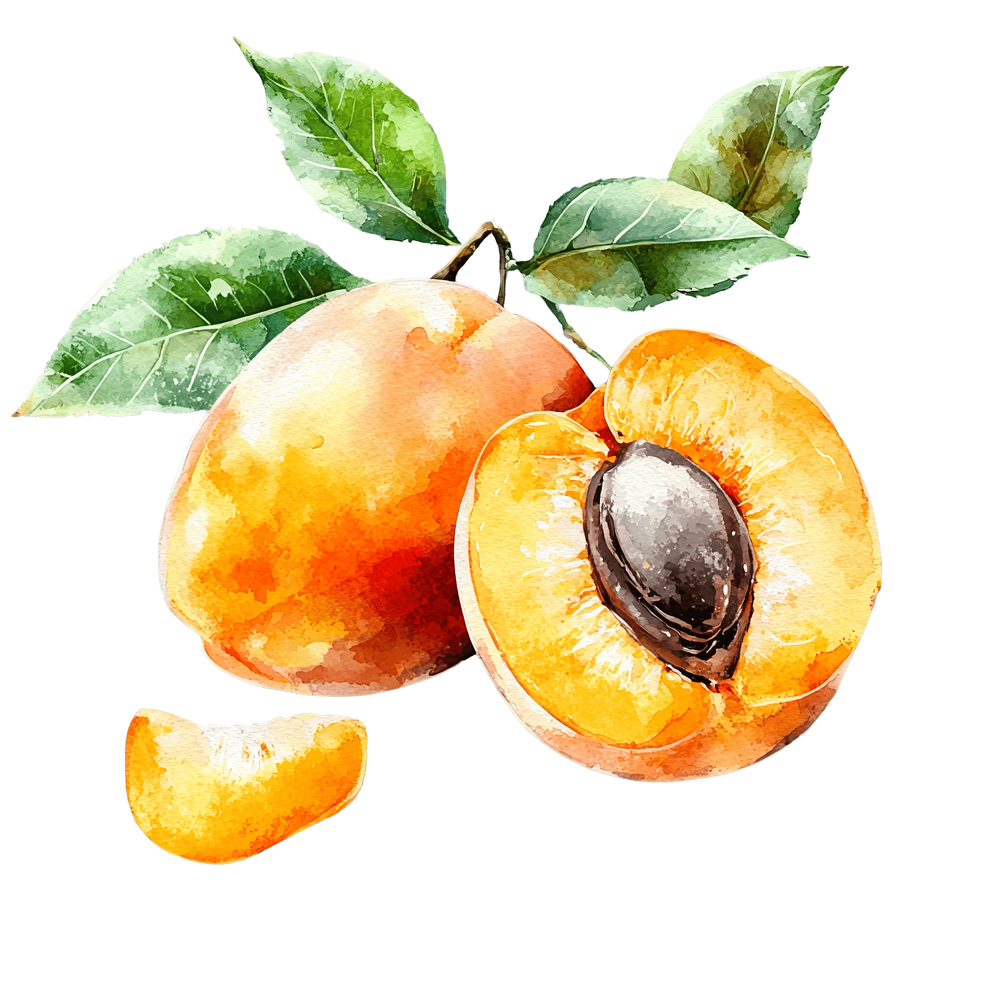 Watercolor Apricot with Leaves and Seed Watercolor depiction of apricot with leaves and seed on black.Download PNG ▼Download JPG ▼Related posts:Watercolor Pears with Slices and Leaf DetailBundle of White Asparagus Stalks Tied with TwineFestive Christmas Ornaments with Red Beads and Gold TrimMaize Cob Art with Fresh Green LeavesChocolate Layer Cake Slice with Raspberries and HazelnutsWatercolor Stack of Colorful Books with Two Apples on TopRed Christmas Cracker Illustration with Ribbon and Gold AccentsGreen Zucchini Vegetable Clipart with Shiny Surface food produce vector art iconFresh Green Broccoli with Detailed Leaves and StemsPink Hibiscus Flowers with Green Leaves in Detailed ClipartGreen Apple with Leaves in Watercolor Style fruit clipart vector art printableFresh Green Broccoli Stalks in Detailed Clipart vegetable food healthy vector art