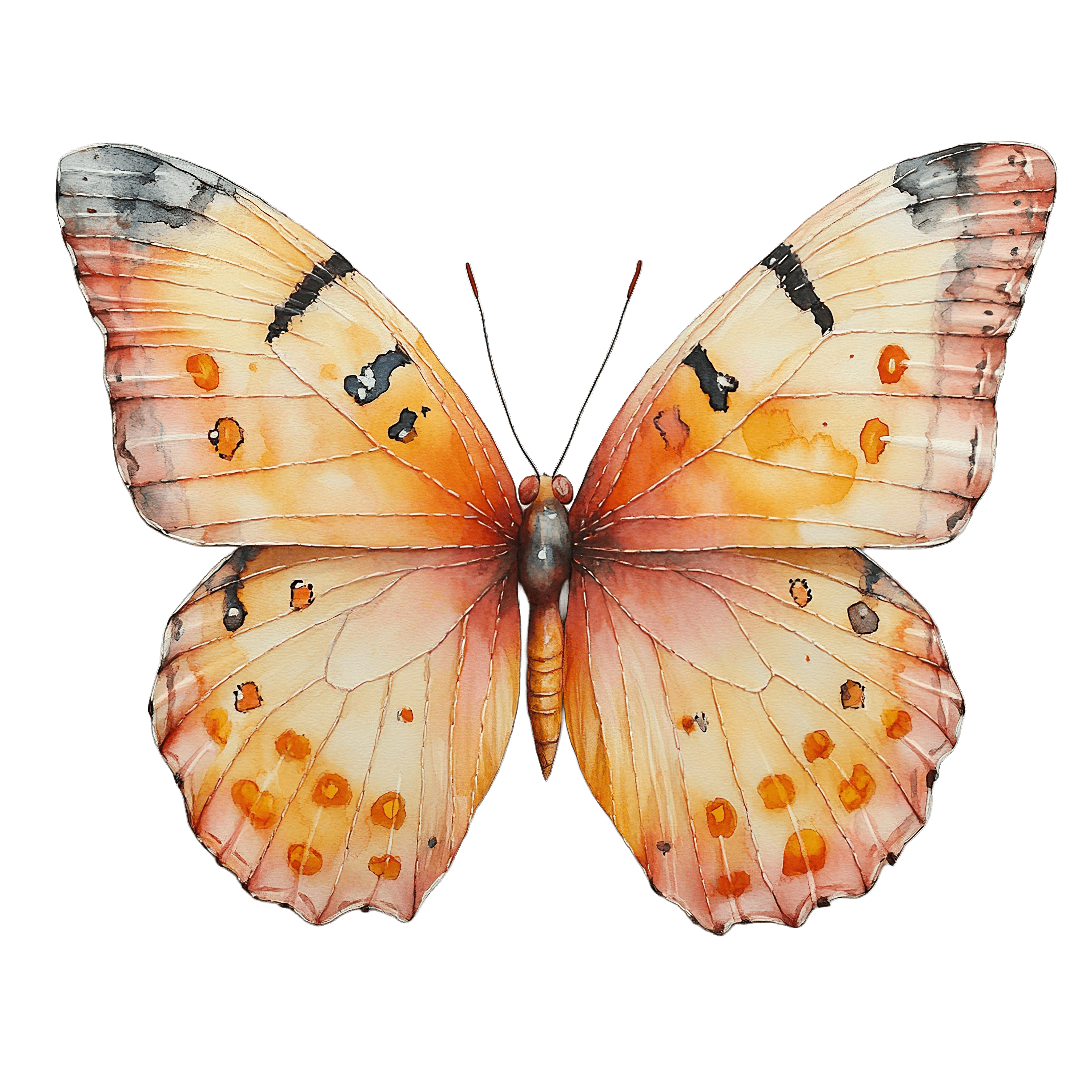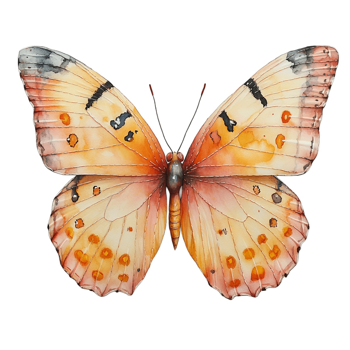 Watercolor Butterfly Illustration With Orange And Black Patterns Watercolor butterfly features orange wings with black and orange spots.Download PNG ▼Download JPG ▼Related posts:Vibrant Watercolor Lemons and Slices Vector ArtColorful Christmas String Lights in Watercolor StyleTraditional Nutcracker Soldier with Decorative Hat and UniformPenguin Wearing Santa Hat and Scarf on Black BackgroundCaramel Flan Dessert on Blue Patterned Plate food sweet sauce watercolor clipartWoman in Traditional Christmas Attire with Red Scarf and HollyBlack And Yellow Butterfly With Distinctive Wing PatternsAssorted Colorful Fruits Including Apples and Citrus berries clipart vector art printableYellow And Black Butterfly With Outstretched Wings DisplayTwo Glasses of Lemon Water with Ice and Mint LeavesWoman with Red Bow and Striped Green Shirt IllustrationCozy Winter Scene with Dog by Festive Fireplace