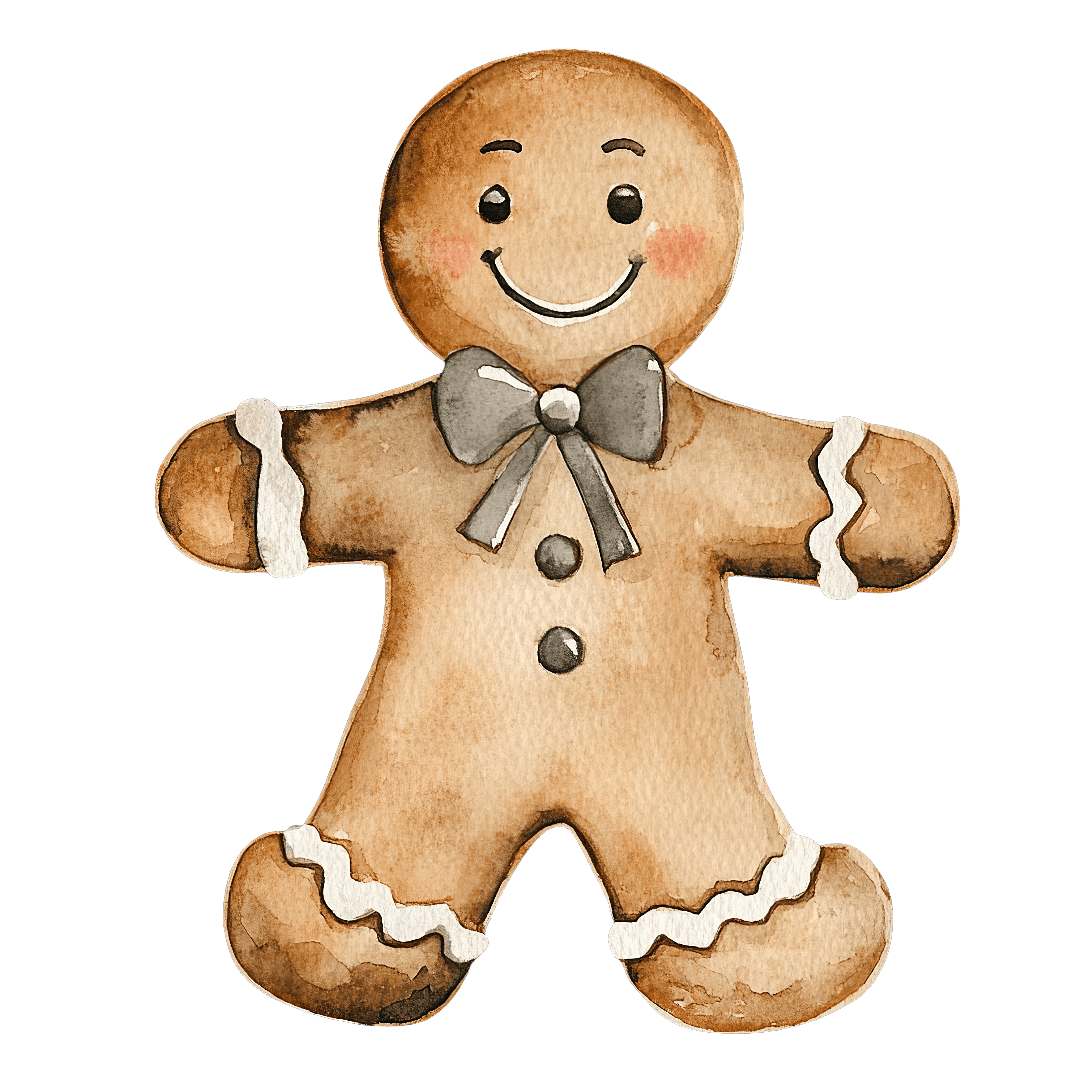 Watercolor Gingerbread Cookie with Icing and Bow Tie Gingerbread cookie in watercolor style with icing and bow tie.Download PNG ▼Download JPG ▼Related posts:Festive Rabbit Wearing Santa Hat Surrounded by Christmas FoliageWatercolor Pear with Leaf Clipart DesignColorful holiday string lights with multiple vibrant bulb designsWatercolor Apple with Green Leaves PaintingCartoon monkey clipart with outstretched armsWatercolor Striped Pumpkin with Natural Stem holiday vegetable food autumn clipart vectorCupcake with Cream Topping and Two Cherries dessert food sweet pastry clipartGreen Cactus in Blue Pot on Black Background IllustrationHand-Drawn Custard Apple with Detailed Textured Skin fruit green clipart vector artGlass of Iced Ginger Tea with Fresh Mint LeavesOrange cartoon duck with bow tie vectorVintage Styled Woman with Red Bow and Curly Hair