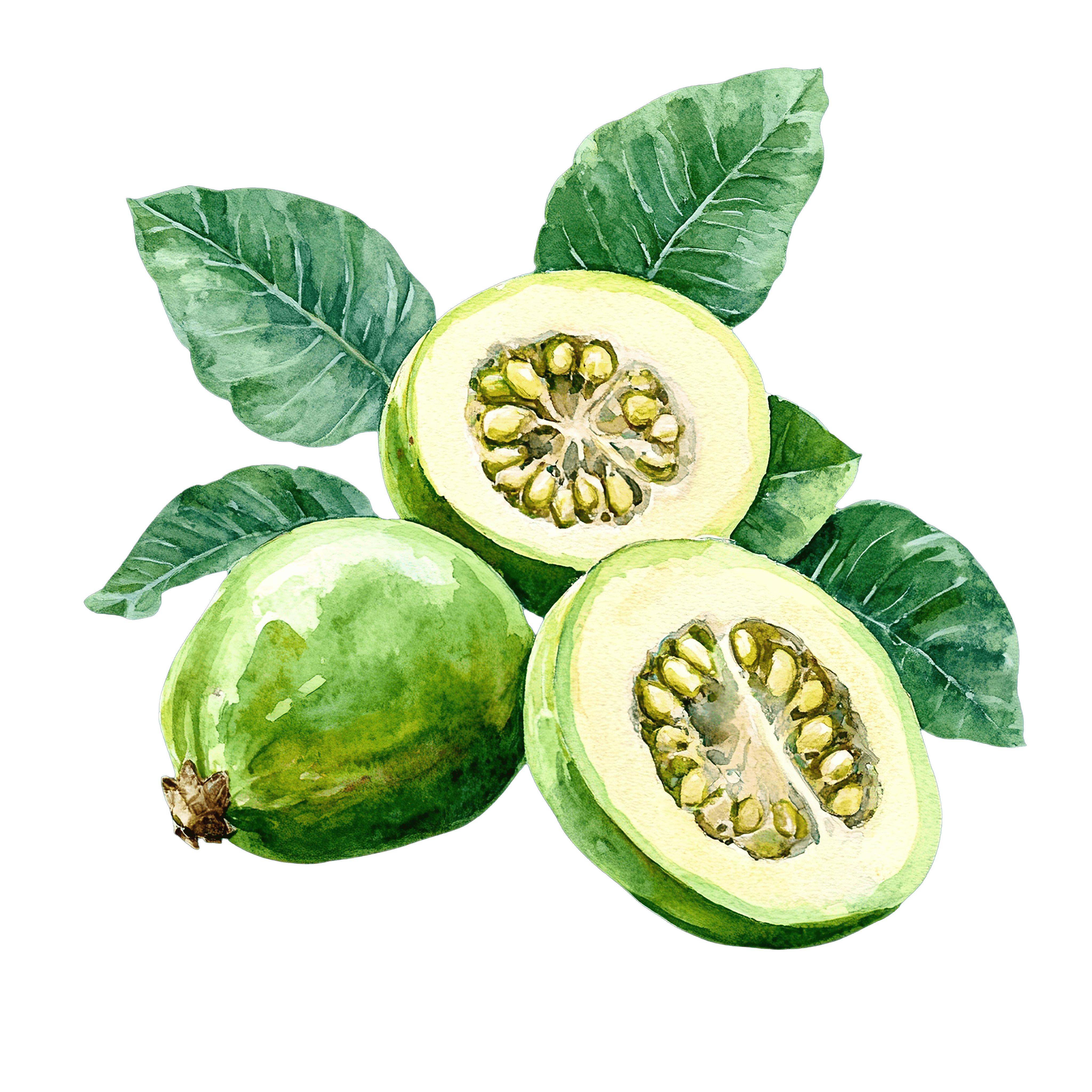 Watercolor Guava Fruit and Leaves Design Watercolor depiction of whole and sliced guava with green leaves.Download PNG ▼Download JPG ▼Related posts:Pink and Purple Jellyfish Clipart IllustrationBunch of Fresh Swiss Chard with Green LeavesGlass of Iced Tea with Mint Leaves on TopDetailed meerkat illustration with textured furFestive Snow Globe with House and Christmas Trees InsideWhole and Sliced Grapefruit with Vibrant Pink FleshCartoon Style Green Crocodile Clipart with Big EyesGlass of Dark Beer with Frothy Head beverage drink alcohol foam clipartFresh Blackcurrant Berries with Vibrant Green LeavesWatercolor Purple Onion Whole and Sliced Clipart vegetable food vector art printableWatercolor Assorted Berry Collection Vector Art Printable FruitStrawberry Cocktail in a Martini Glass with Garnish