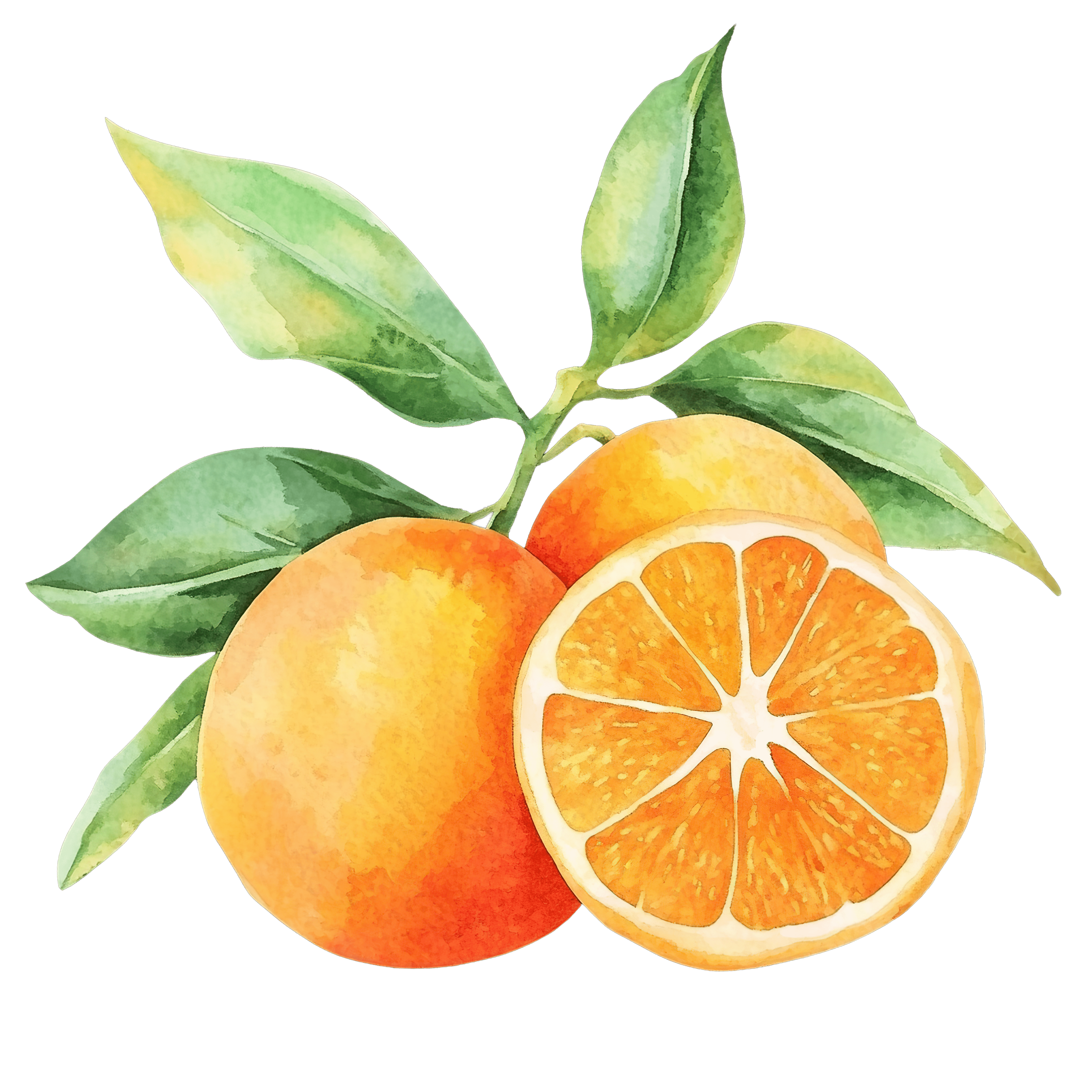 Watercolor Oranges with Leaves and Sliced Half Watercolor depiction of whole oranges with leaves and a sliced half.Download PNG ▼Download JPG ▼Related posts:Vibrant Neon Winged Butterfly Illuminating The Night SkyWatercolor Broccoli Clipart with Green Florets and StemsTurtle with Colorful Beach Ball Clipart IllustrationGlass of Purple Juice with Transparent Details beverage drink clipart vector artVibrant Butterfly Illustration Featuring Detailed Colorful Wing DesignsWatercolor Cheesecake Clipart with Golden Brown Crust dessert food vector art printableHibiscus Tea with Red Flowers and Green LeavesFestive Brown Rabbit in Decorative Holiday Wreath ClipartVibrant Purple Radish with Lush Green Leaves ClipartWatercolor Fern Fronds with Spiral ShapesWatercolor Blueberries on Branch with Green Leaves clipart vector art fruit foodSkunk wearing a festive party hat
