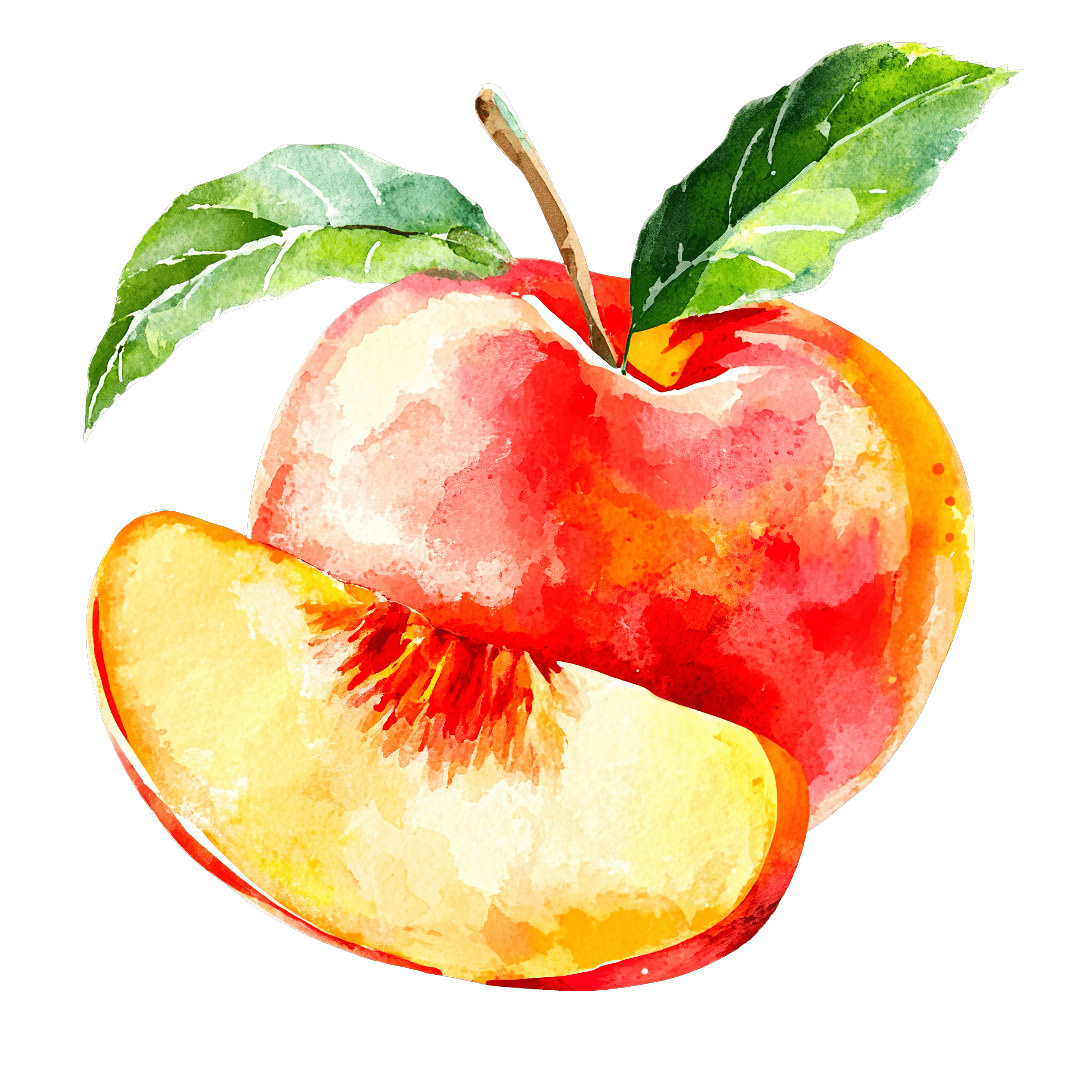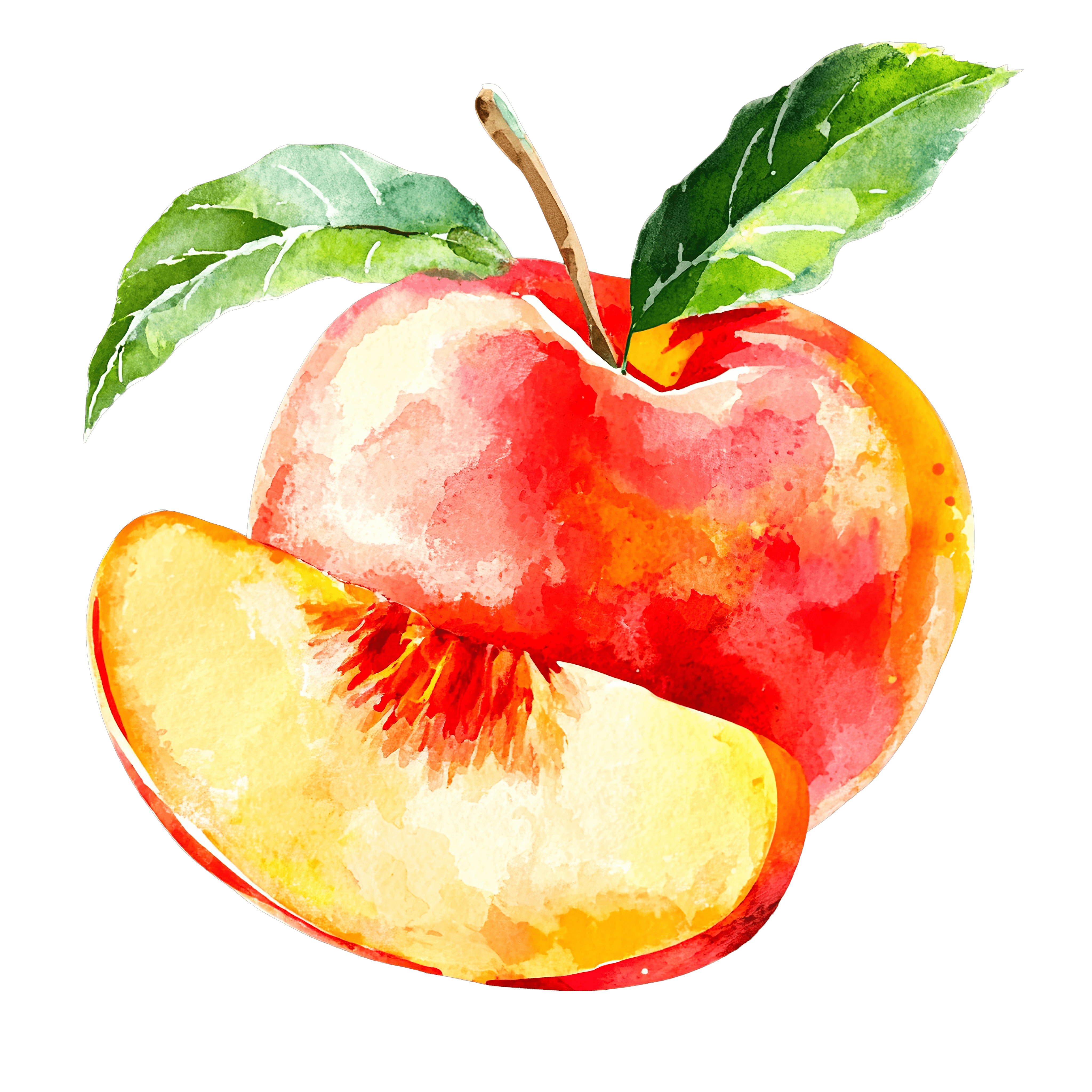 Watercolor Peach with Leaf and Slice Detail fruit clipart vector art printable Watercolor peach with a leaf and a sliced section.Download PNG ▼Download JPG ▼Related posts:Colorful Fruit Cocktail with Straw and Fresh GarnishesMojito Drink with Lime and MintPink Frosted Donut with Colorful Sprinkles Clipart frosting food dessert vector artChristmas Elf Character in Green Hat and OutfitCartoon Character with Large Eyes and Purple OutfitMeerkat peeking from behind a corner clipartYoung Boy Dressed as a Prince with Crown and CapeFestive Green and Red Christmas Hat with Stars DesignGlass Mug of Hot Chocolate with Whipped Cream ToppingPurple striped hippo with three yellow ducklingsGoldfish Blowing Bubbles Clipart with Detailed FinsYellow Turnip with Green Leaves