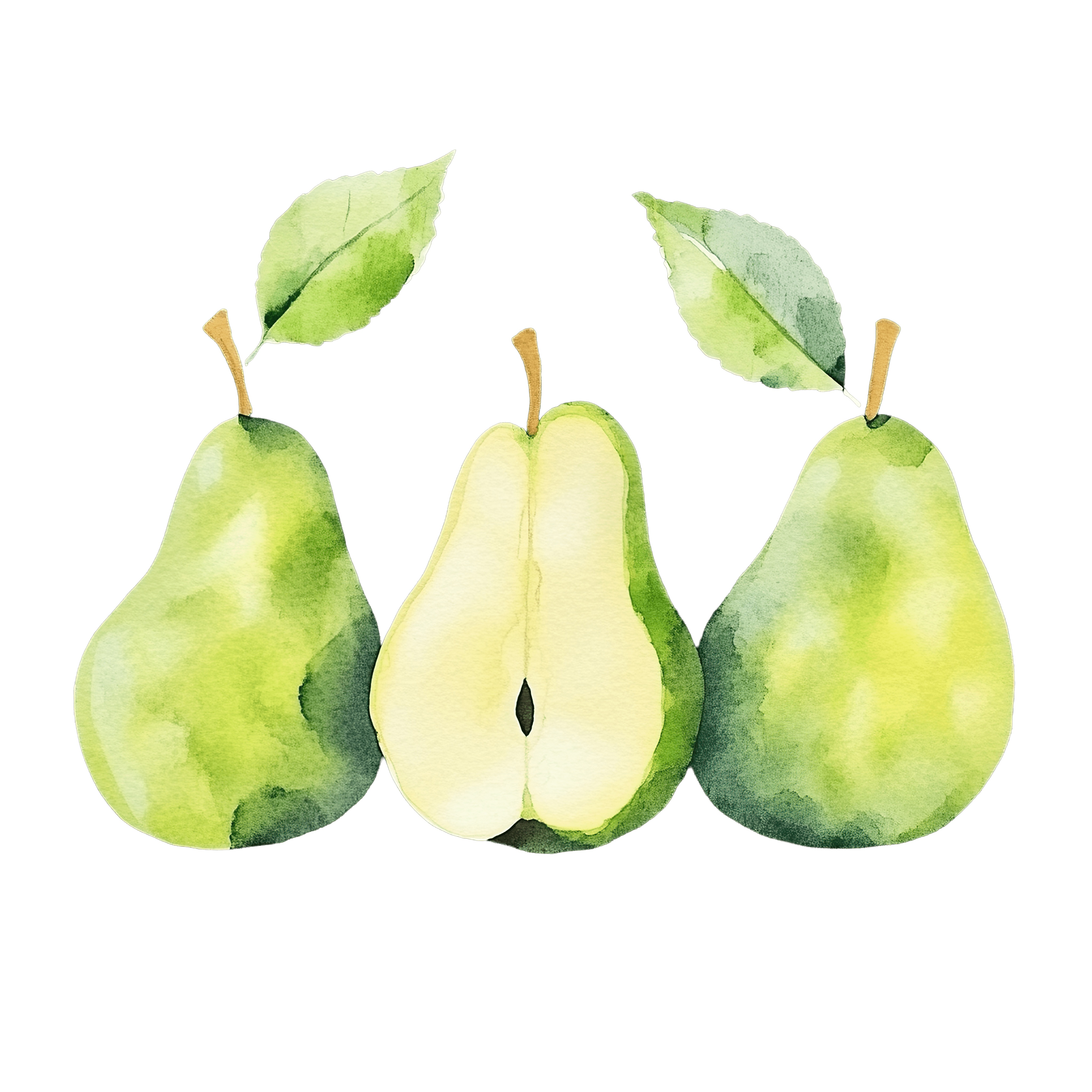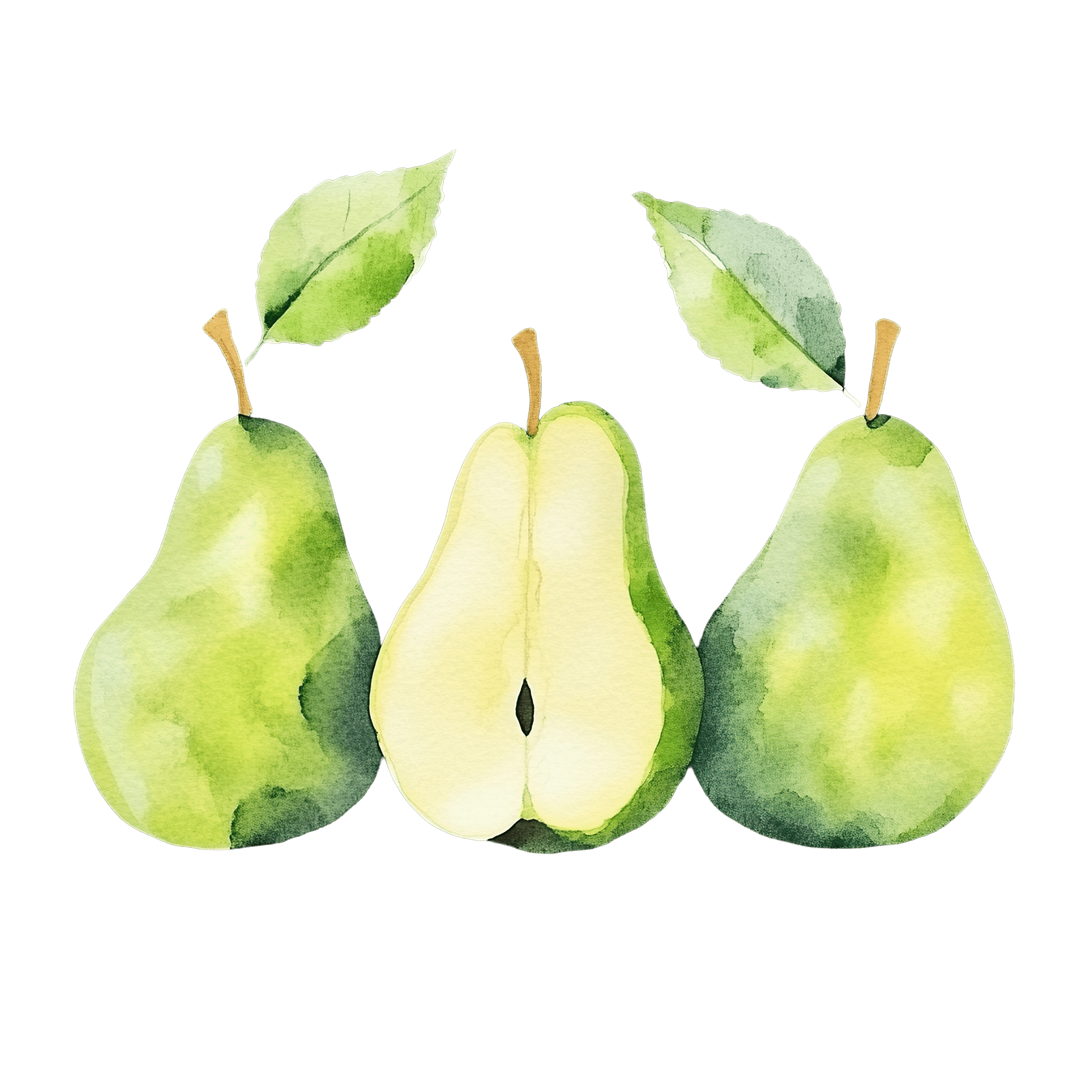 Watercolor Pears with Leaves and Sliced Half in Center Watercolor pears with green leaves and a sliced half in the center.Download PNG ▼Download JPG ▼Related posts:Fresh green bok choy vegetable with detailed leafy textureDecorated Christmas Tree with Red Ribbons and OrnamentsMatcha Roll Cake Clipart with Creamy CenterWatercolor art of Fresh Whole and Sliced Turmeric RootCartoon pelican holding a fishing net clipartCartoon duckling walking on black backgroundPurple Butterfly With Detailed Wing Patterns In ClipartDetailed Purple Butterfly In Flight With Graceful WingsWatercolor Raspberries and Green Leaf DesignCartoon Explorer Character Holding Magnifying Glass hat clipart vector art printable mascotColorful Sun and Cloud Clipart with Radiating Rays on BlackChristmas gnome wearing a red hat and festive attire illustration