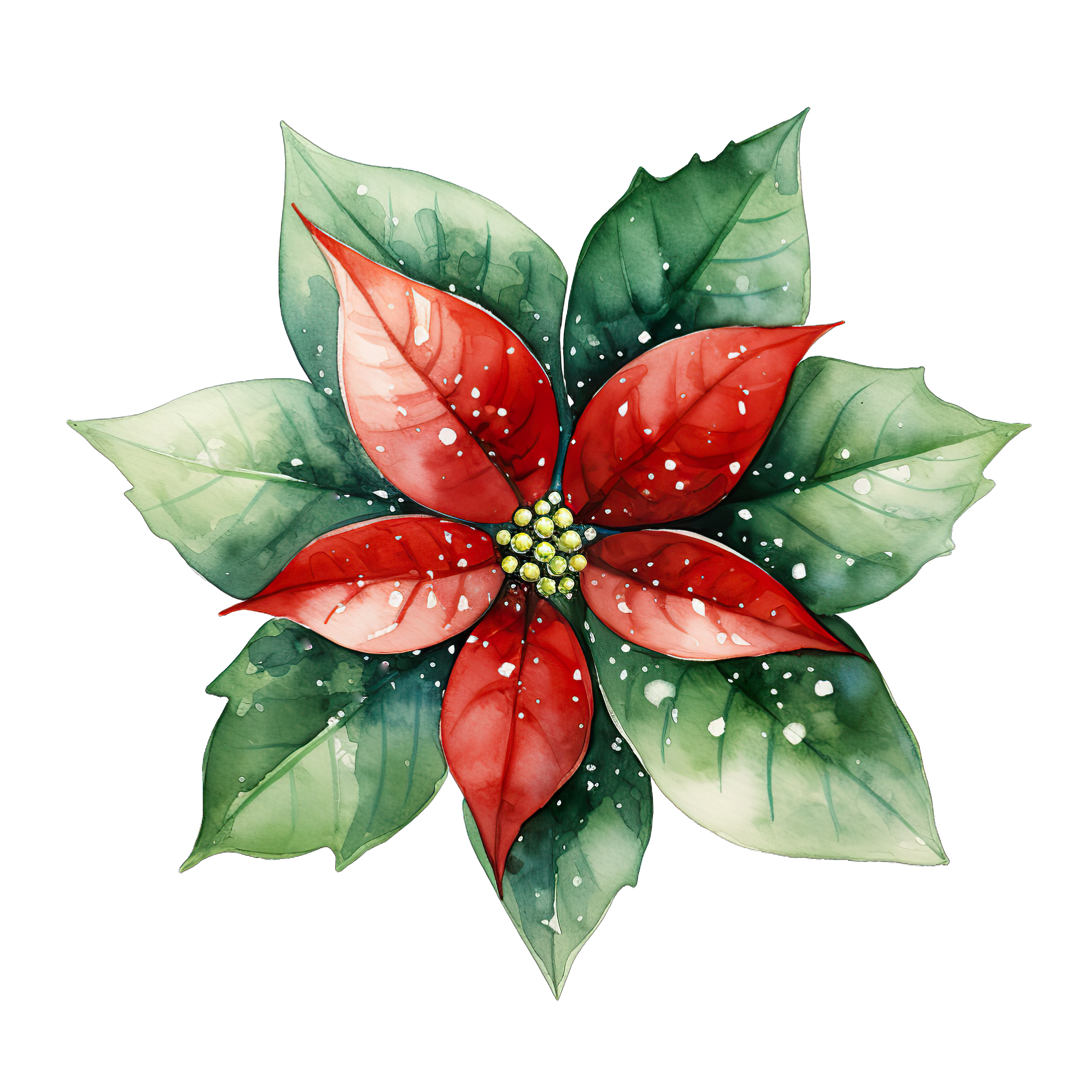 Watercolor Poinsettia Illustration with Red and Green Leaves Watercolor poinsettia with vibrant red and green leaves in artistic style.Download PNG ▼Download JPG ▼Related posts:Watercolor Slice of Juicy Watermelon with Seeds food drink fruit red greenCat in Santa Hat with Christmas Baubles IllustrationCartoon red panda with bushy tail and large eyesBright Yellow Seahorse with Bubbles ClipartChocolate Layer Cake Slice with Salted Topping dessert layers food sweet clipartVibrant Butterfly With Multicolored Wings On Clipart X76Cartoon Yellow Crab with Sun Clipart IllustrationCat in a Pumpkin Costume Clipart IllustrationVibrant Red Hibiscus Flower with Green Leaves on BlackColorful Sun and Cloud Clipart with Radiating Rays on BlackRed Bell Pepper with Green StemSlice of Blueberry Pie with Powdered Sugar Topping