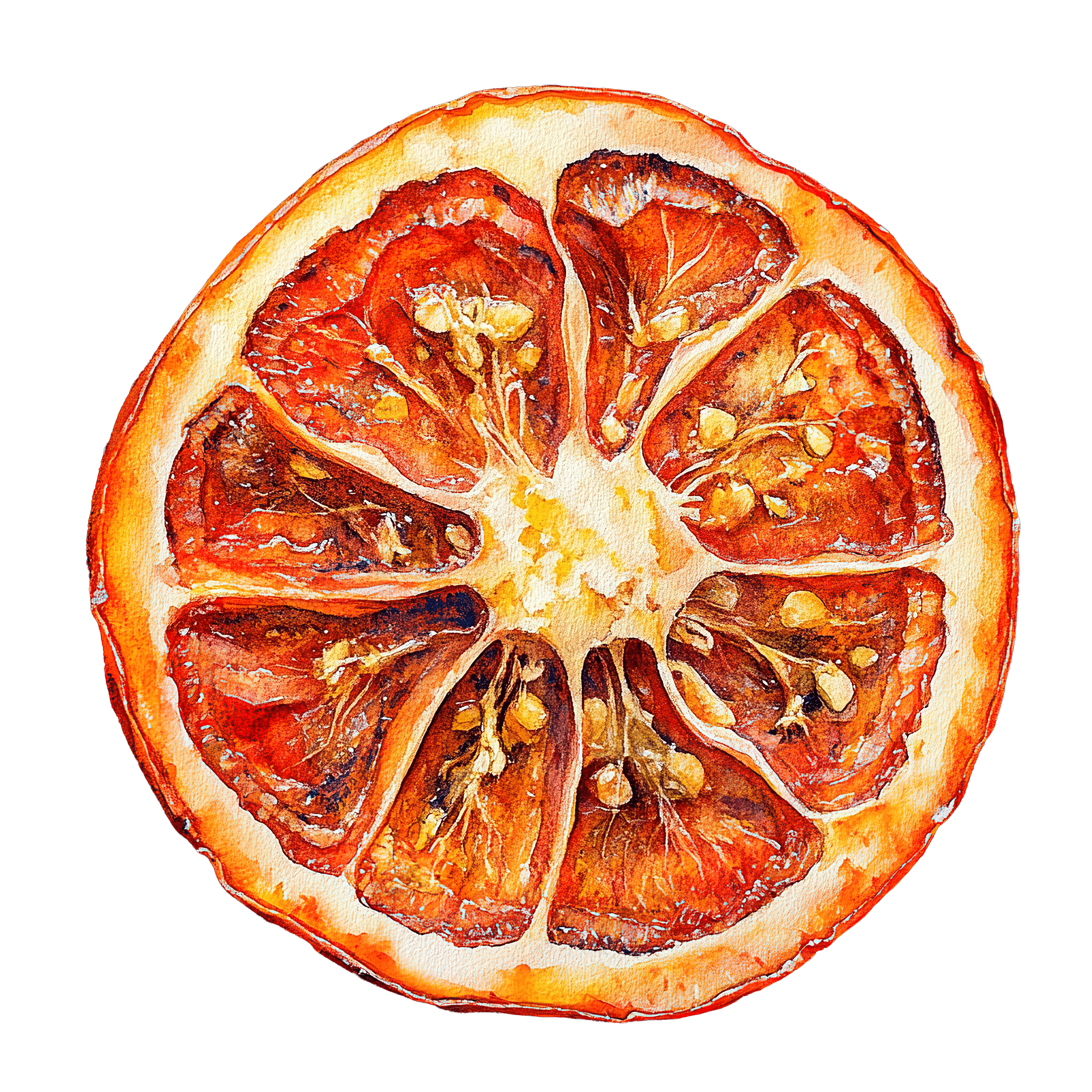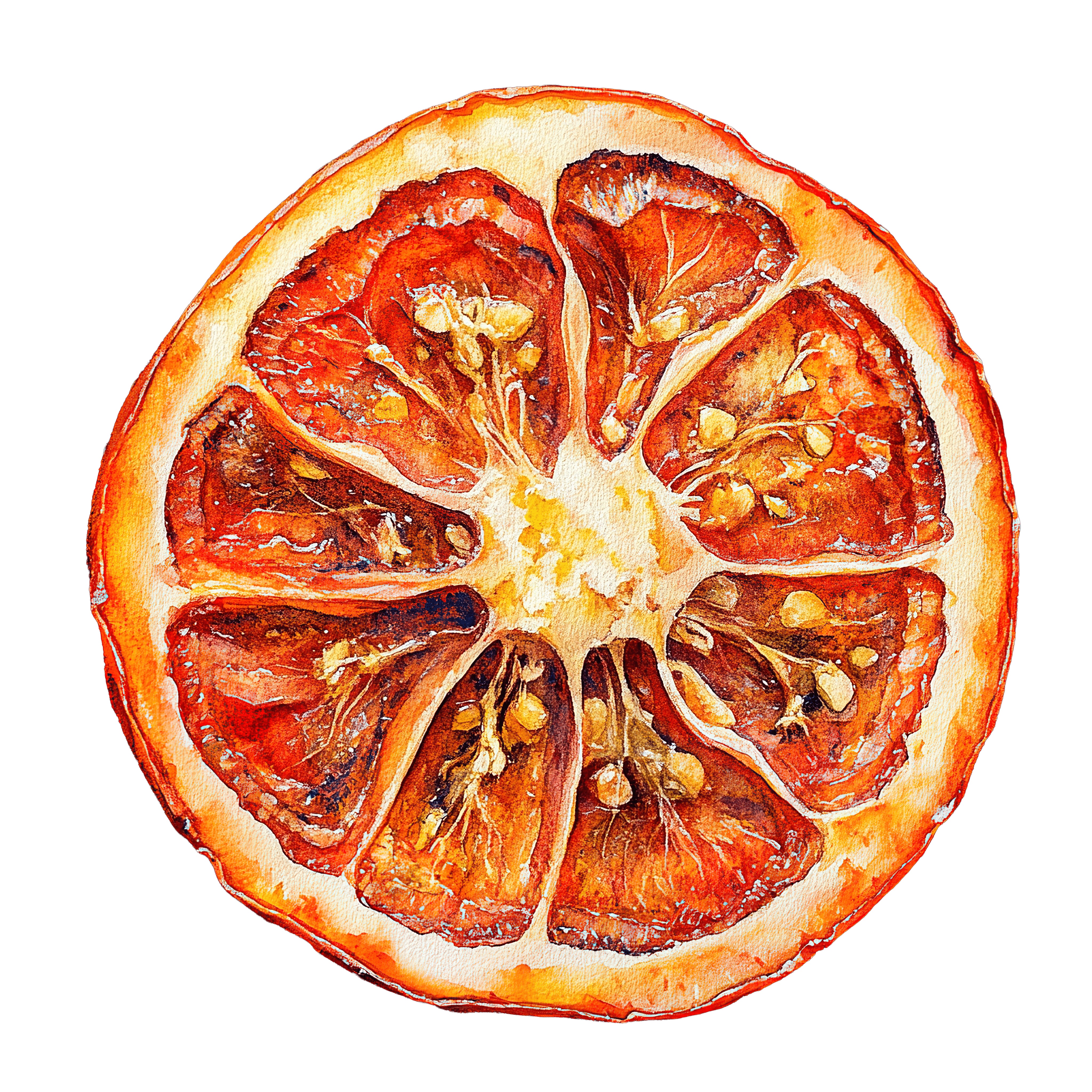 Watercolor Slice of Dried Orange with Seeds fruit food clipart vector art Watercolor depiction of a dried orange slice with visible seeds.Download PNG ▼Download JPG ▼Related posts:Vibrant Butterfly With Digital Art Style And BrightIced Coffee with Whipped Cream and Caramel DrizzleRed Heart-Shaped Pendant with Decorative Gemstone BorderVibrant Watercolor Lemons and Slices Vector ArtWatercolor butternut squash trio with detailed texture vegetable food clipart vector artIntricately Decorated Iced Gingerbread Cookie with Floral PatternsColorful Butterfly Illustration With Striking Orange And PurpleWatercolor Pumpkin with Stem for Autumn Celebrations holiday halloween thanksgiving orange clipartBlue Watercolor Plastic Bottle with Cap DesignOwl wearing a purple witch hat and scarfBunch of Ripe Mulberries with Green LeavesThree halved artichokes with vibrant purple interiors artichoke vegetable green food drink