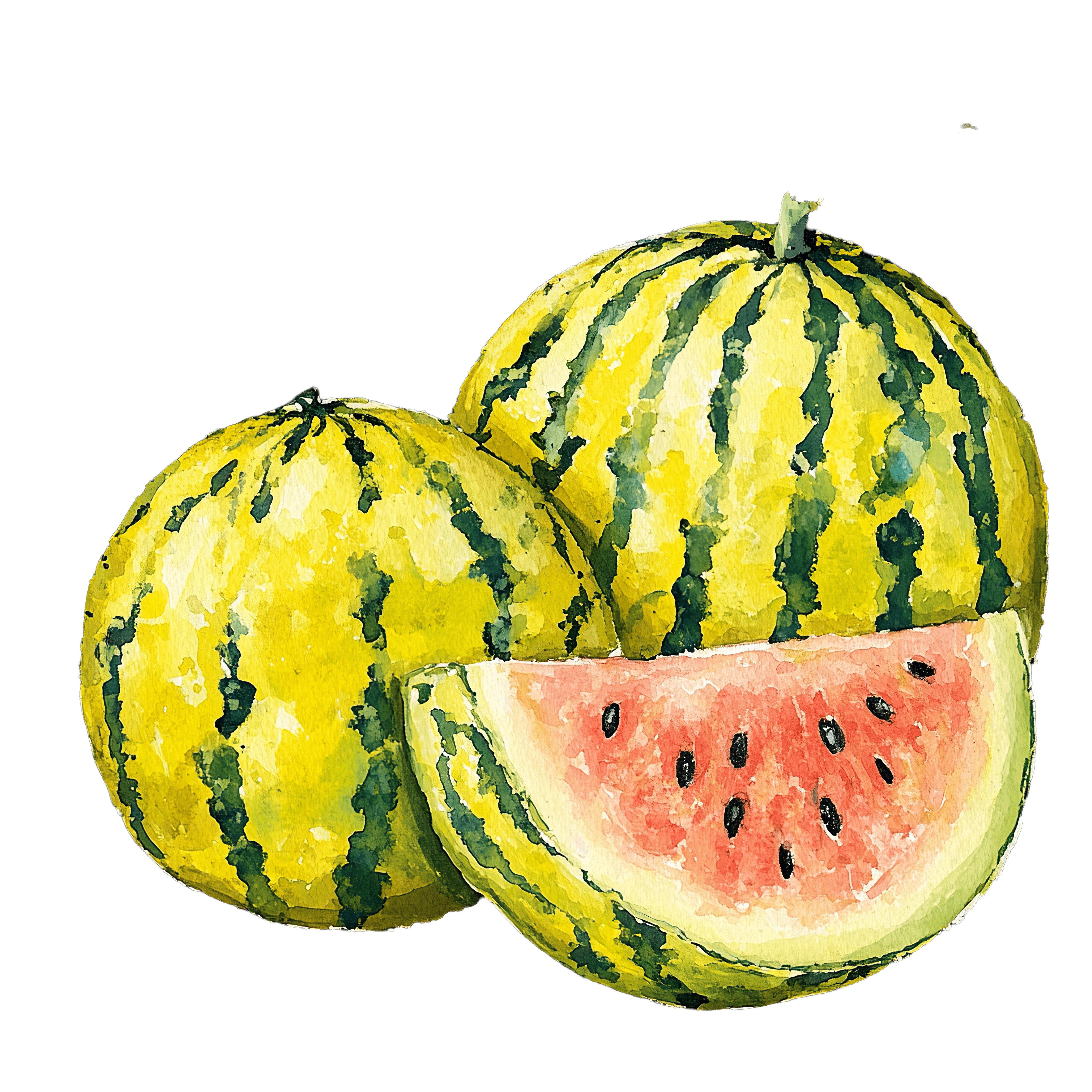 Watercolor Watermelons with Sliced Red Flesh and Seeds Watermelons depicted in watercolor style with a sliced section showing red fleshDownload PNG ▼Download JPG ▼Related posts:Watercolor Eggplant with Green LeavesArtistic Purple Plums with Green Leaves Vector Art ClipartOtter Wearing Santa Hat with Festive Holly and BerriesPeach Tart with Sliced Peaches and Mint LeavesCartoon Style Green Reptile Balancing on SpringShiny Red Christmas Ornament with Silver Hanging LoopCartoon Fairy Character with Golden Wings and DressPink owl beside stacked toy blocks illustrationVintage Leather-Bound Book with Teal Hardcover and Worn EdgesWhite Magnolia Flower with Detailed Petals on BlackRefreshing Strawberry Milkshake in a Tall Glass IconSlice of Cherry Pie with Icing Sugar Topping
