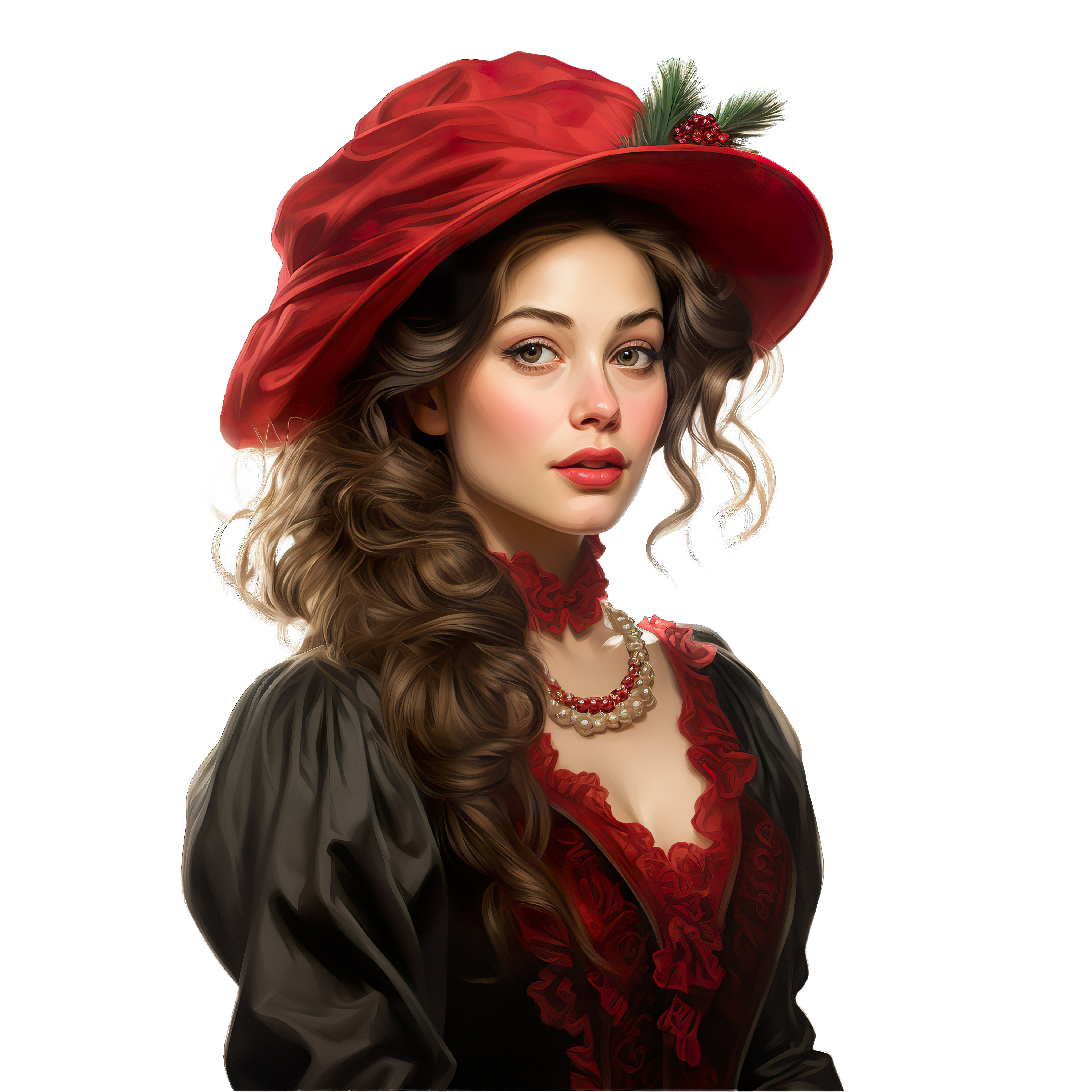 Woman in Red Hat and Vintage Dress with Necklace Woman with long curly hair wearing a red hat and vintage-style dress.Download PNG ▼Download JPG ▼Related posts:Black and White Panda Clipart IllustrationRed and Green Christmas Bauble with White Leaf PatternsPeach Cobbler Pie with Crumbly Topping ClipartVibrant Floral Arrangement with Pinecones and Red Berries IllustrationVibrant Butterfly With Red And Blue Patterned WingsGirl with Festive Poinsettia Crown Celebrating Christmas SeasonDetailed Butterfly Illustration With Vibrant Multicolored WingsYellow Ceramic Cup Filled with Hot Beverage drink steaming clipart vector artDetailed Butterfly Illustration With Pink And Black PatternedVibrant Green Collard Leaf Featuring Intricate Vein PatternsPink Sea Anemone with Flowing Tentacles in Vector ArtWoman in Santa Hat and Red Dress on White Background