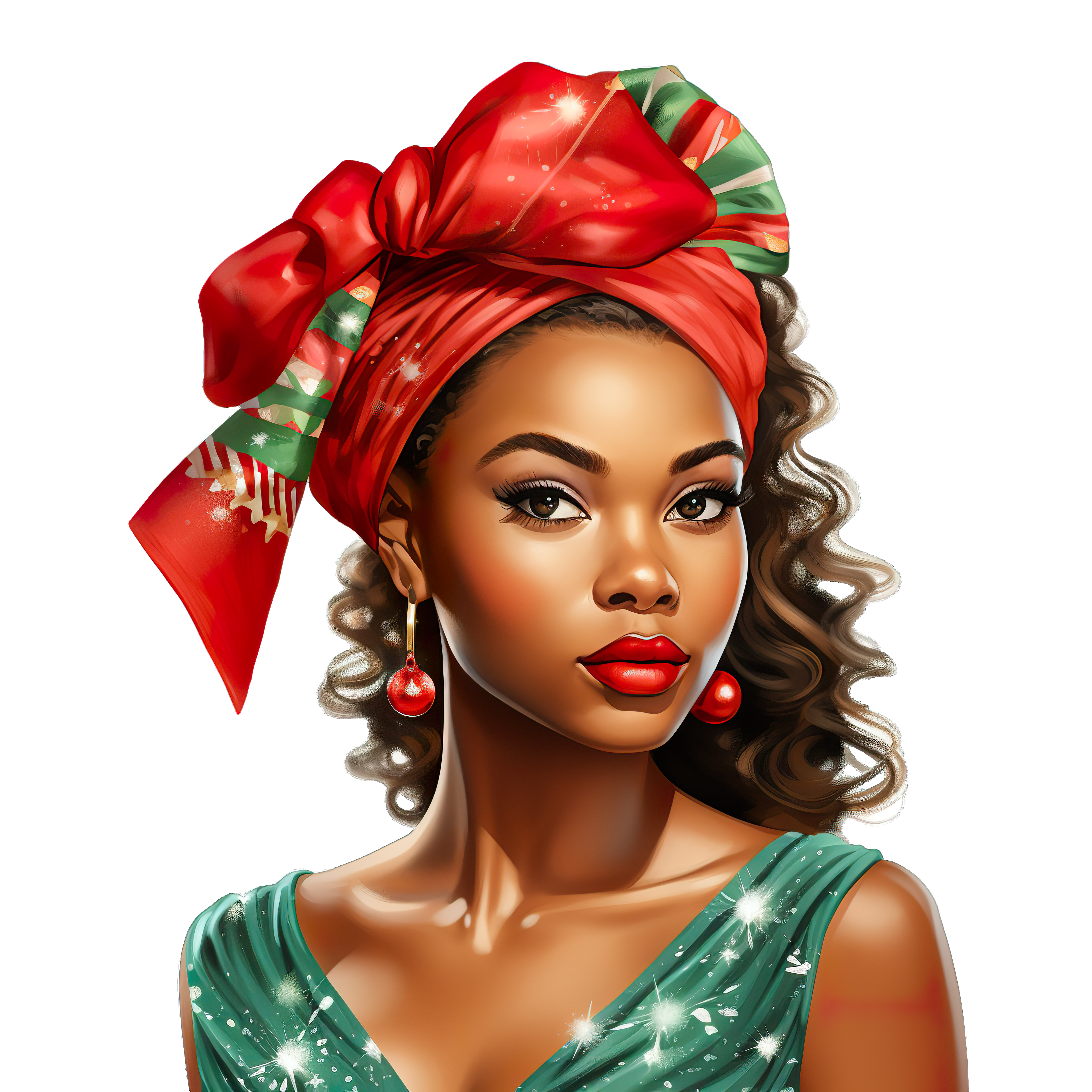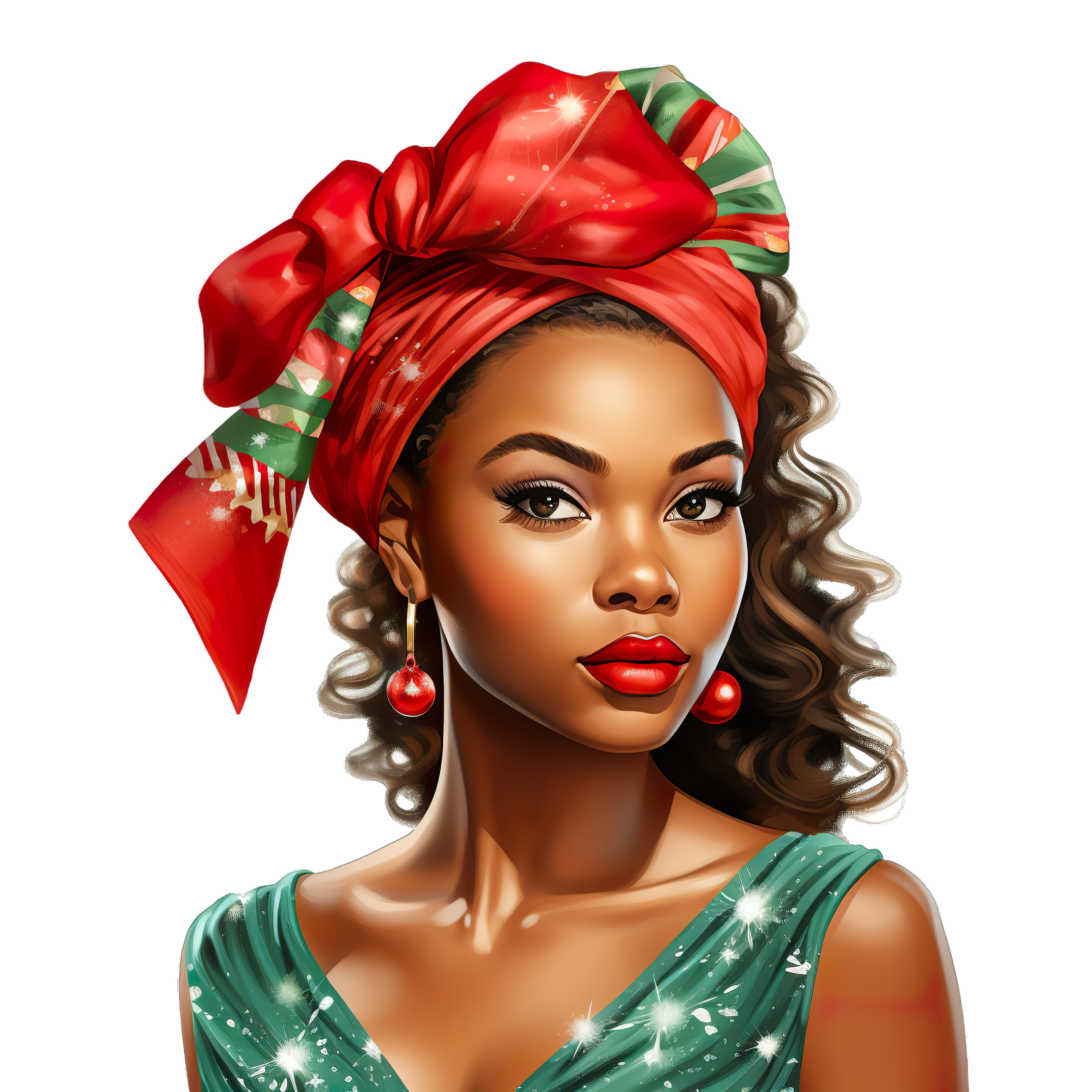 Woman Wearing Festive Red Headscarf and Green Dress with Accessories Woman with red headscarf and green dress, featuring festive holiday colors.Download PNG ▼Download JPG ▼Related posts:Colorful Butterfly With Brightly Patterned Wings In FlightStar-Shaped Gingerbread Cookie with Ornate Icing DesignVibrant Watercolor Sun Clipart with Colorful Zigzag RaysDetailed Butterfly Illustration With Vibrant Yellow And RedCartoon red panda with bushy tail and large eyesHeart-Shaped Arrangement of Green Clover Leaves on BlackSpotted Cow Eating Cereal ClipartYellow snail clipart with spiral shellFestive Red Christmas Cracker with Holly and Ribbon DecorSloth on a Slide ClipartDetailed White Peony Flower with Green Leaves Clipart IllustrationGreen Apple with Leaves in Watercolor Style fruit clipart vector art printable