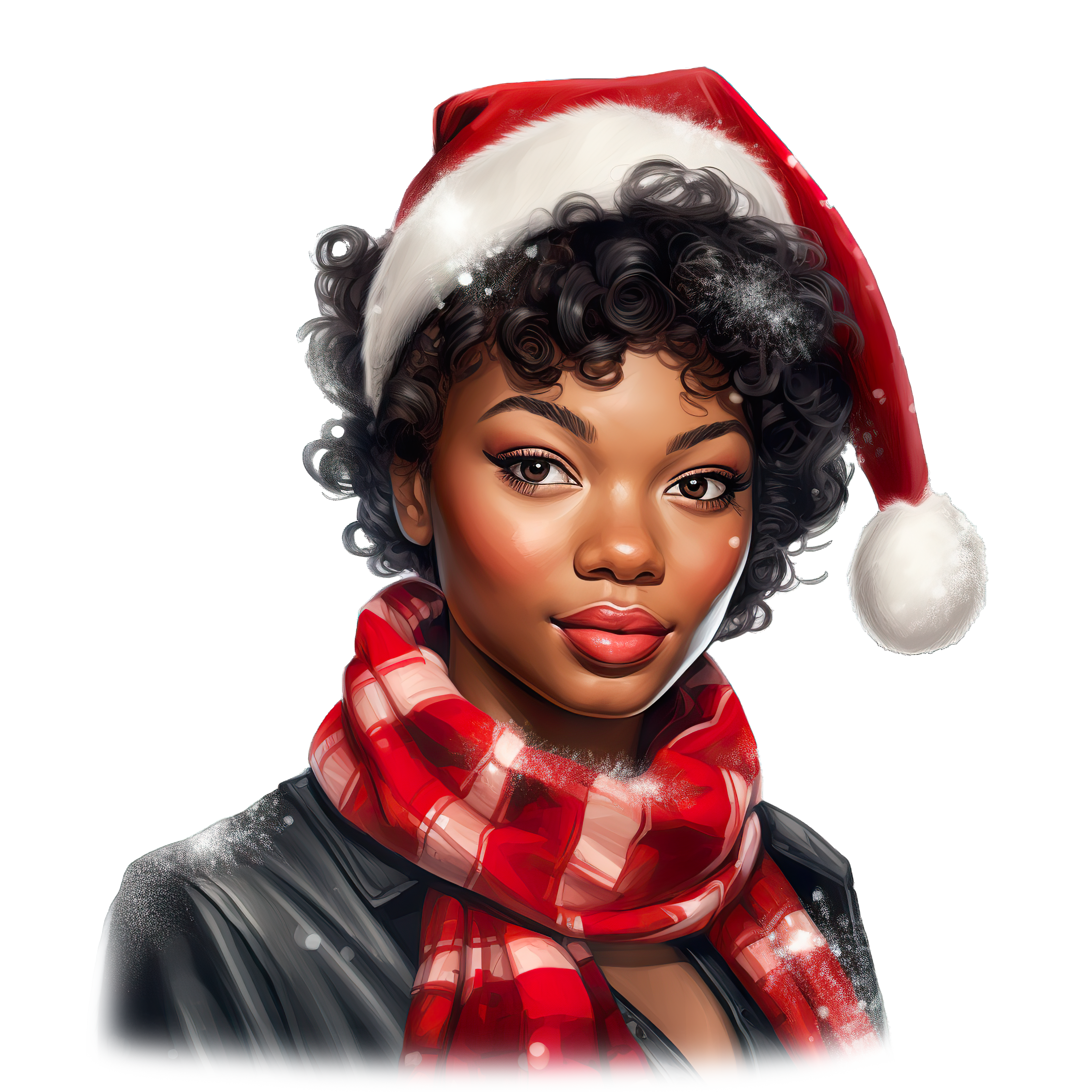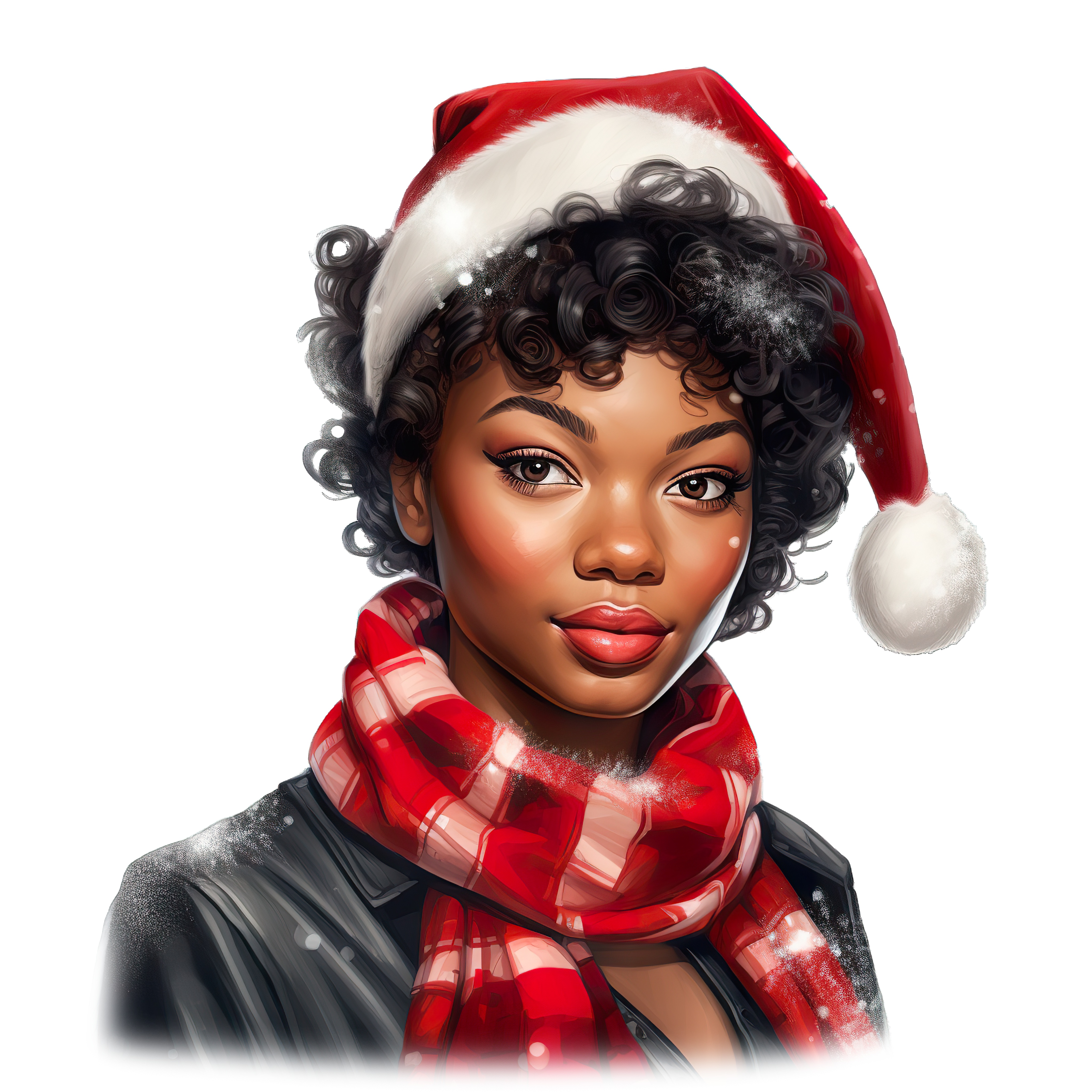 Woman Wearing Santa Hat and Scarf for Christmas Season Woman with Santa hat and red scarf celebrating Christmas in festive attire.Download PNG ▼Download JPG ▼Related posts:Cartoon Leopard Clipart with Spotted Fur and Big EyesWatercolor Orange with Green Leaves on Branch fruit food drink clipart vectorBranch of Blackcurrants with Lush Green LeavesBlackberries with Leaves on a Branch Clipart DesignWhole and Sliced Pears with Seeds in Clipart StyleFresh Fennel Bulb with Vibrant Green StalksChocolate Drizzled Cake Slice with Fresh Berries on TopVibrant Purple And Orange Butterfly IllustrationKoala Wearing a Festive Elf Outfit ClipartOrange Mousse Desserts with Chocolate Drizzle and SlicesRed And Black Butterfly With Detailed X27Cartoon Girl with Big Eyes in Blue Dress