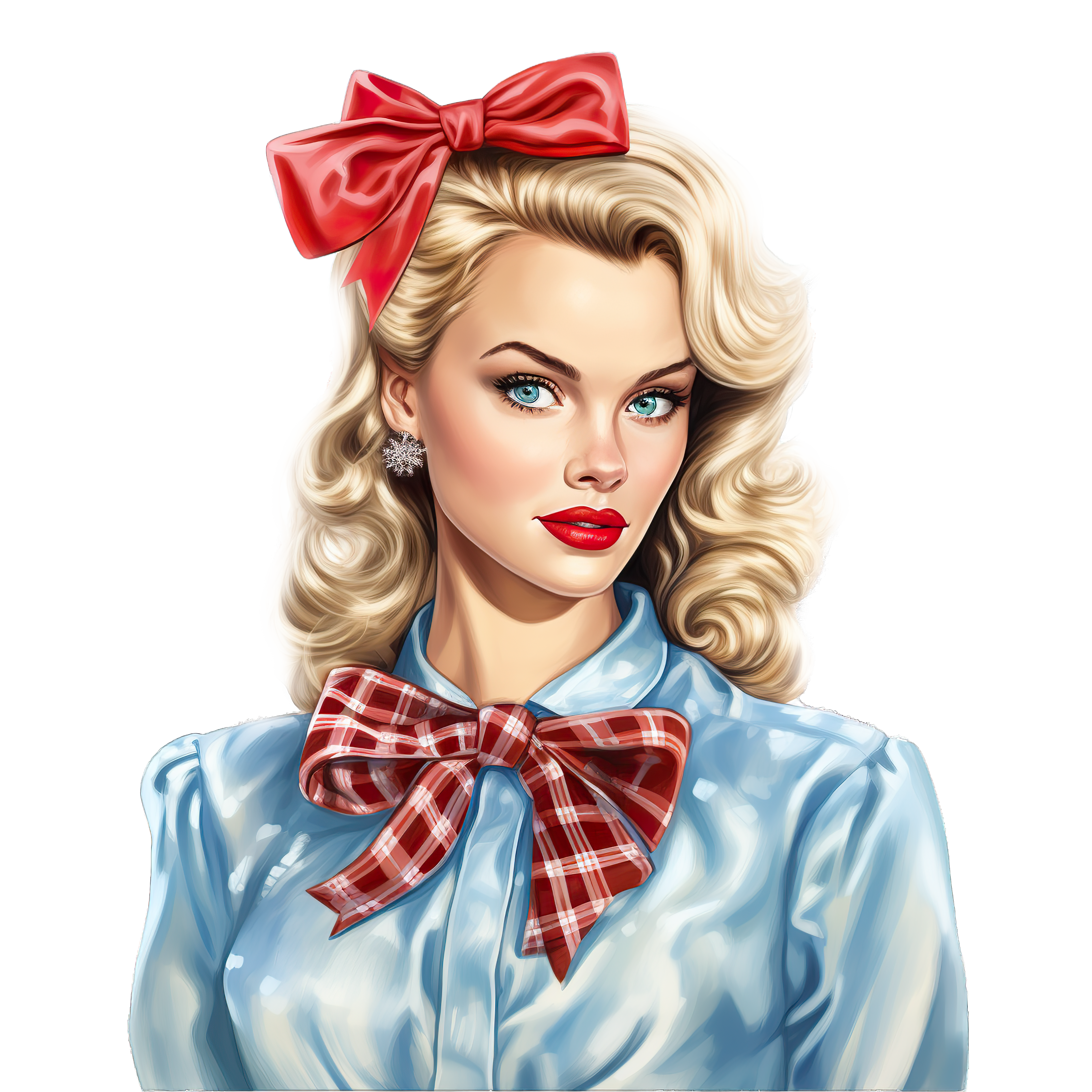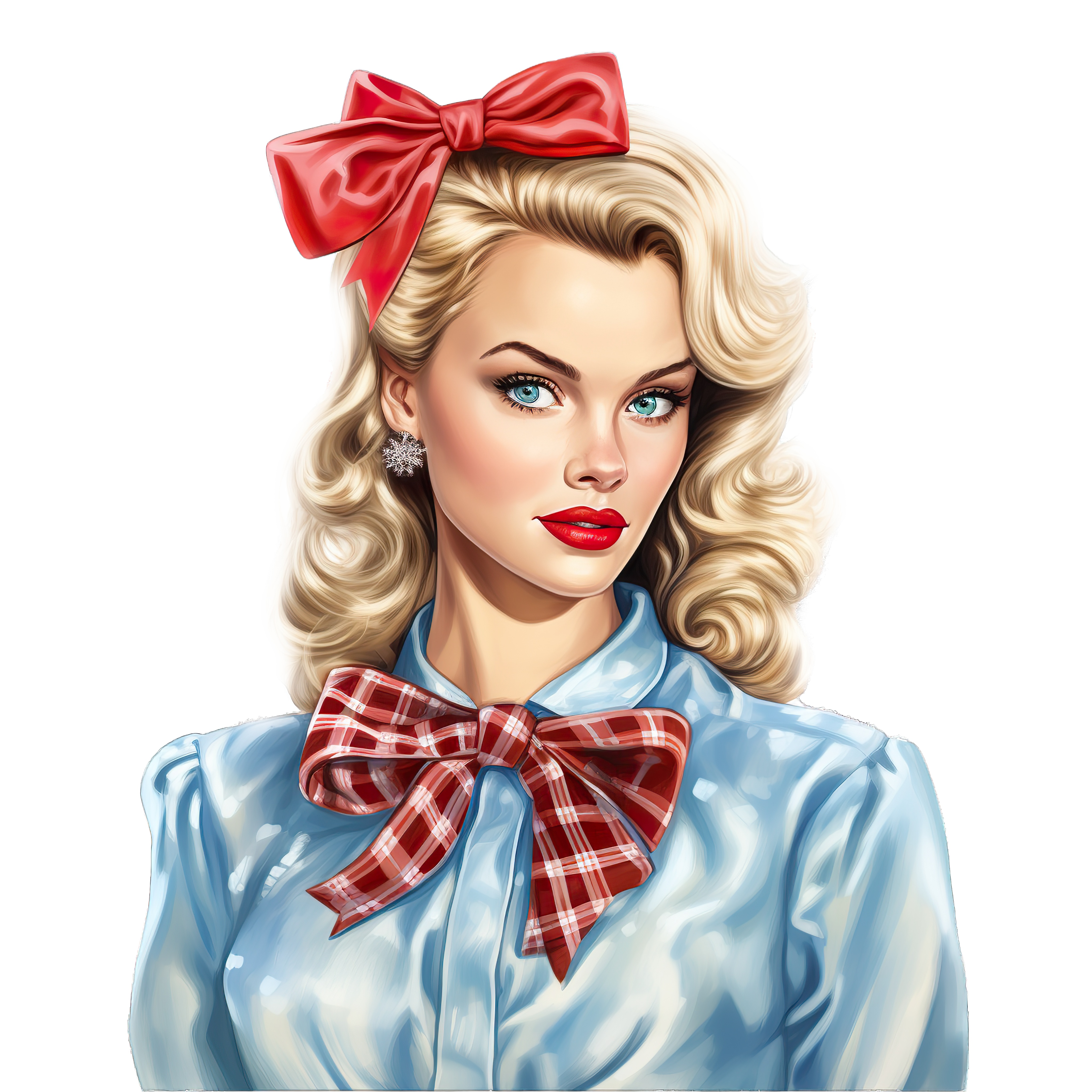 Woman with Blonde Hair Wearing Red Bow and Plaid Shirt Woman with flowing blonde hair, red lipstick, and red plaid bow.Download PNG ▼Download JPG ▼Related posts:Woman with Colorful Headwrap and Festive Design ScarfWatermelon Juice in Glass with Lime Wedge drink beverage red green clipartCamouflage Armored Military Vehicle with Large Wheels and Gun TurretGingerbread House with Candy Decorations and Snowy AccentsFestive Christmas Ornaments with Red Beads and Gold TrimSliced Cantaloupe Melon Vector Art for Printable Food DesignVibrant Floral Arrangement with Pinecones and Red Berries IllustrationWhite Mouse Cheese PngWhite Coffee Cup Filled with Rich Hot ChocolateChocolate Chip Cookie with Crispy Texture and Rich FlavorYoung girl with floral wreath and autumn leaves in hairColorful Corn and Gourd Clipart with Detailed Texture
