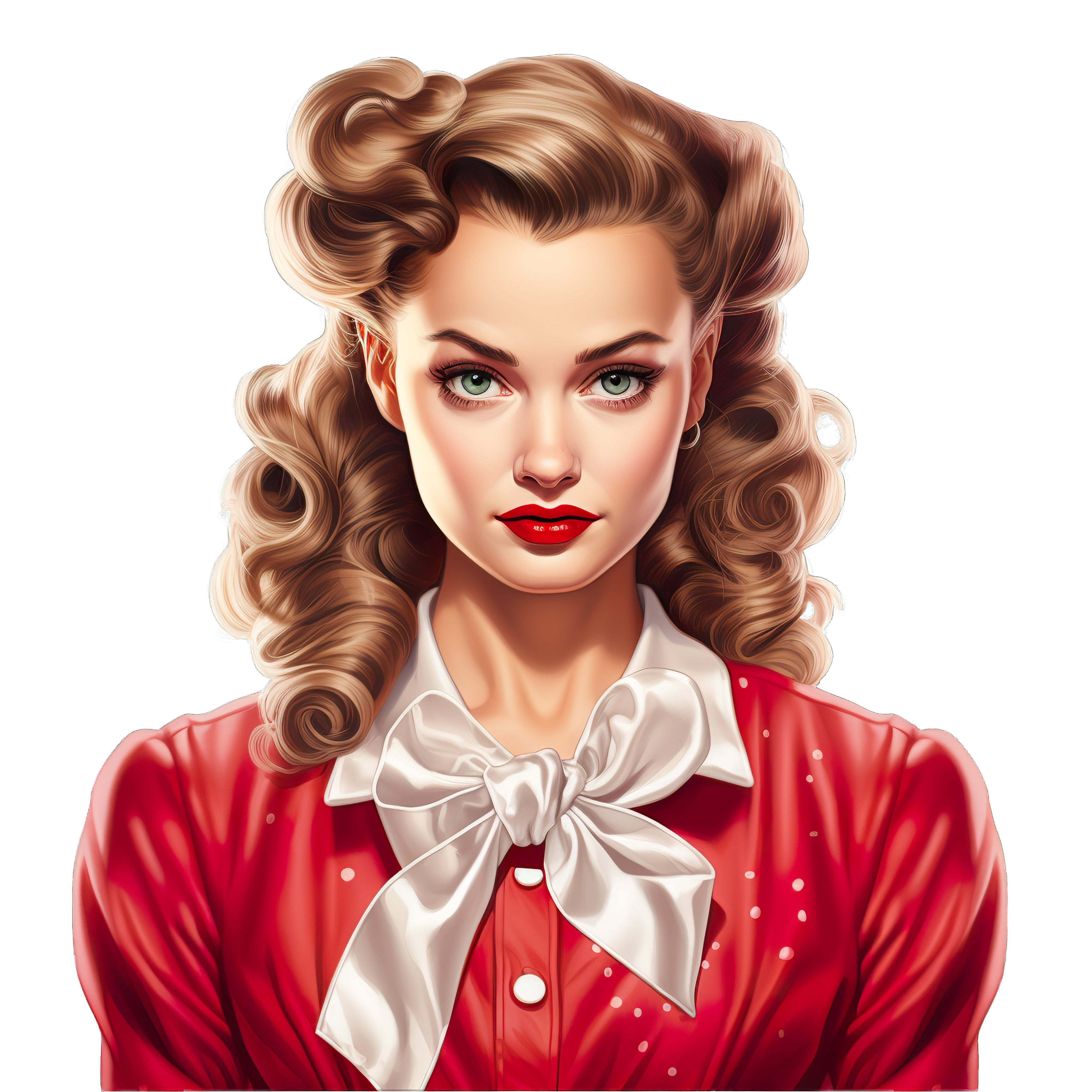 Woman with Retro Hairstyle in Red Outfit and White Bow Woman with retro hairstyle wearing a red outfit and a large white bow.Download PNG ▼Download JPG ▼Related posts:Pink Lily Flower Watercolor Illustration on Black BackgroundGlass of Chocolate Milk with Transparent Background beverage drink watercolor brown clipartIntricate Decorative Floral Mandala in Earthy and Teal TonesWatercolor Cherry Blossom Branch with Pink and White PetalsStrawberry Cocktail with Lime Slice in Glass drink beverage garnish watercolor clipartVibrant Watercolor Red Cherries ArtworkTall Glass of Iced Lemonade with Lime SliceHolly Branch with Glossy Leaves and Red Berries IllustrationJuicy Red Grapefruit Slice in Vibrant Watercolor ClipartVibrant Pink And Yellow Butterfly With Detailed WingsWatercolor Avocado Halves with Seed and Whole FruitYellow Watercolor Daffodil on Black Background for Botanical Designs