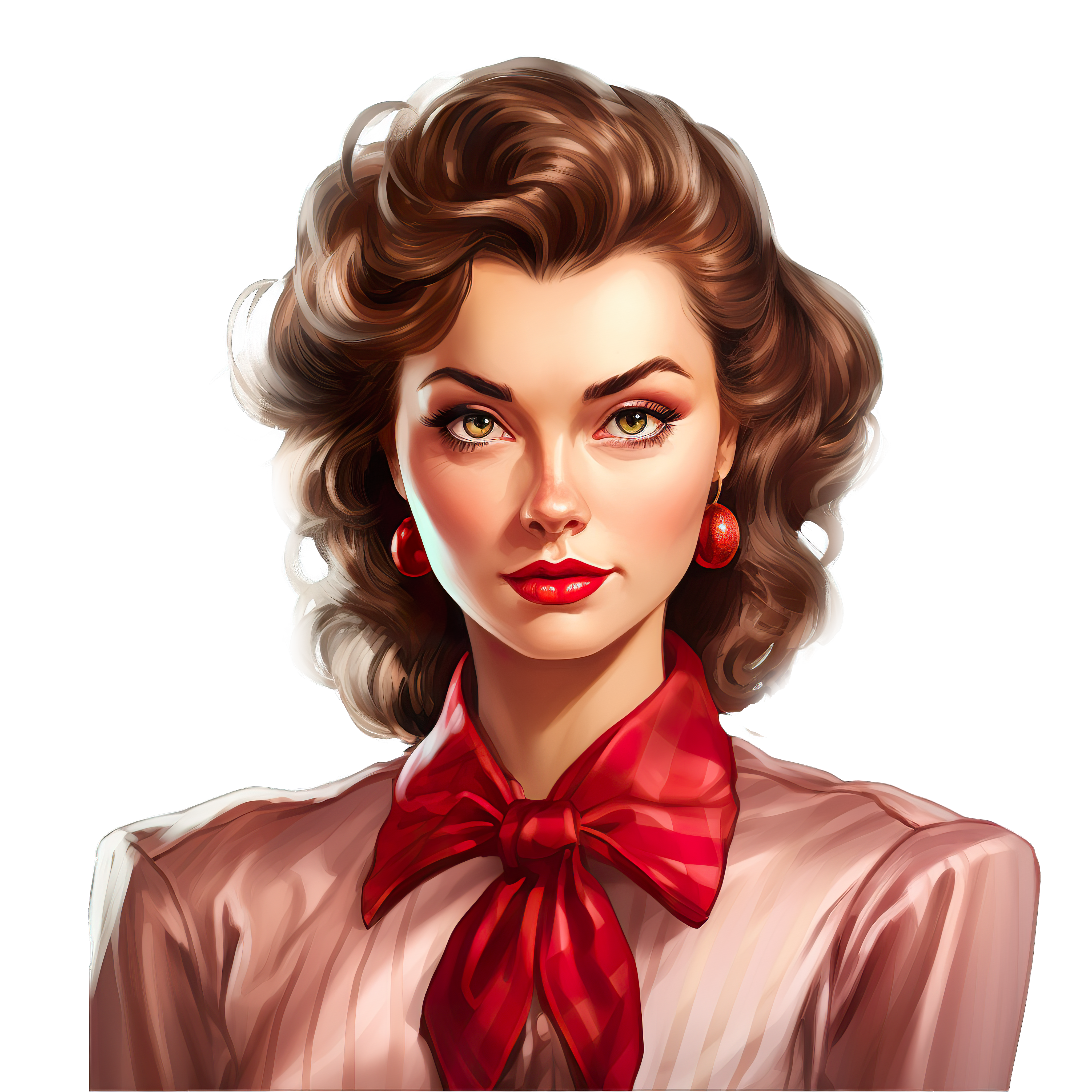 Woman with Vintage Hairstyle and Red Accessories on Plain Background Woman with curly brown hair, red earrings, and red scarf.Download PNG ▼Download JPG ▼Related posts:Red Leaf with Detailed Veins and Natural TextureFresh Parsnip Bunch with Vibrant Green Leaves ClipartWatercolor Owl Clipart Illustration with Large EyesWatercolor Glass of Whiskey with Ice Cubes drink alcohol beverage clipart vectorElephant in Orange Costume Clipart IllustrationHibiscus Flowers with Glass Bottle of Herbal OilGlass of Iced Tea with Lemon Slice and StrawVibrant Blue And Yellow Butterfly With Detailed WingWatercolor Pear with Lush Green LeavesRefreshing Citrus Drink Clipart Featuring Orange Slices and StrawUrban Skyline Silhouette Against a Vibrant Sunset SkyWatercolor Red Leaf Branch Foliage Vector Clipart