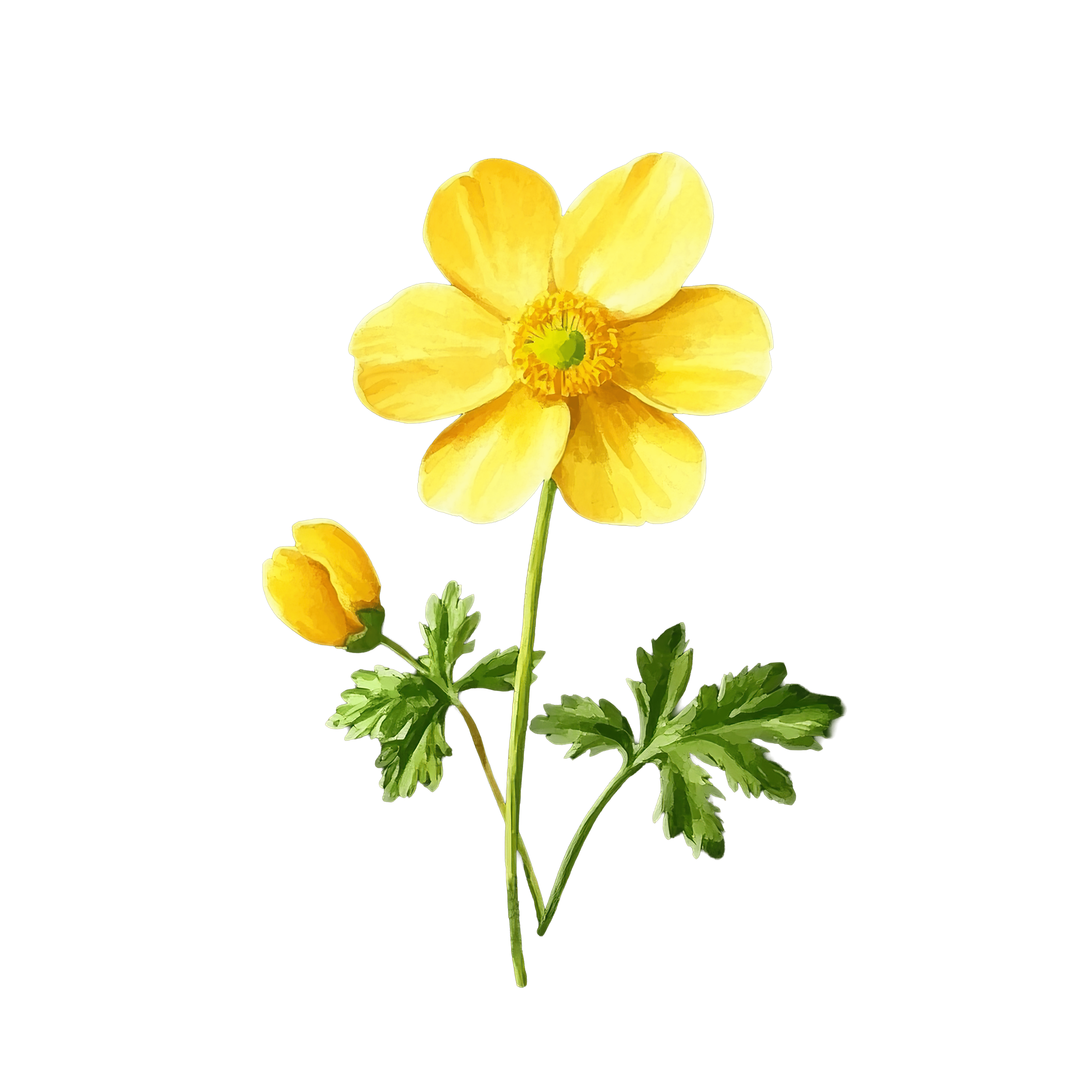 Yellow Buttercup Flower Illustration with Green Leaves on Black Yellow buttercup flower with green leaves and stem on black background.Download PNG ▼Download JPG ▼Related posts:Cartoon mouse driving a yellow toy carBlue Butterfly With Detailed Wing Patterns And OrangeOrnate Lantern with Glowing Candle and Red Flowers DesignArtistic Strawberry with Green Leaves Clipart in Watercolor StyleWatercolor Pear Clipart with Red and Green HuesBlue Broccoli Clipart with Watercolor Style and TextureBlueberry Muffin with Fresh Berries and Leaves on TopChameleon on Branch Wearing a Large HatColorful Butterfly Displaying Intricate Patterned Wings In ArtisticGrey wolf wearing a red scarf clipartSliced Cantaloupe Melon with Juicy Orange Flesh fruit seeds clipart vector artFresh Green Bok Choy Vegetable with Crisp White Stems