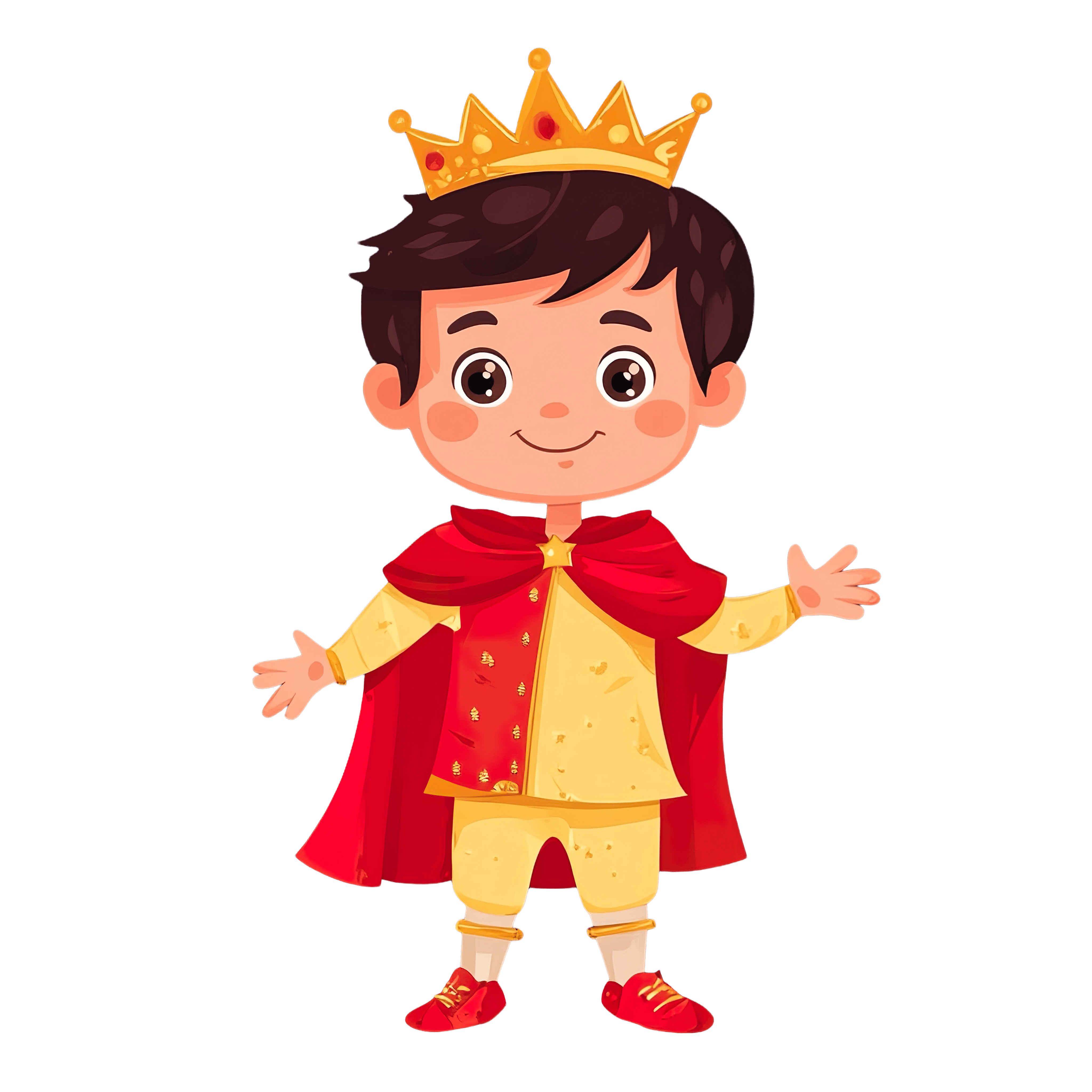 Young Boy Dressed as a Prince with Crown and Cape Young boy wearing a crown and red cape, dressed as a prince.Download PNG ▼Download JPG ▼Related posts:Fluffy white dog with blue butterfliesTrio of Colorful Bell Peppers in Watercolor StyleWhite Turnip with Green Leaves in Watercolor StyleOwl with Hat and Cloak ClipartFestive Rabbit Wearing Santa Hat Surrounded by Christmas FoliageOrange Bird with Wings and Legs ClipartVictorian Woman Wearing Red Holiday Hat with Green DressFresh Blackberries and Green Leaves Fruit Vector ArtClassic White Muscle Car with Blue Racing Stripes ClipartWoman in Vintage Clothing with Green Hat and Red DressWoman in Green Hat and Red Dress with Berry EarringsHedgehog Holding Red Apple Clipart Illustration